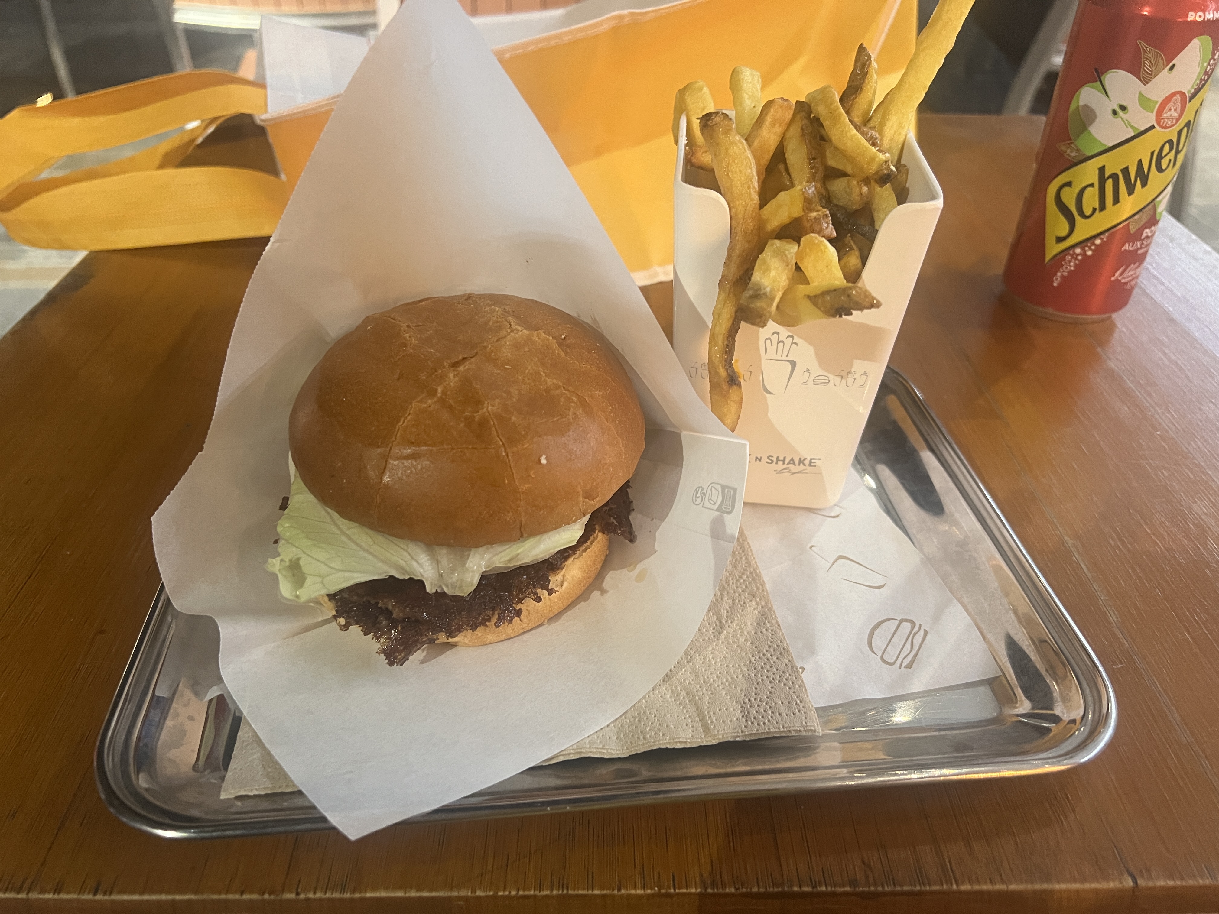 Bon burger mais les frites nécessitent un peu de travail. Beaucoup plus cher que chez nous en Amérique, mais il faut s'y attendre.