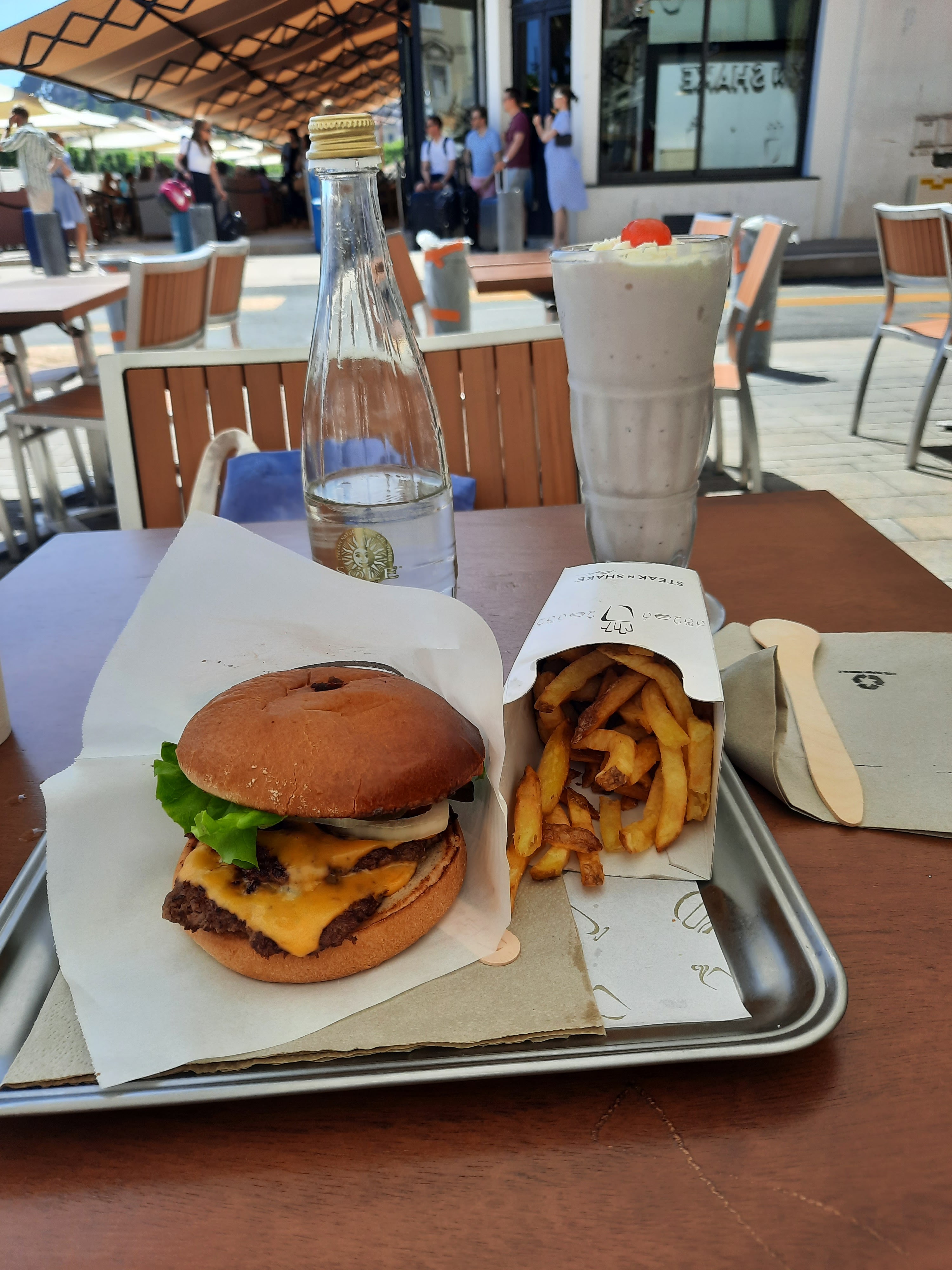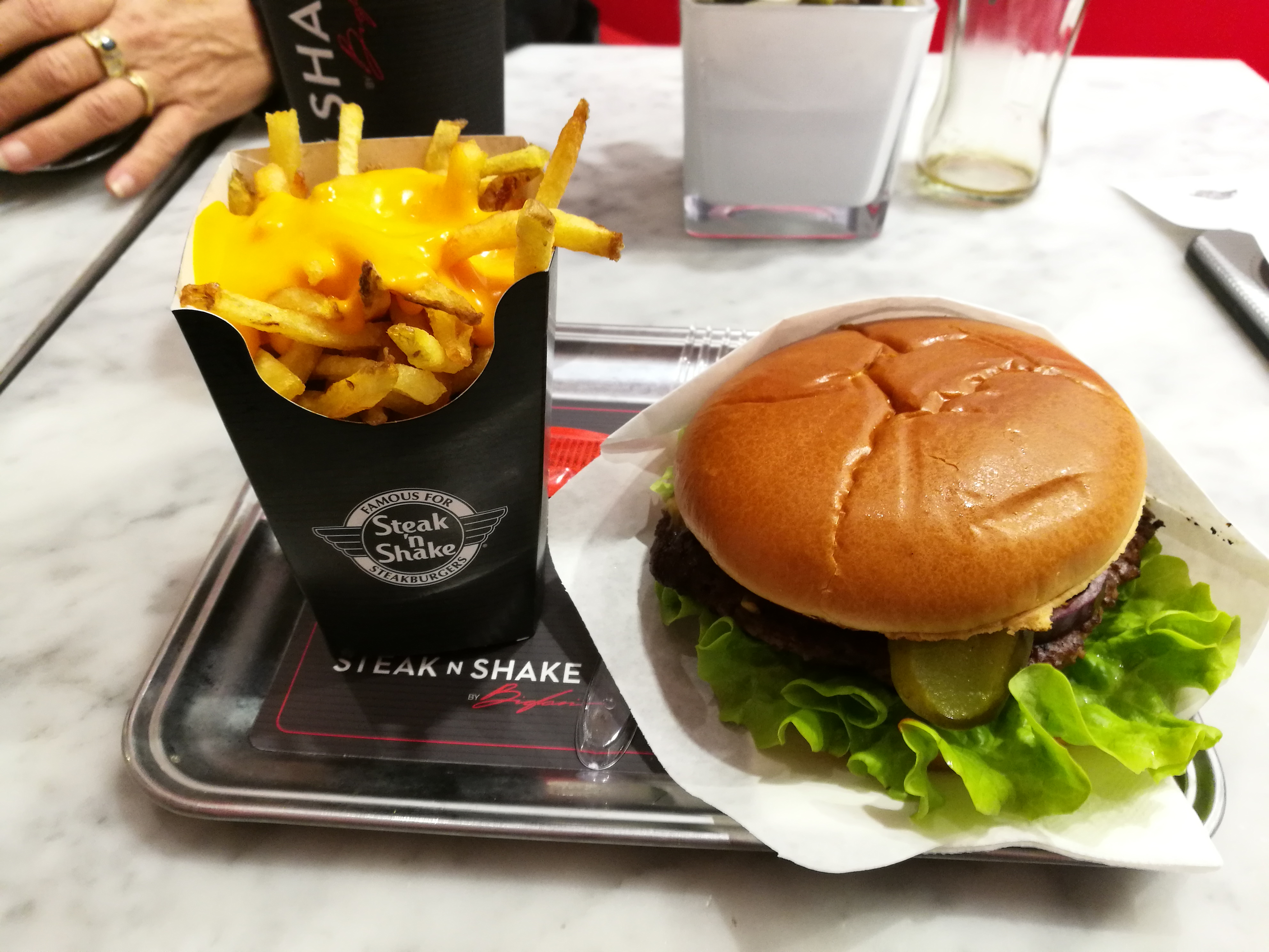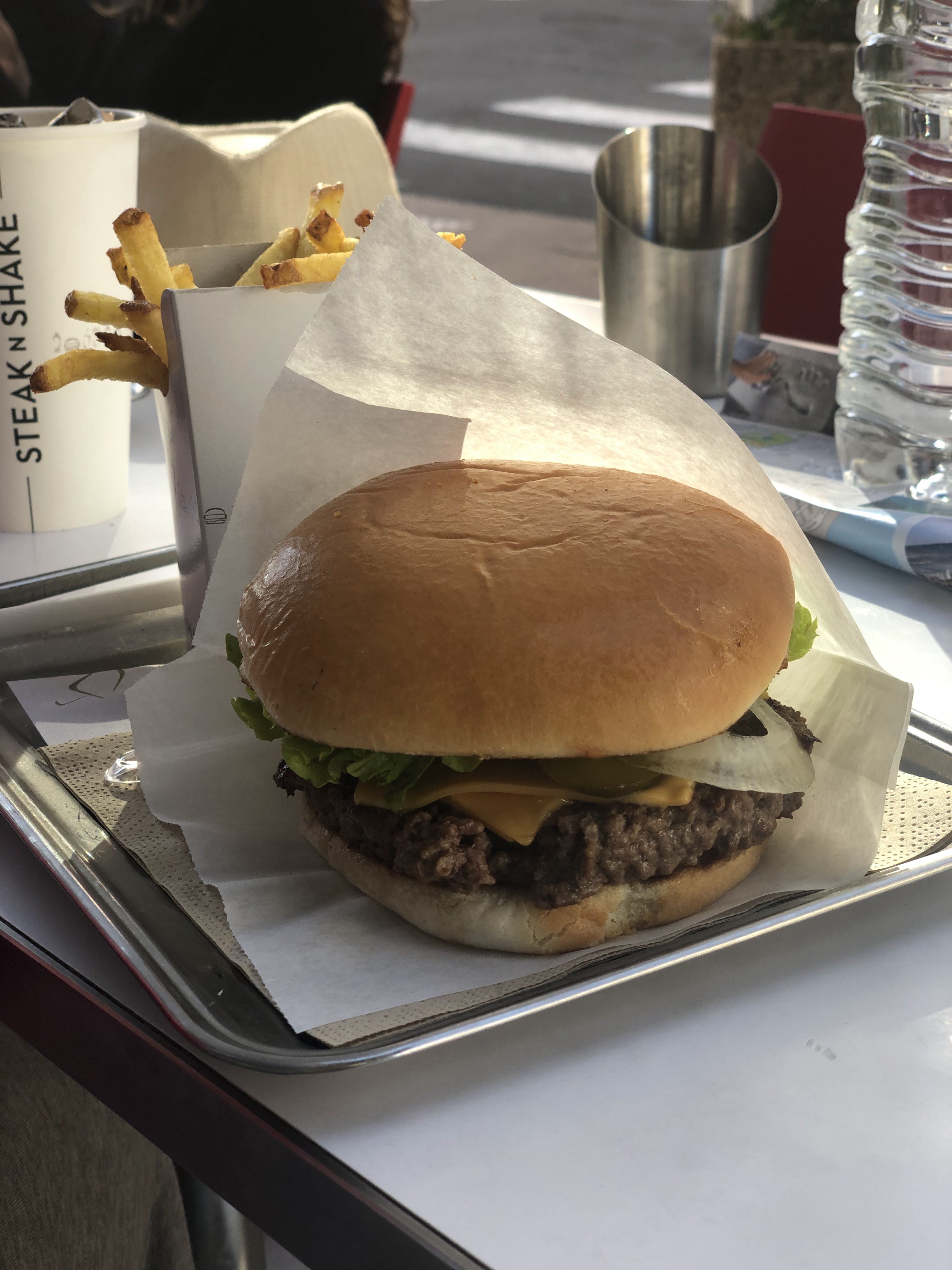Mon premier Steak’n’Shake – assez impressionné. C'est tellement français de prendre un verre de vin rosé sur la terrasse ensoleillée de Cannes ! Fantastique ! J'ai adoré la qualité de la viande. Et le verre était réel, pas en plastique. Très apprécié ! Le service à table est également une belle surprise. Pour un prix très correct 👍