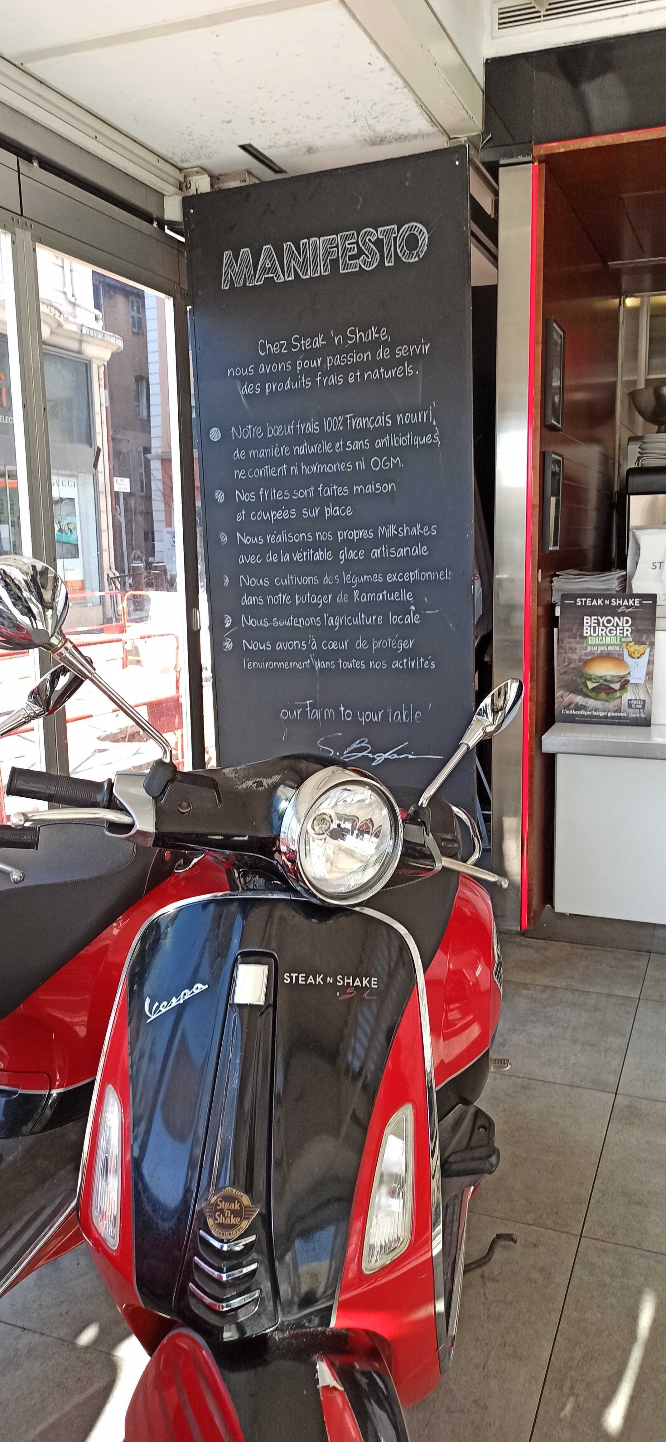ecoeuré par l odeur a l interieur franchement ca sentait tout sauf un endroit ou de la viande est entrain de grillée.... clairement ca m a coupé l appetit !!! manque d hygiene i contestable contrairement a celui de villeuneuve loubet !!!