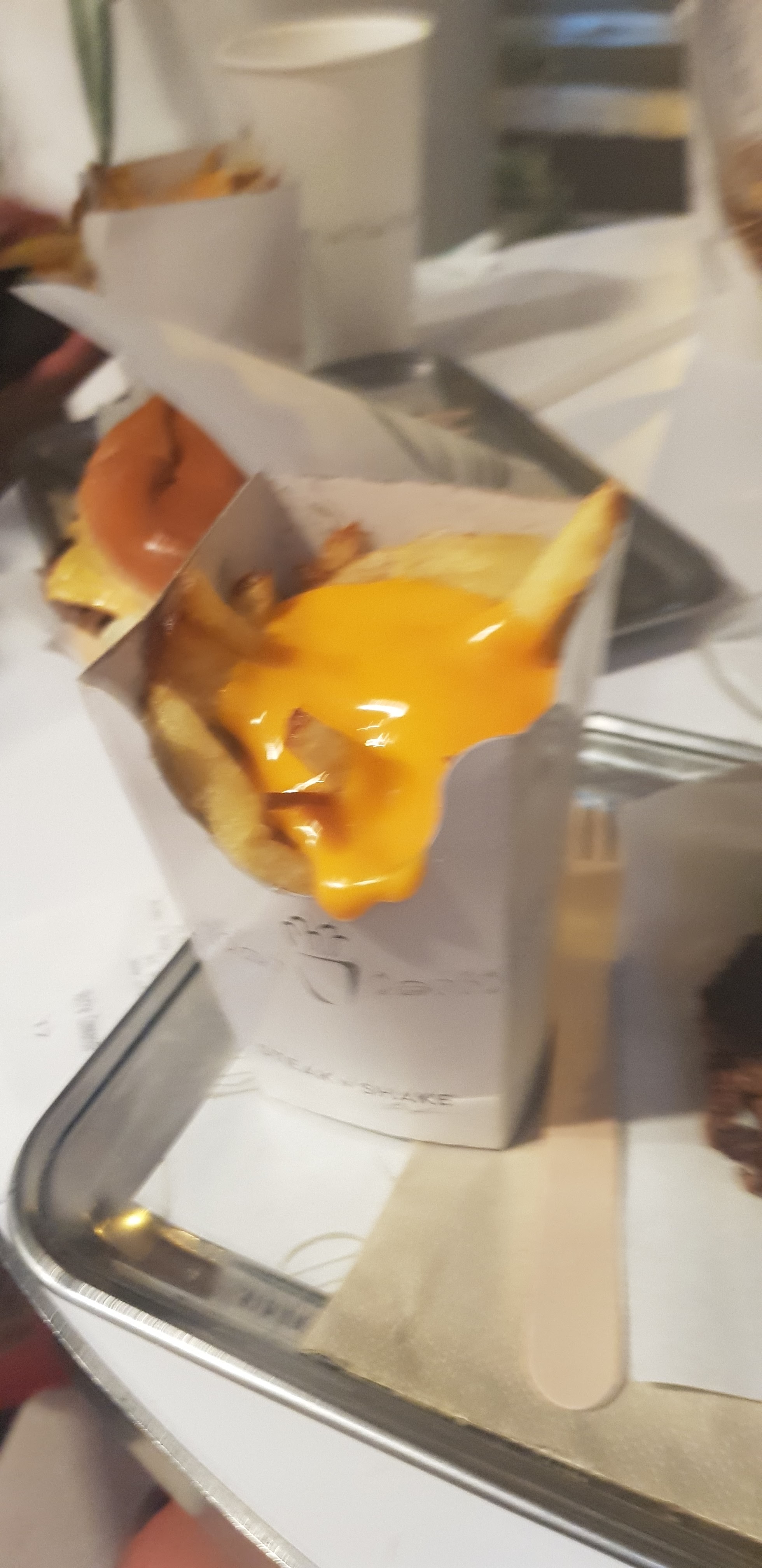 La définition du culot : passer une commande simple chez steak n shake, 2 burgers, 2 frites et 1 milkshake, rien de compliqué. Recevoir 2 burgers froids, sec et quasiment sans sauce, 2 sachets de frites molles et avec ça l'oubli du milkshake... Pour couronner le tout, un petit mot signé d'un Bon appétit et agrafé sur le sac de la commande, je le poste en photo avec le commentaire, c'est drôle ! Edit : Plusieurs jours après, steak n shake est revenu vers moi pour comprendre ce qu'il s'est passé de façon très courtoise et sérieuse ! Il s'avère donc que parfois les livreurs deliveroo ne livrent pas la commande entièrement, en particulier quand les boissons sont mis dans un sac a part... Le livreur ne m'a probablement pas livré le milkshake. Je remonte ma note pour le sérieux de la partie satisfaction client et le droit a une seconde chance.