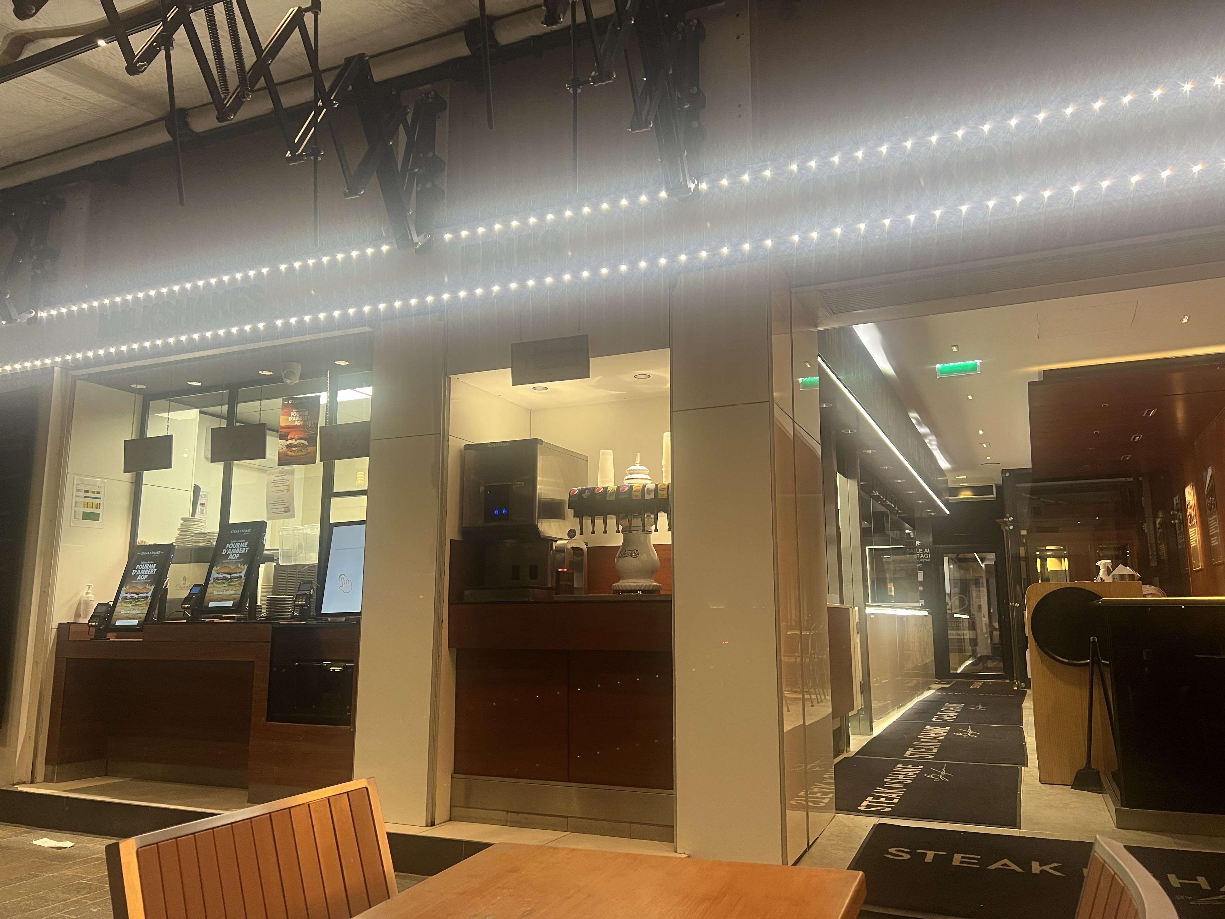 Après un petit tour au marché de Noël, dîner tranquille au steak'n shake ! Pour une fois le restaurant n'était pas bondé, l'hiver est bel et bien arrivé ! Très bel accueil et très agréable ! Nous nous sommes installés à l'étage propre et calme ! Nous avons été servis quelques minutes après ! Toujours aussi bon et service très serviable ! J'adore particulièrement les frites très fines et délicieuse (avec un supplément cheddar) Les milkshakes (très savoureux, copieux et rafraîchissant) demandés après avoir terminé notre hamburger/frites sont également arrivés rapidement ! Le restaurant est situé juste en face du palais des festivals ! Possibilité de se garer dans les alentours ! Le rapport qualité/prix est correct ! À bientôt