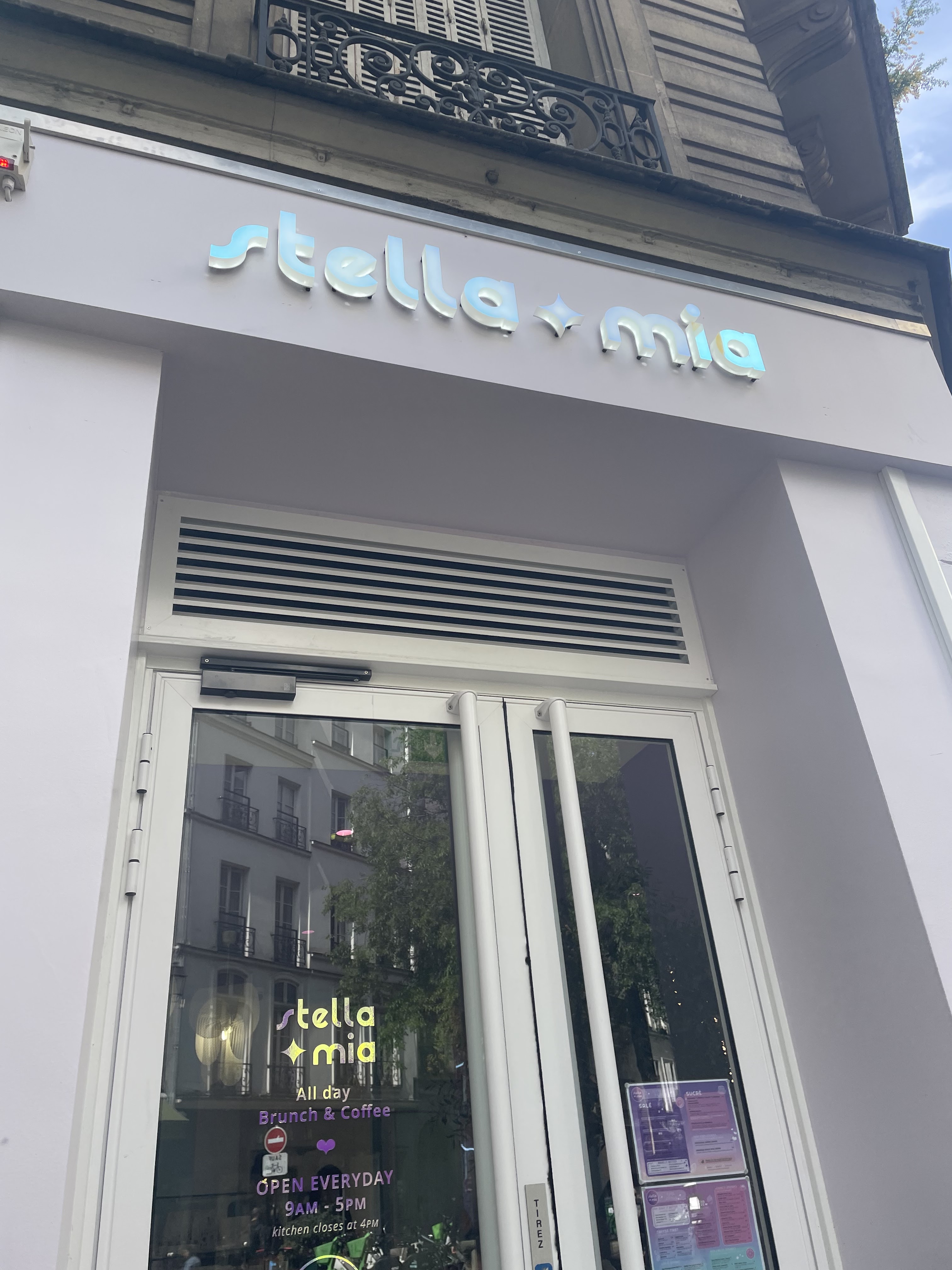 ENFIN un brunch sur réservation ! Habituée des autres enseignes du groupe (Kafkaf, Santalyna...) j'ai voulu tester Stella Mia et je n'ai pas été déçue ! Points positifs : - La possibilité de réserver, une véritable tranquillité d'esprit - La carte très variée, surtout au niveau des boissons, avec de multiples possibilités (lait végétal, ajout de collagène, ajout de sirops...) - Les plats sont servis généreusement, et sont exquis (mention spéciale pour le burger) - Le service est au top - La décoration est très sympa Le prix peut paraître assez élevé si on additionne plat + accompagnement (frites), mais les portions sont si généreuses qu'on peut se permettre de partager à plusieurs. De plus, le brunch est situé en plein Paris, et avec ce niveau de qualité, on ne trouve pas moins cher.