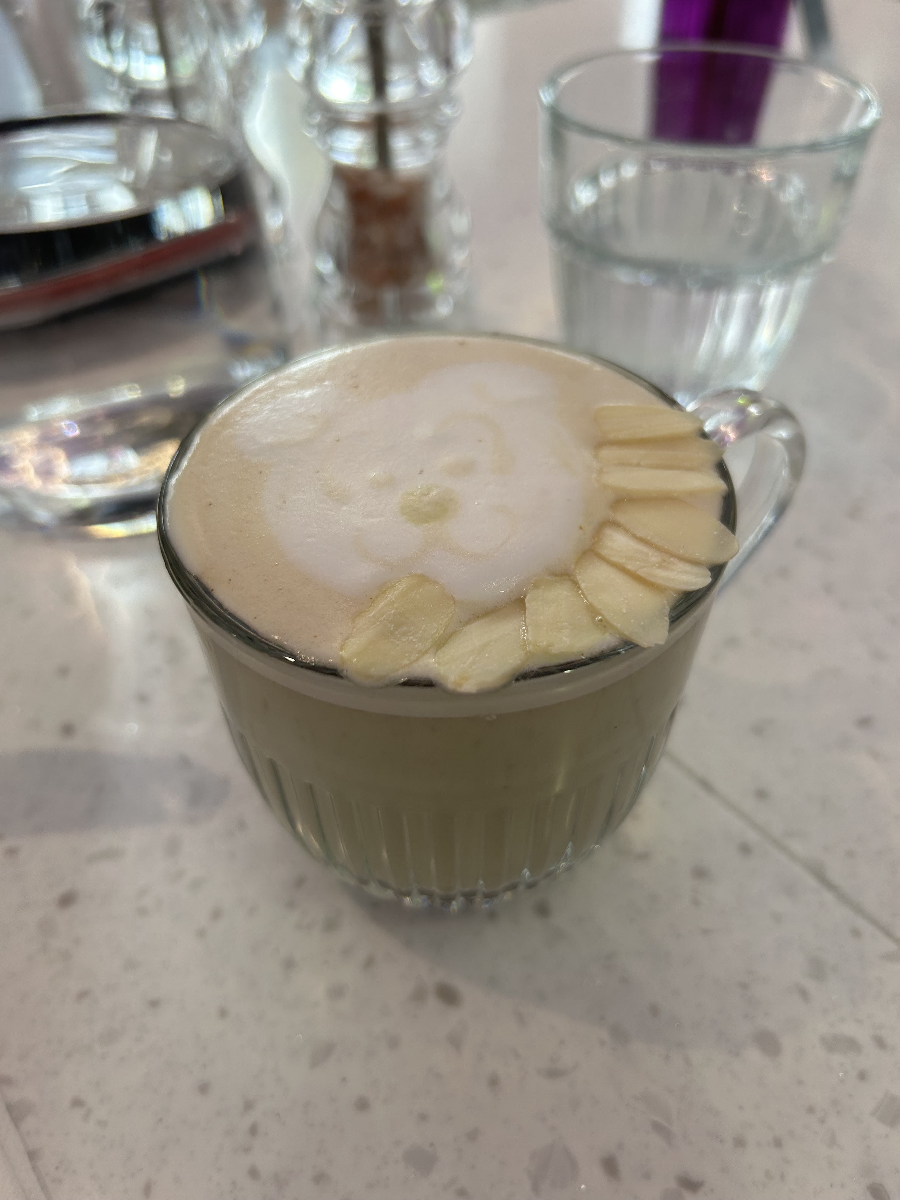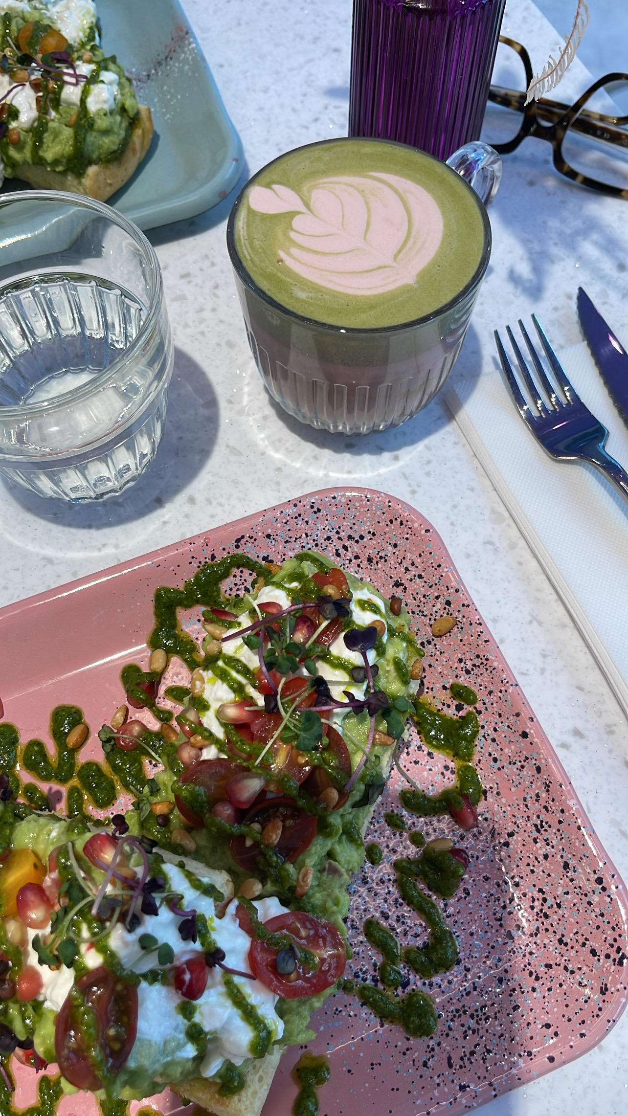 Le iced matcha strawberry était vraiment incroyable de même que pour le grilled cheese. Les serveurs avaient des connaissances sur les laits végétaux à associés et nous ont vraiment recommandés. La décoration était incroyable également ! Je valide cette adresse ✨️