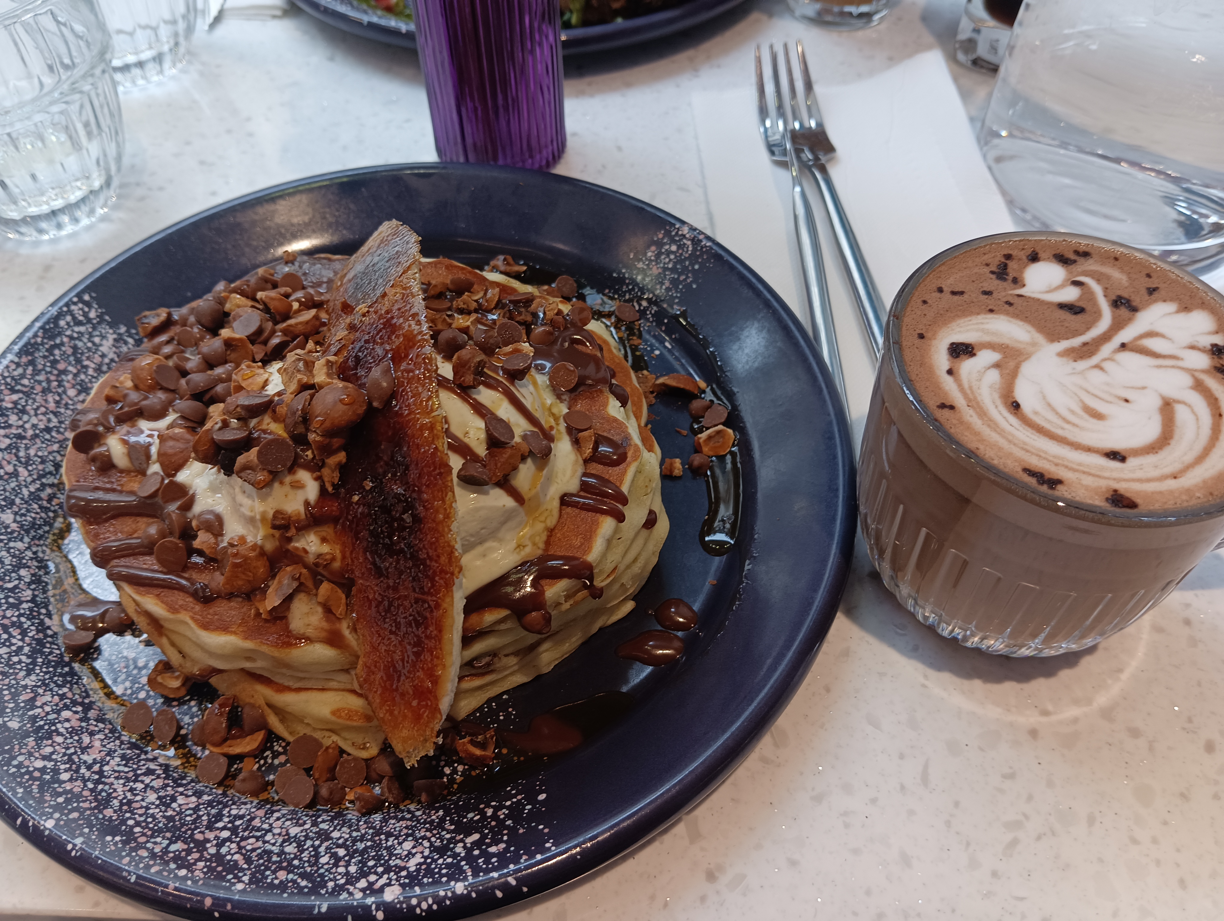 Lieu girly, très instagrammable, assez bruyant. Plusieurs boissons et plats n'étaient pas disponibles. Nous aurions aimé que ce soit annoncé dès le début et non pas au moment de la commande et même du service (!). Pancakes copieux mais un peu écoeurants.