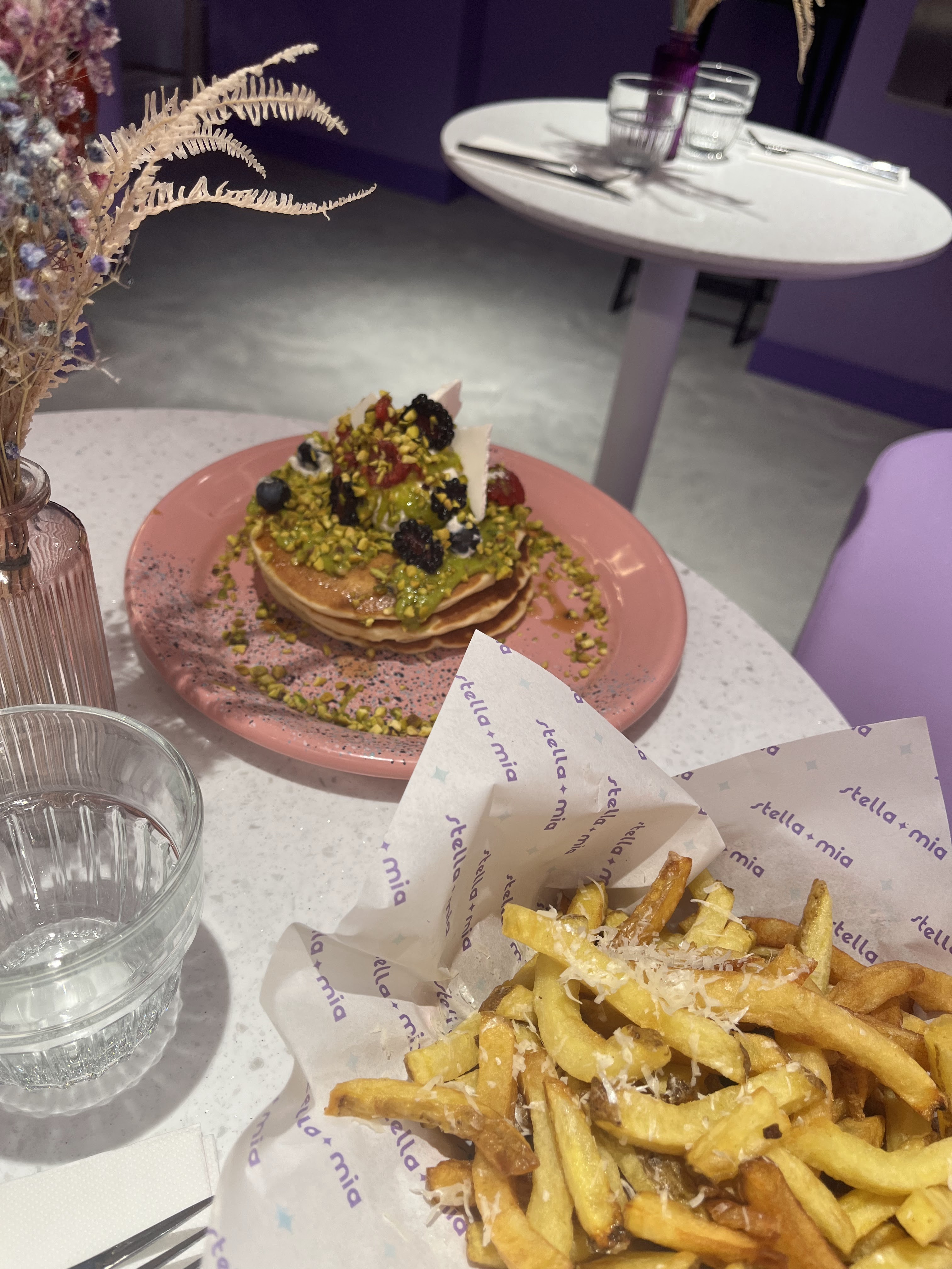 Venues pour un brunch entre copines et connaissant déjà bien les autres adresses de la Hungry Family, nous nous sommes laissées tenter par cette toute dernière adresse « Stella Mia » fraîchement ouverte le mois dernier. Première impression en arrivant dans la salle : waouw la déco est vraiment belle! Ambiance cosmique violet pailleté, on adore. Ensuite un serveur nous accueille avec sourire et amabilité, nous n’étions pas encore au complet donc il nous a proposé d’attendre au bar en nous servant une carafe d’eau (vrai point positif, cela se fait rare!) Une fois au complet nous nous sommes rendues dans la salle au sous sol pour les personnes n’ayant pas réservé (mais il y a la possibilité de le faire et ça c’est vraiment top), la nourriture était très bonne et copieuse, les boissons très bonnes également, et le service impeccable. Un grand bravo pour cette nouvelle ouverture, une belle réussite, nous reviendrons avec plaisir, et mention spéciale au serveur d’origine vénézuélienne qui a été adorable