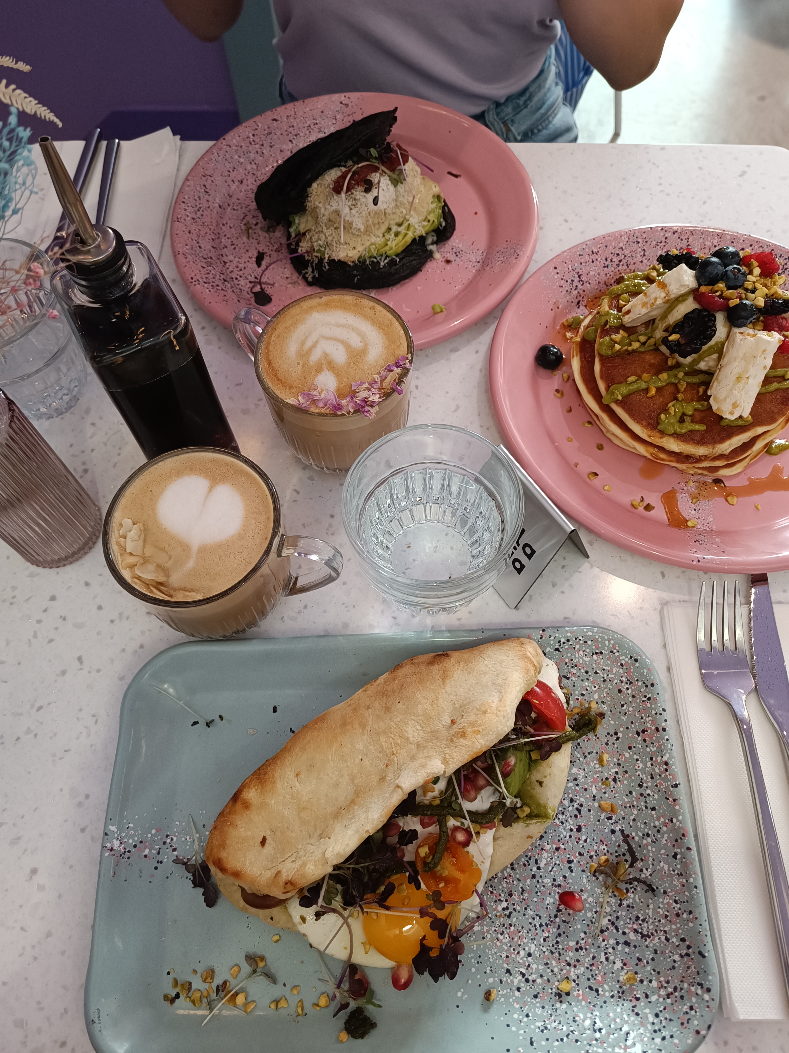 Lieu très agréable et coloré ! Plats aussi beaux que bons sans oublier le très grand choix de boissons chaudes. 💜 Je recommande très vivement pour un brunch en famille, en couple ou entre amis ! 🥞