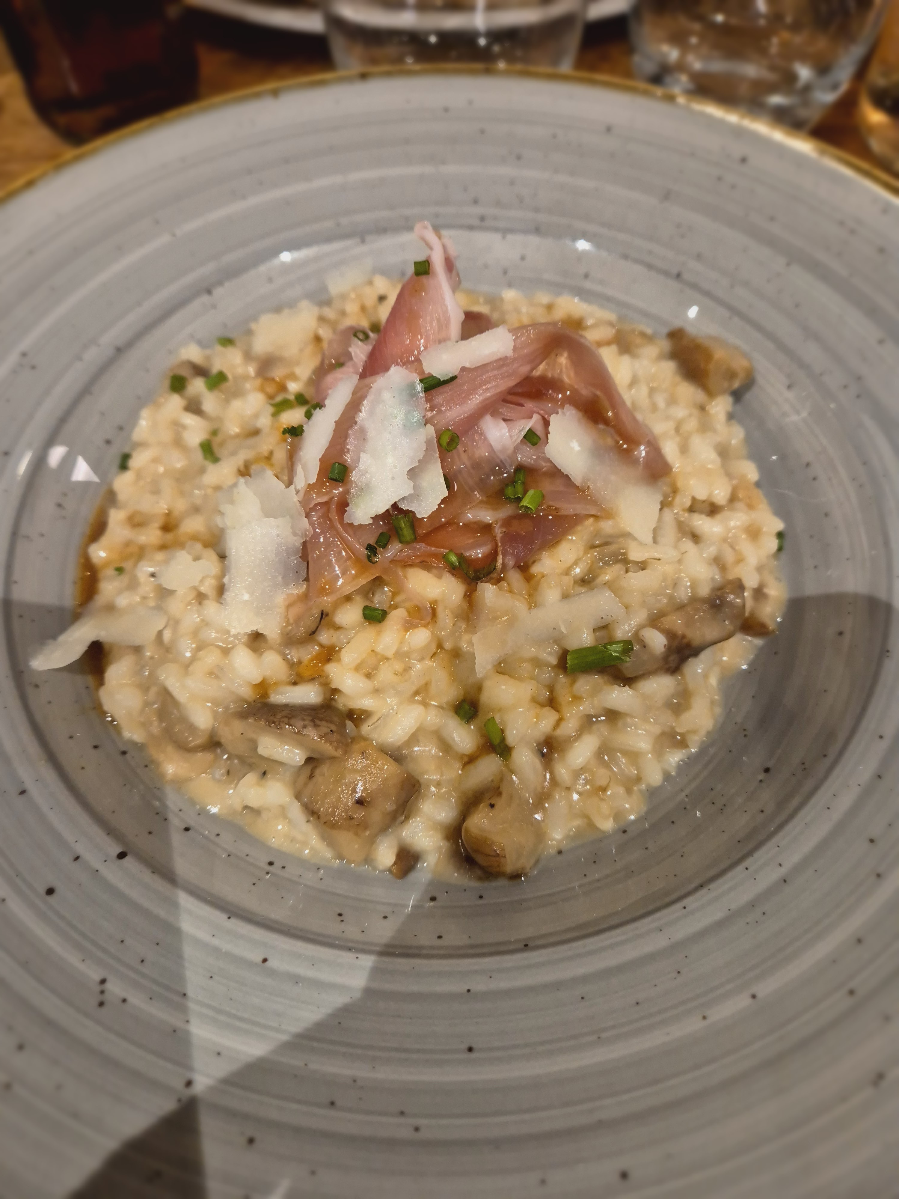 Le risotto aux champignons, la burrata à la mousse de légumes et la bouteille de vin étaient savoureux, bel endroit 😀