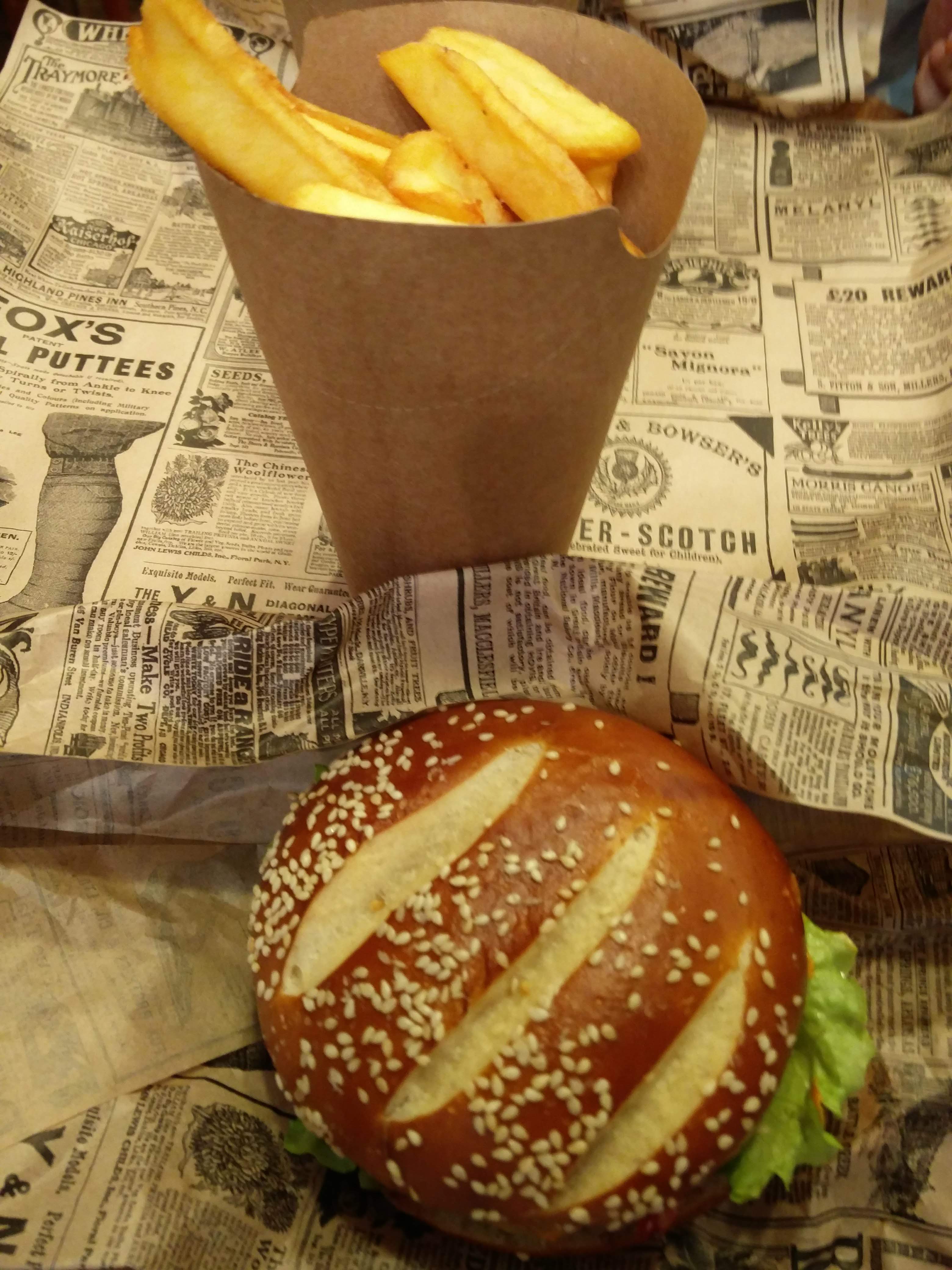 Nous avons commandé le spécial Maison Strassburger et la version Vegan. D’abord la bonne nouvelle. Les frites étaient superbes. Fait maison et super croustillant. Le Strassburger était correct, 3 étoiles sur 5. La galette était trop sèche et manquait d'assaisonnement. L'une des sauces était trop acide et submergeait totalement le burger. Le chignon devait être plus doux. Le burger Vegan 1 étoile. C'était absolument insipide et presque impropre à la consommation. La galette était molle et visqueuse, sans morsure croustillante. En général, c'est un endroit pour se remplir l'estomac ou marcher un peu plus loin et trouver autre chose.