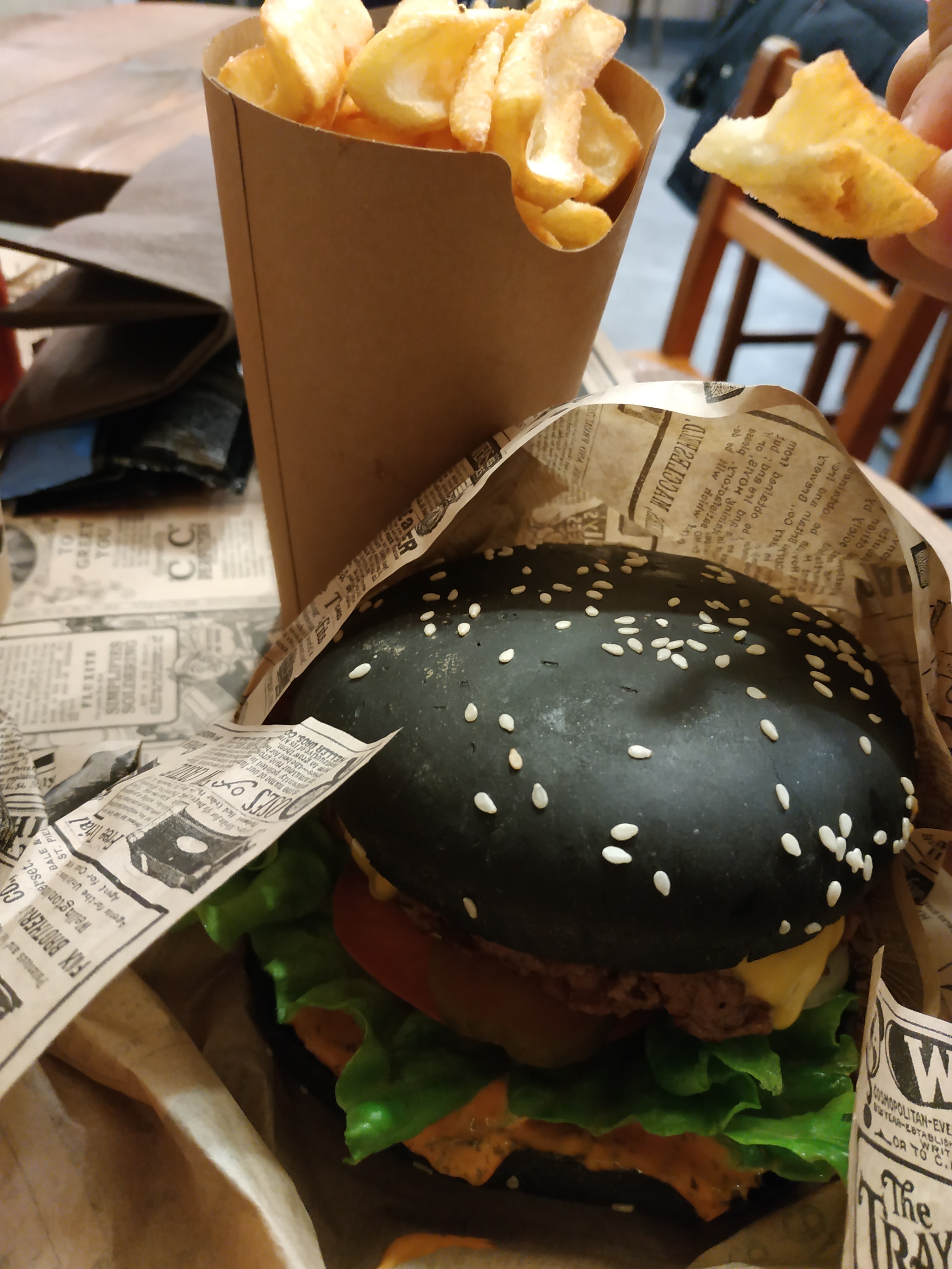 Pas de pain noir pour le diamond burger. Attente interminable au beau milieu de l'après midi. Table si petite que l'on ne peut pas passer ses jambes. Après 20-25 min d'attente le burger arrive : goût n'allant pas ensemble, des abats font offices de foie gras : ce n'est pas bon