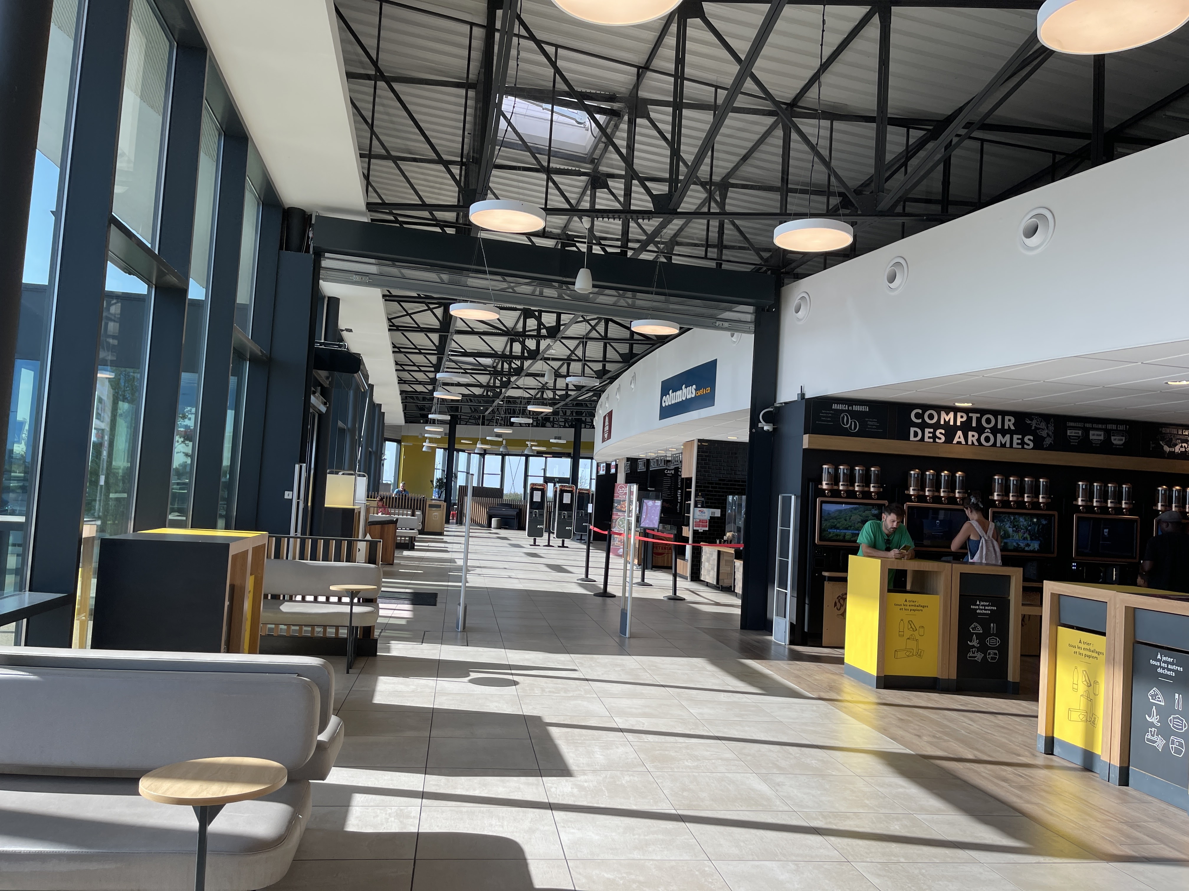 Acceuil du personnel très agréable. En famille , chacun à pu choisir son repas entre les 4 points de vente boutique, Columbus, cafétéria Stratto et kfc très grande salle de restauration .nous nous sommes régalé. Toilettes impeccables. Petite Aire de jeux pour les enfants très appréciée Nous recommandons à 100%