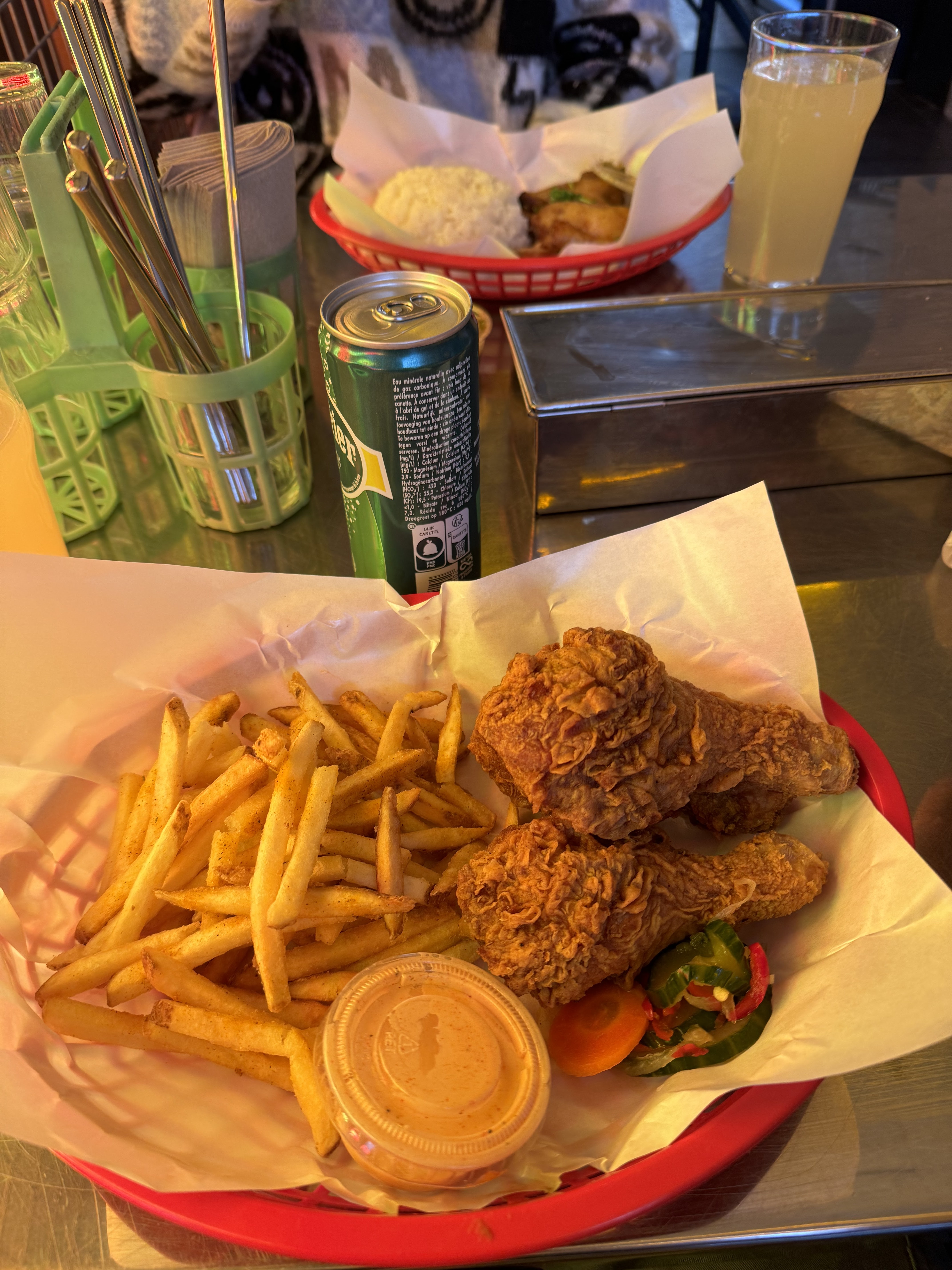 13e pour 4 pauvre morceaux de fried chicken, le tout servi sans sauce pour un goût plus que banal et sec. Vous sentirez davantage le goût de la chapelure que celui de la viande. Goût similaire au chicken du kfc.