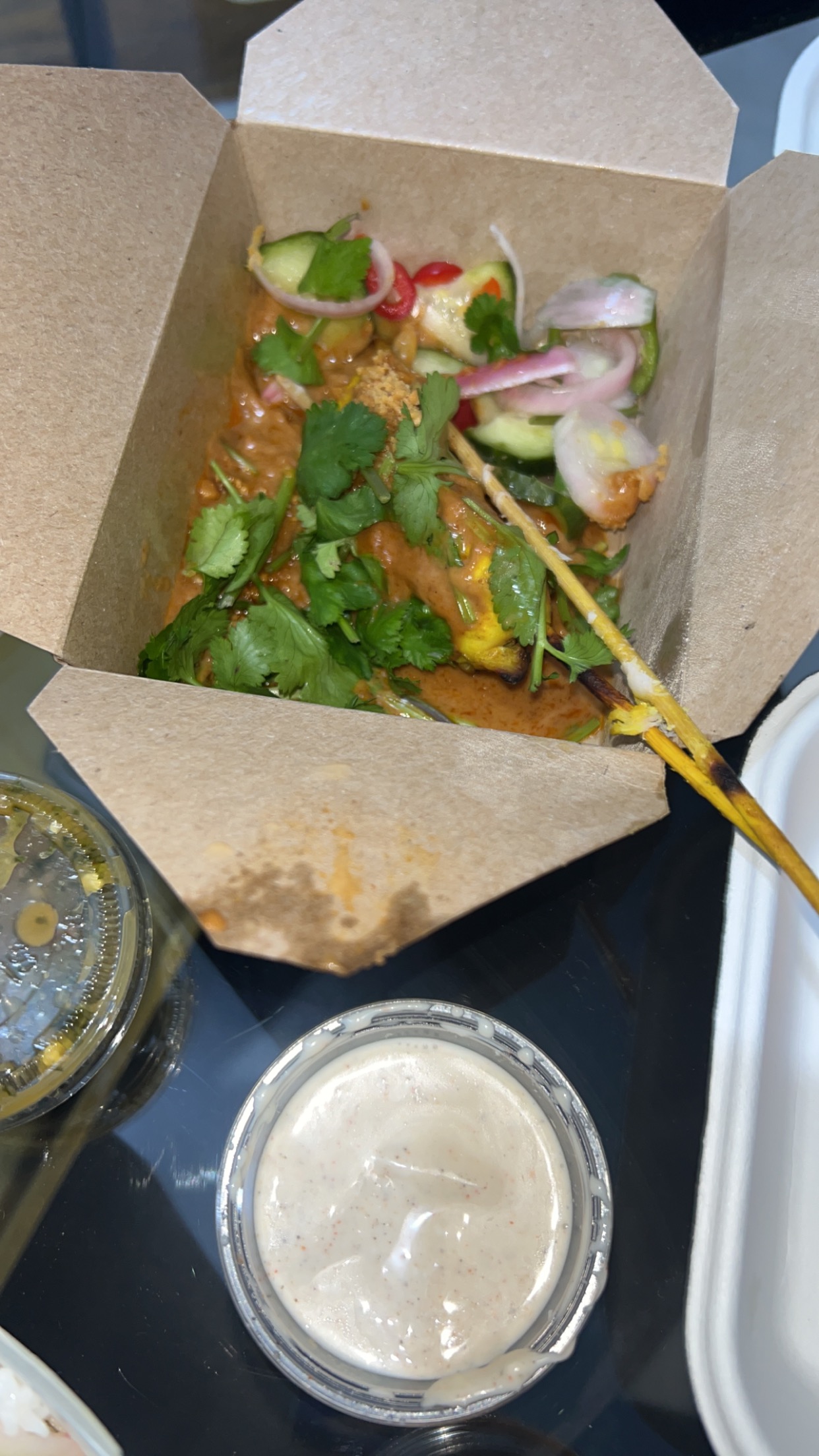 Plat bien consistant, sauce satay (cacahuètes) délicieuse. Je repars le ventre vraiment bien rempli, c'était bon ✨