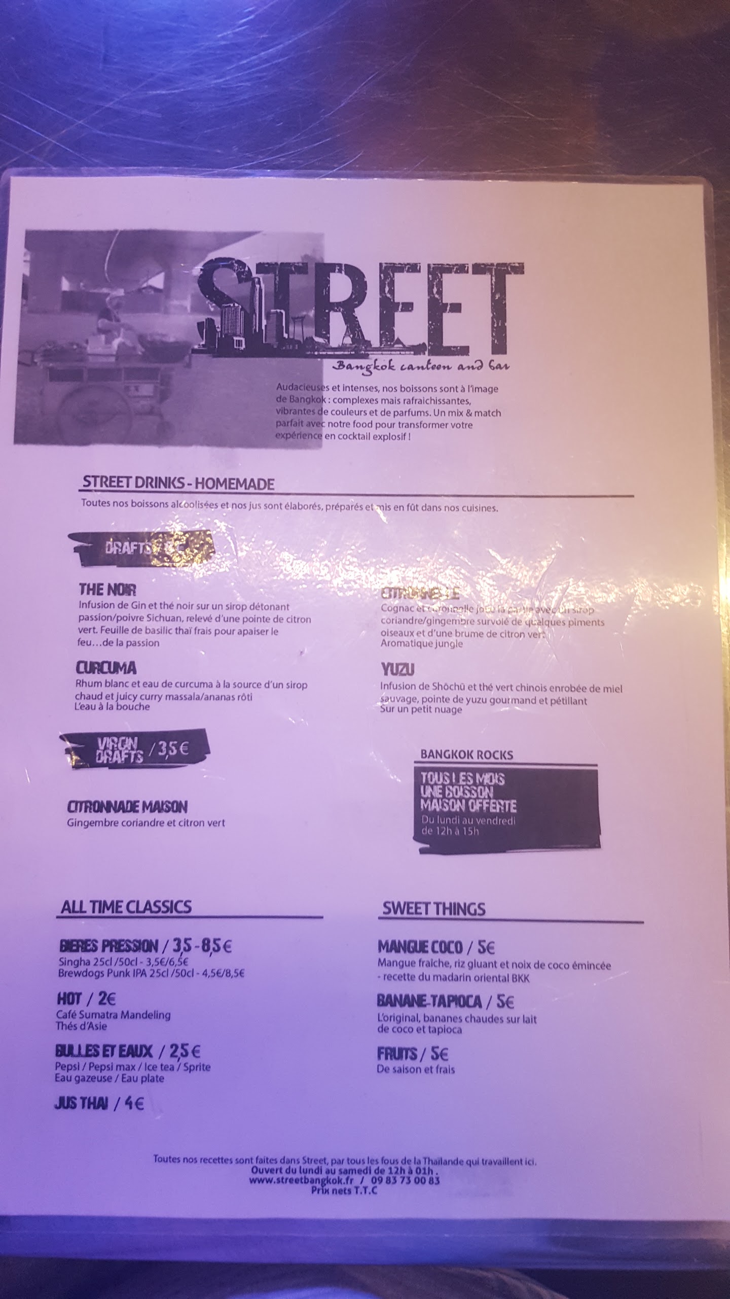 Superbe découverte pour le dej. J’étais dans le quartier, j’ai poussé la porte (bon qui était ouverte 😋) et là une déco super décalée et une équipe au top. J’ai fait confiance à la serveuse sur le plat: un porc en sauce avec de l’anis, de la cannelle et du riz gluant…délicieux, j’ai cru voyagé direct! quand on dit que l’expérience client est importante aujourd’hui c’est pas pour embêter…On veut du lien, des sourires et de la bonne bouffe, et bien bravo Street Bangkok, moi j’ai trouvé tout ça chez vous!