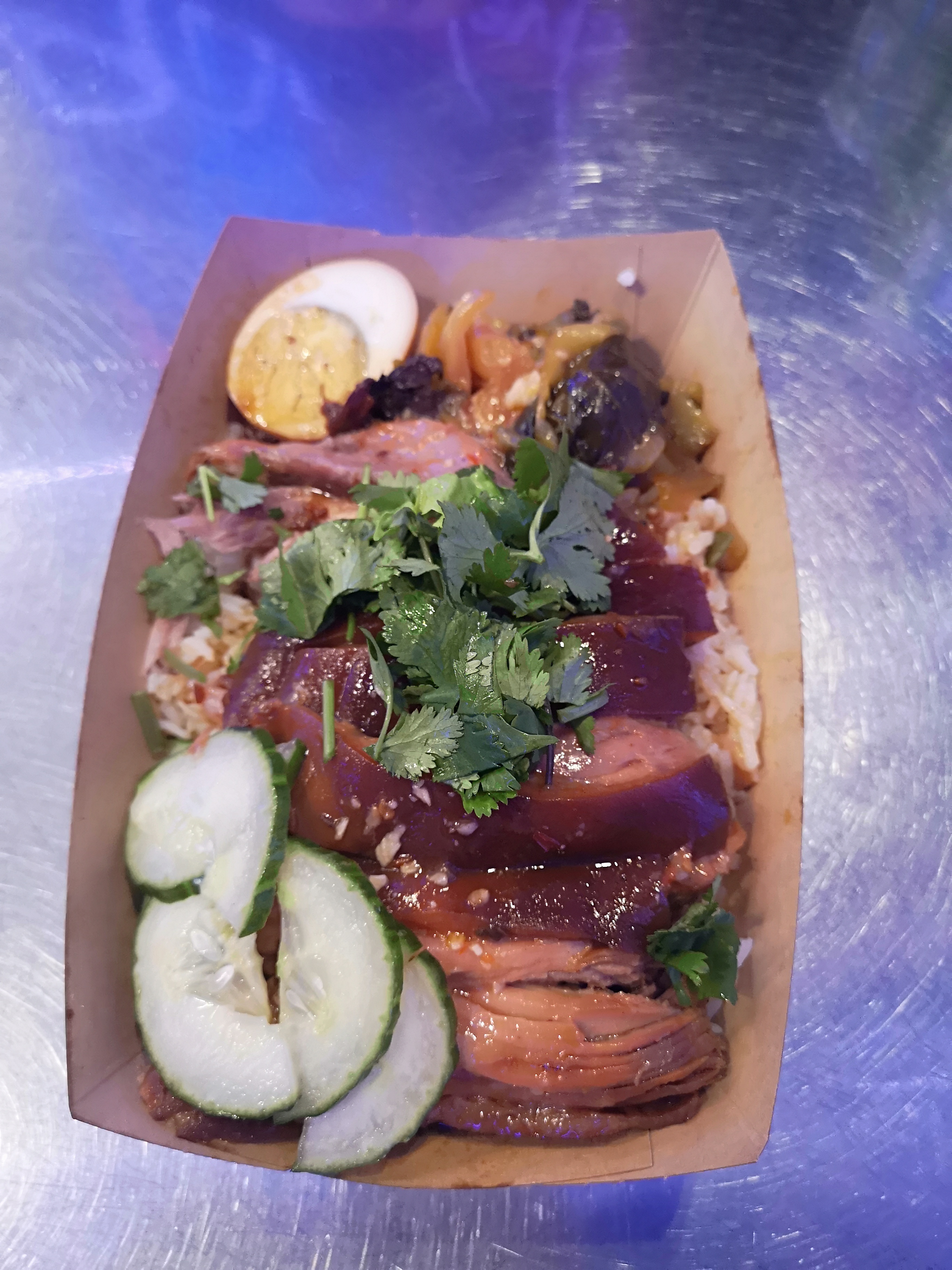 J'adore le concept street food. Cela me rappelle beaucoup les petits stands en Asie. Le décor est très sympa. J'y suis allée en plein après-midi et un jour de pluie donc c'était très calme et peu de personnel. Une petite attente mais rien de méchant. Mon porc mijoté était très bon, et c'est fait façon très asiatique !