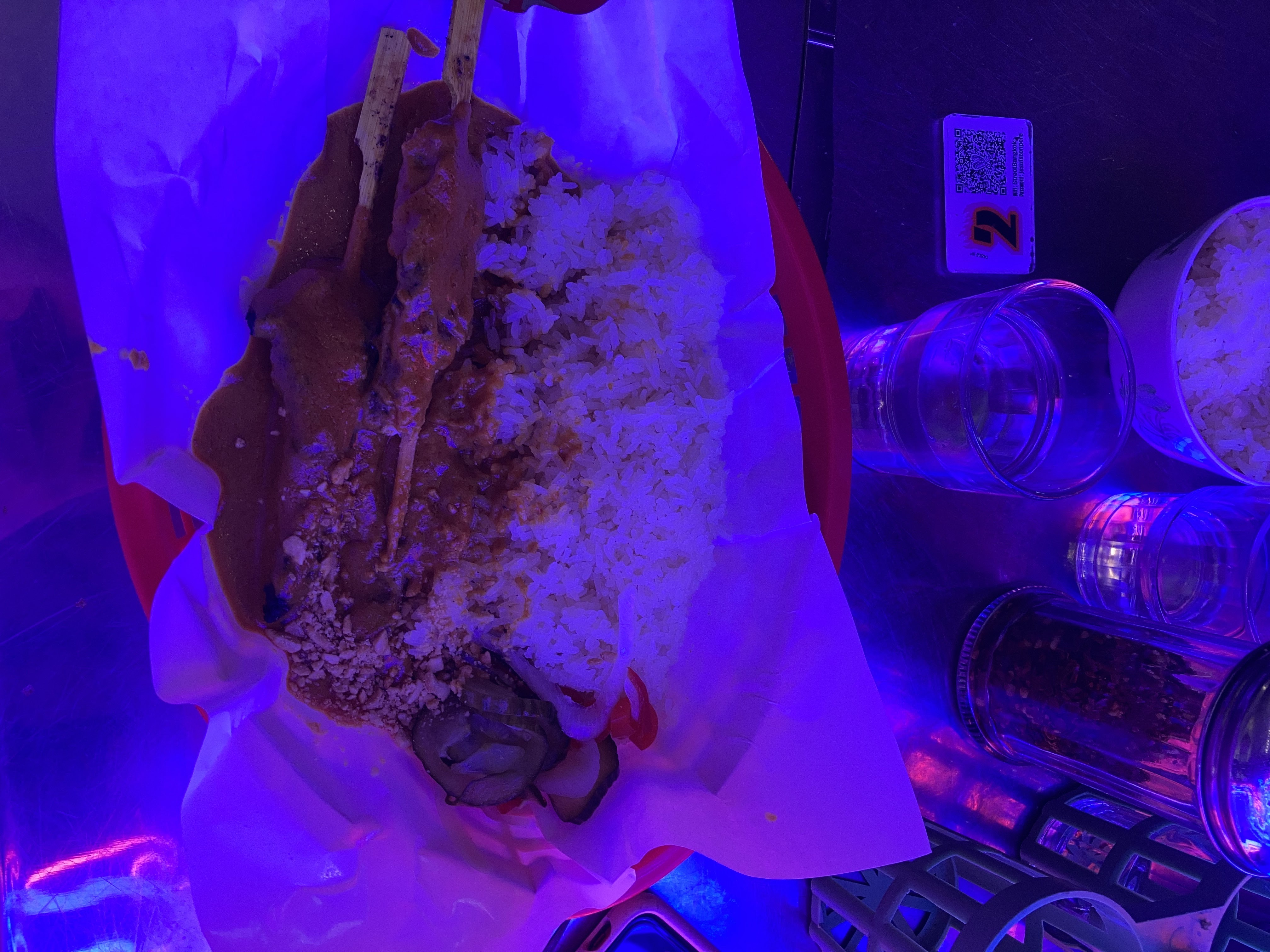 Si tu as faim c’est l’endroit. Servi rapidement, le poulet satay est tellement bon et la sauce vient séparément. La portion j’ai même pas pu finir.. Pendant que j’attendais mon plat j’ai eu une citronnade offert et faite maison (delicious). Ambiance street style, music de fond très chill. Ah oui, une fois sur place, regardez bien le mot de passe wifi inscrit sur la table ça vous fera rire 🤣