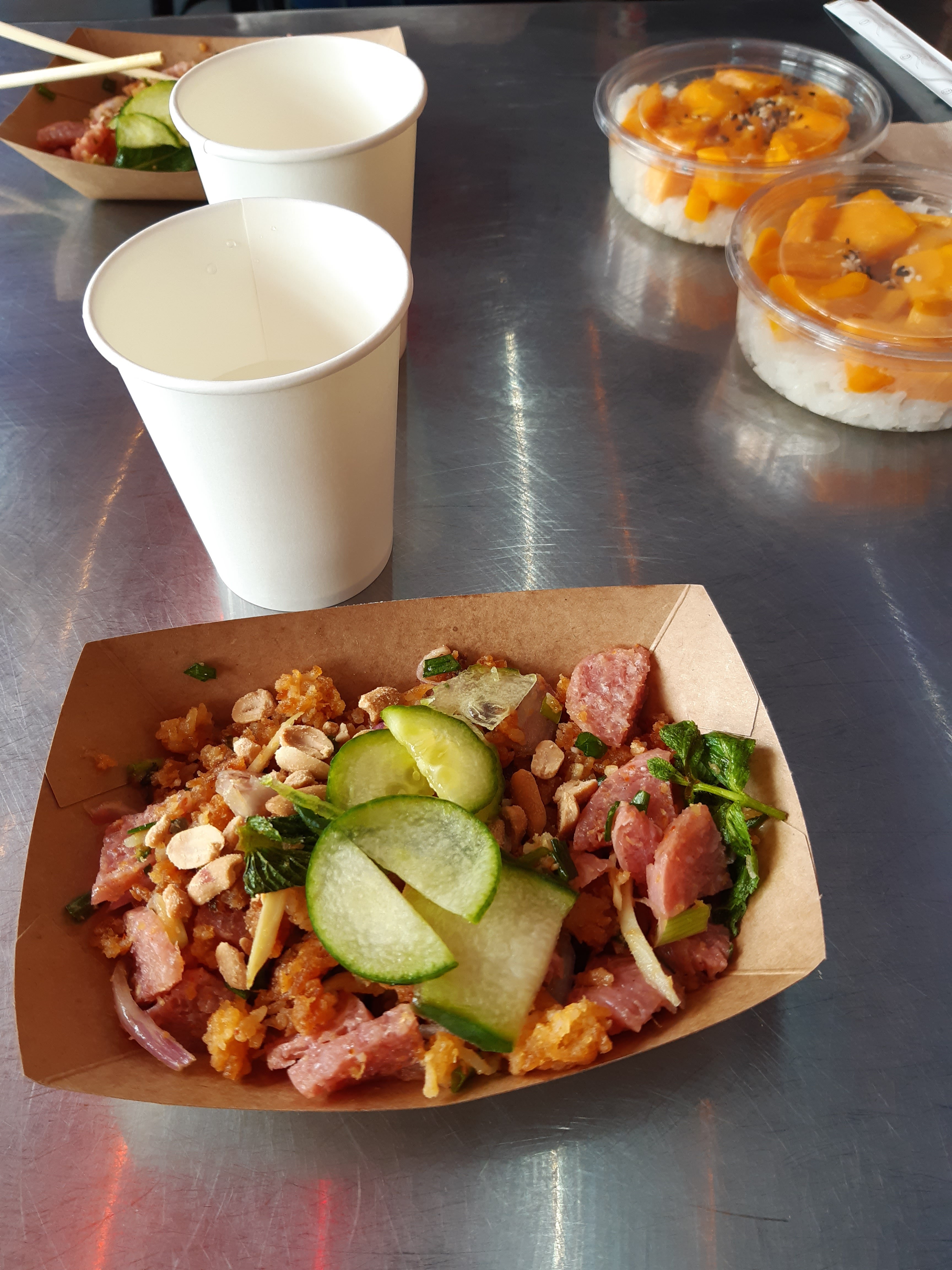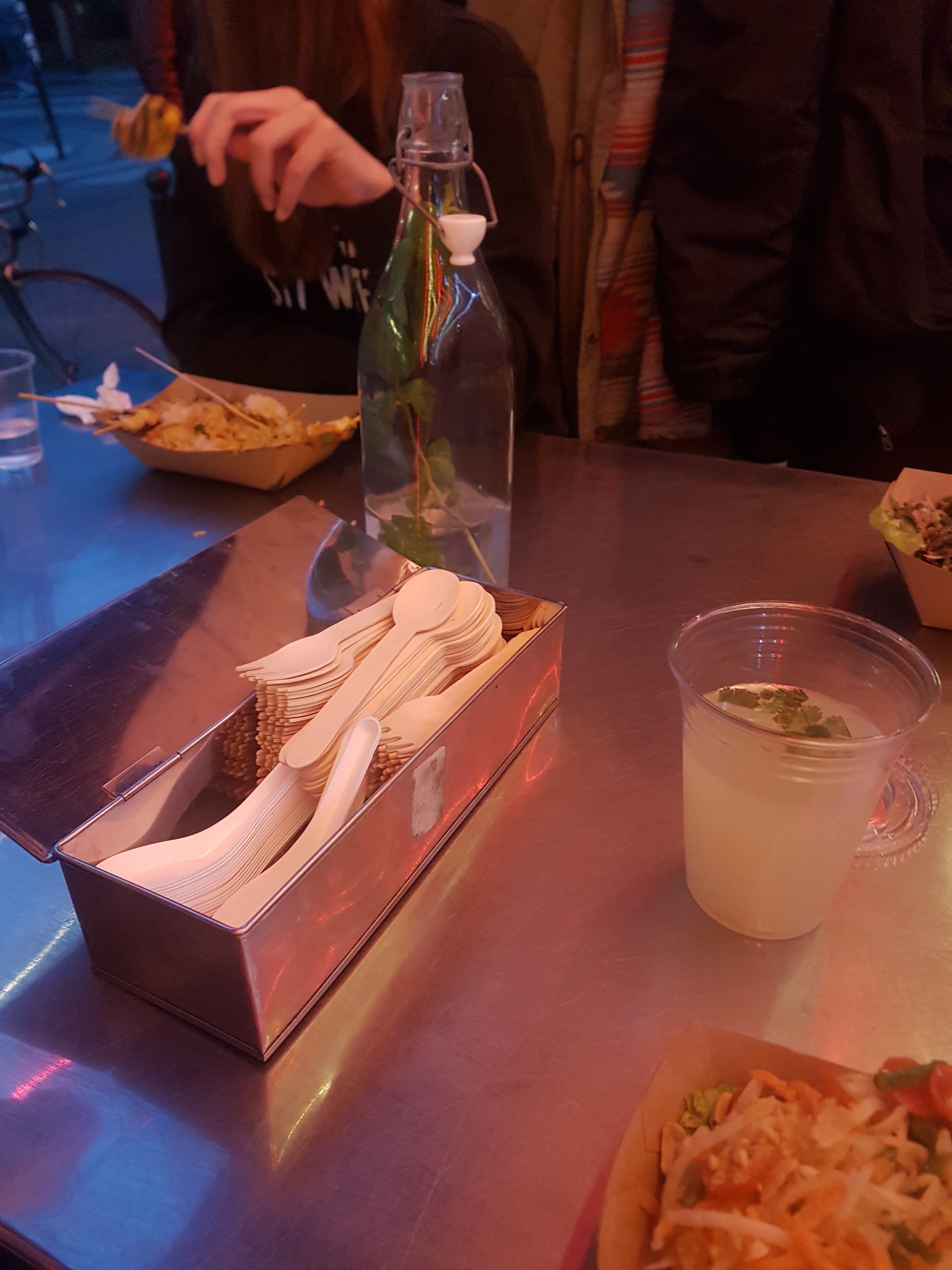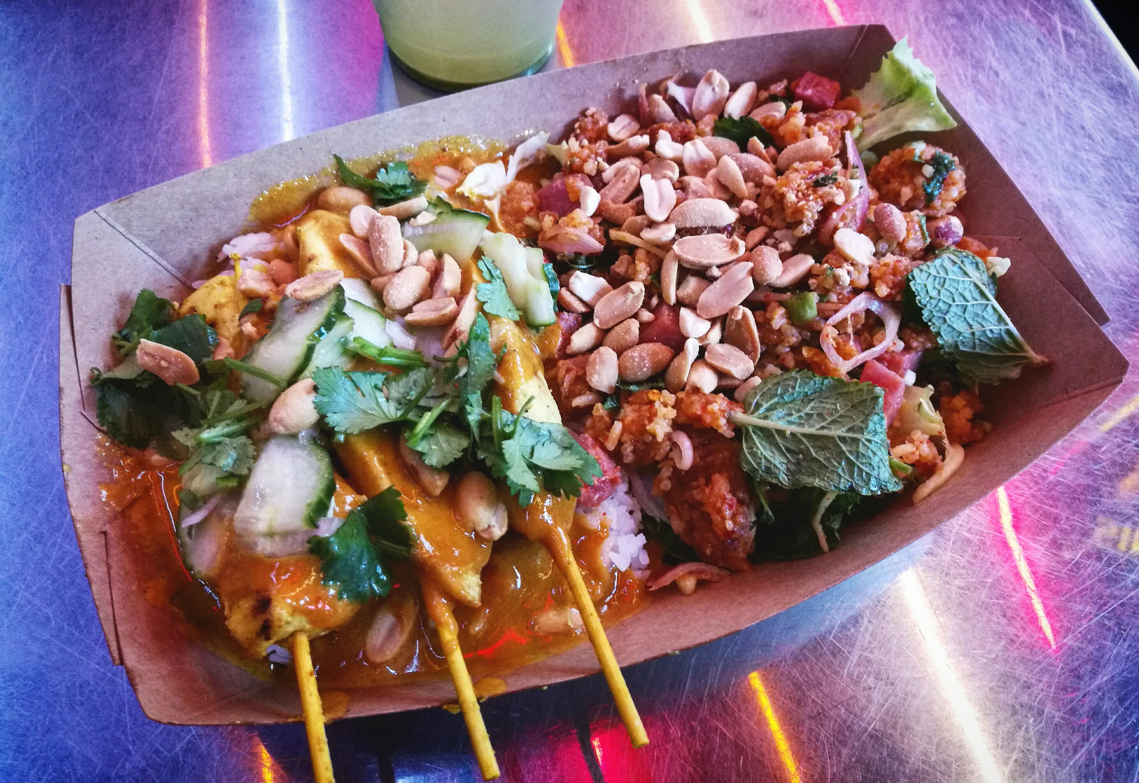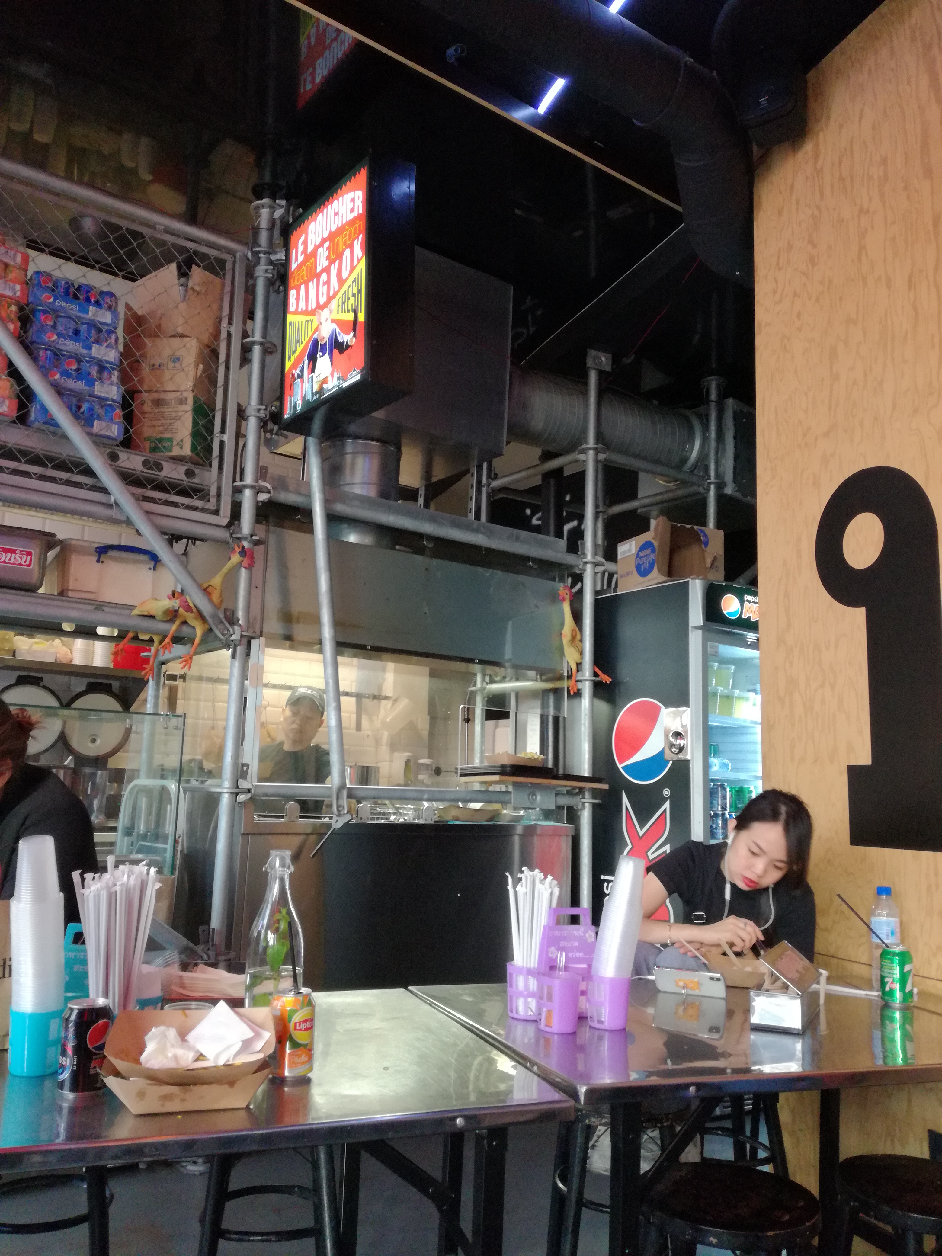 Bon plan pour tester une street food avec une touche Thaï. Tables partagées carafes d'eau mentholée tout l'univers du easy to eat y est rassemblé !