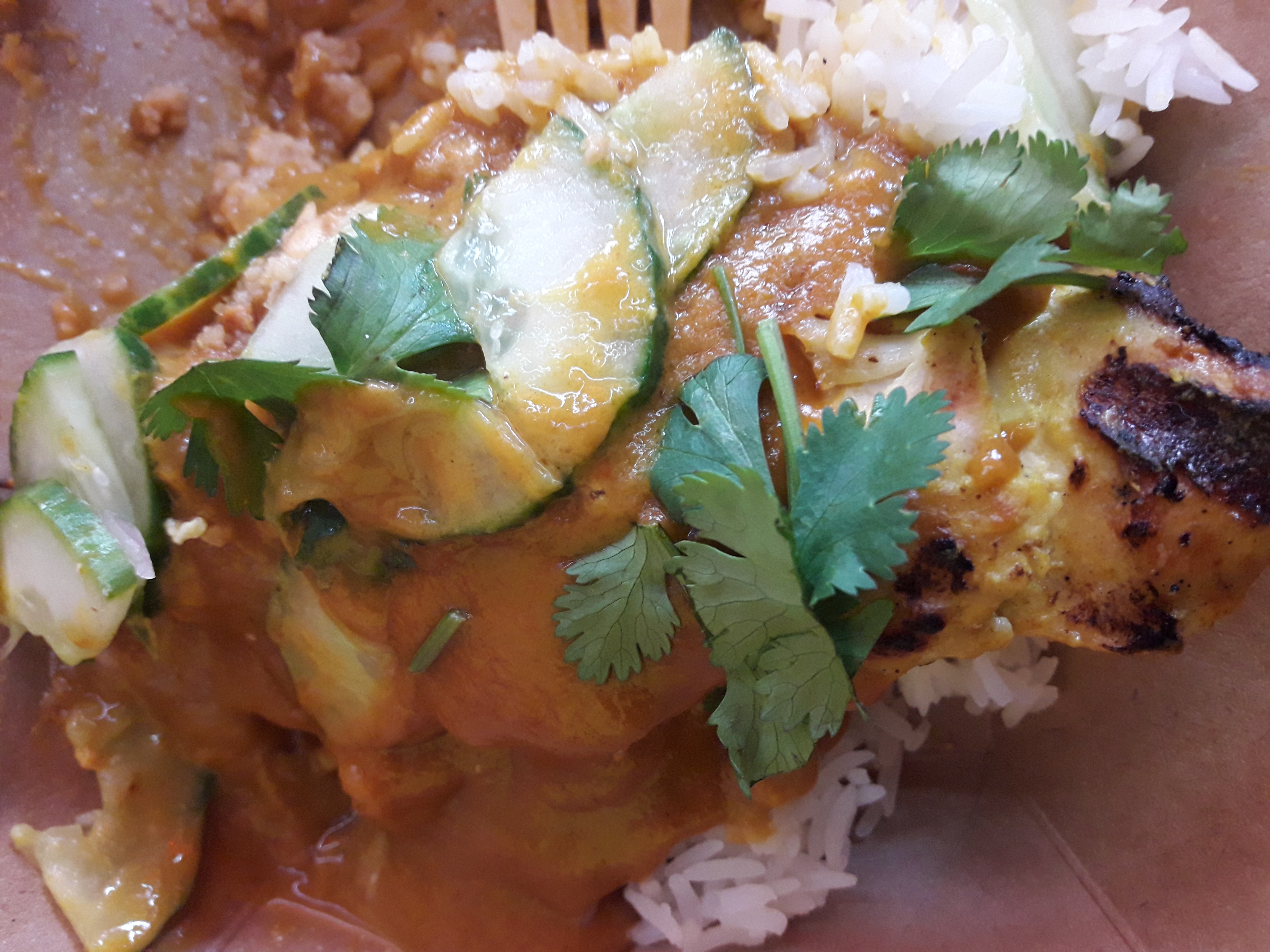 Et bah ça finit de baisser en qualité mais pas en prix. Avant on pouvait croire que le poulet était fraîchement désossé, là pas du tout et se rapproche des tranches du supermarché du coin. Et même pas en grande quantité.Lee curry rouge est relevé mais terne et a perdu sa richesse en goût. Je ne recommande plus pour découvrir ce style de cuisine.