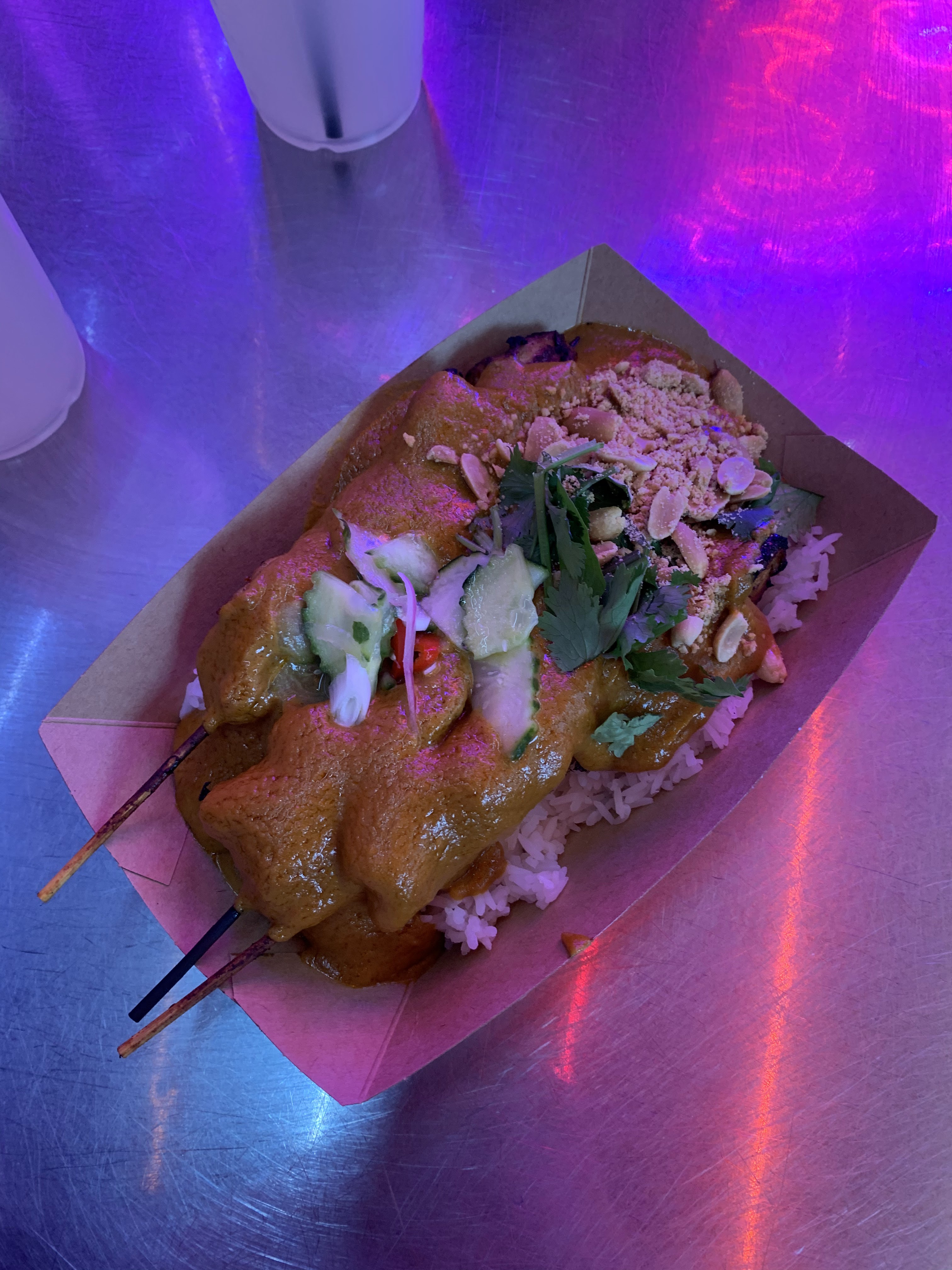 J’ai commandé des brochettes au poulet satay: le plat dans l’ensemble n’était pas exceptionnel, c’est la sauce qui la rendu bon. Néanmoins je trouve que la cuisson et la qualité du poulet sont à revoir, il n’était pas entièrement cuit et assez difficile à manger (il était très élastique). Le personnel était très aimable, néanmoins je trouve cela dommage que la commande s’effectue entièrement ou quasi entièrement en ligne, car cela diminue le contact avec le personnel, rendant l’expérience moins humaine. Je garde un bon souvenir de ce restaurant malgré tout, le décor est très réaliste puisque l’on se croirait dans un stand de nourriture en Thaïlande.