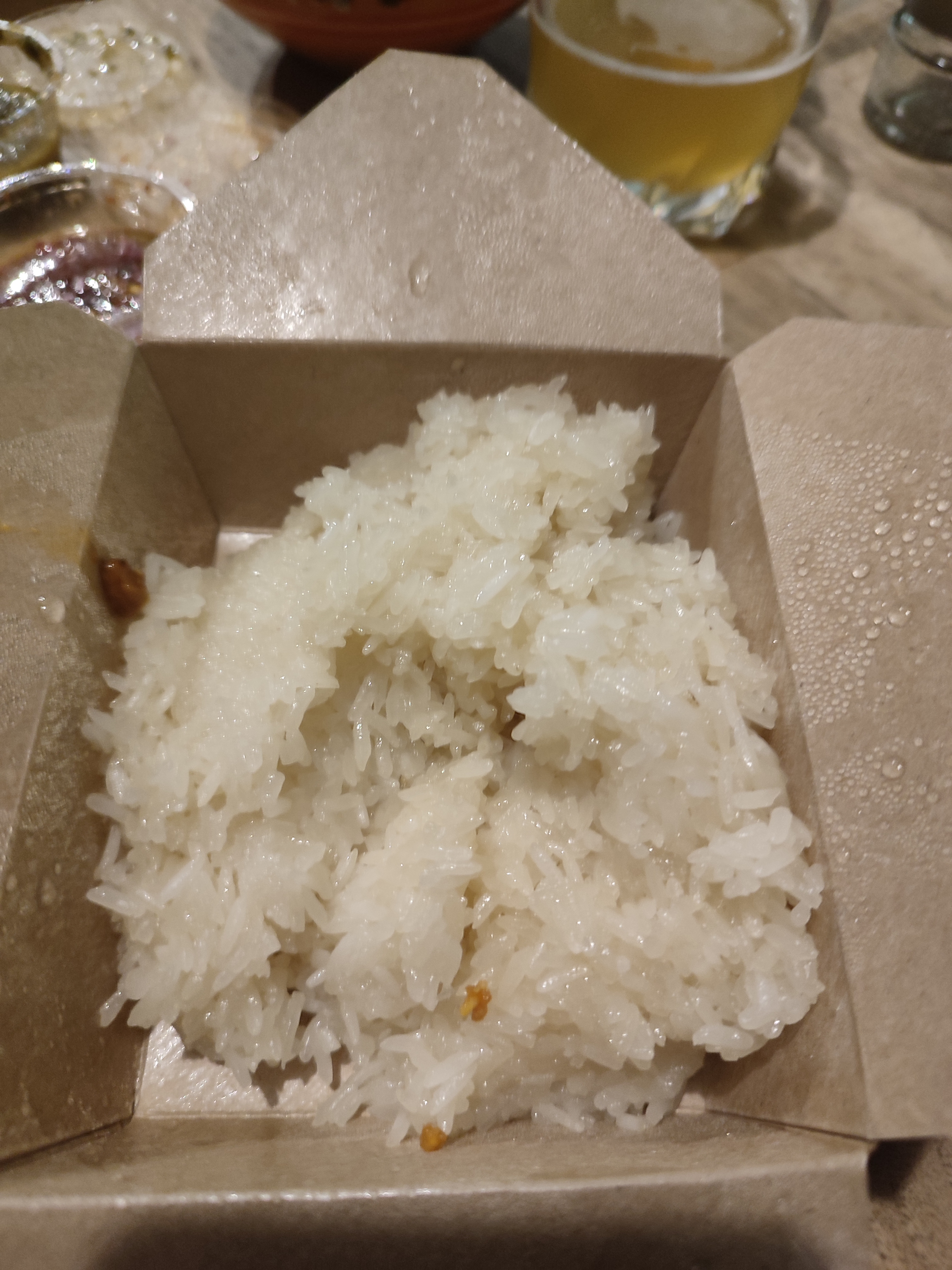 Je commande dans ce restaurant en livraison depuis 2 ans et j'ai toujours été satisfait, mais aujourd'hui je suis obligé de laisser un commentaire car j'ai été très déçu. Pour un mix 4 viandes, je n'ai reçu que de petites portions de viandes, nous avons eu à peine à manger pour 2. Ensuite la qualité des ingrédients n'étaient pas au rendez-vous, le boeuf tigre qui pleure était juste des tranches de boeuf saignantes sans assaisonnement, les ribs contenaient très peu de viandes et surtout de l'os, et le riz gluant était dur et beaucoup trop collé, nous avons du le déchirer avec les mains vu qu'il était impossible de se servir avec des baguettes ou une fourchette.