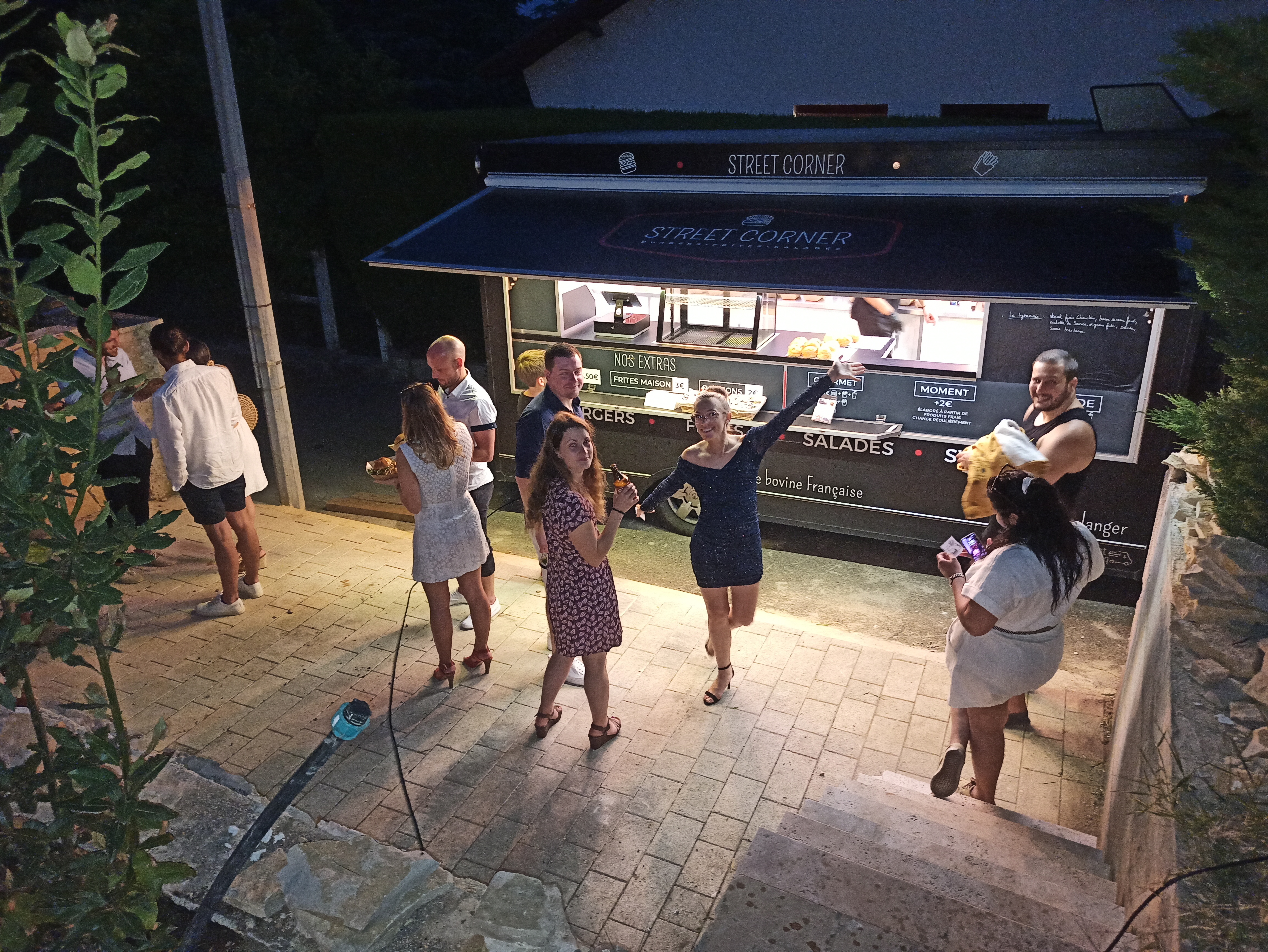 Nous avons choisi street corner pour notre événement à domicile . Nous sommes ravis . Burger et hot dog excellents . Hygiène irréprochable. Food truck nickel Des sourires , de la bonne humeur . La patron est très pro et très agréable . Une réactivité ++ pour les échanges avant la prestation . Nous ferons de nouveau appel à vous hésitation. Ne changez rien ! C'était parfait . Merci encore