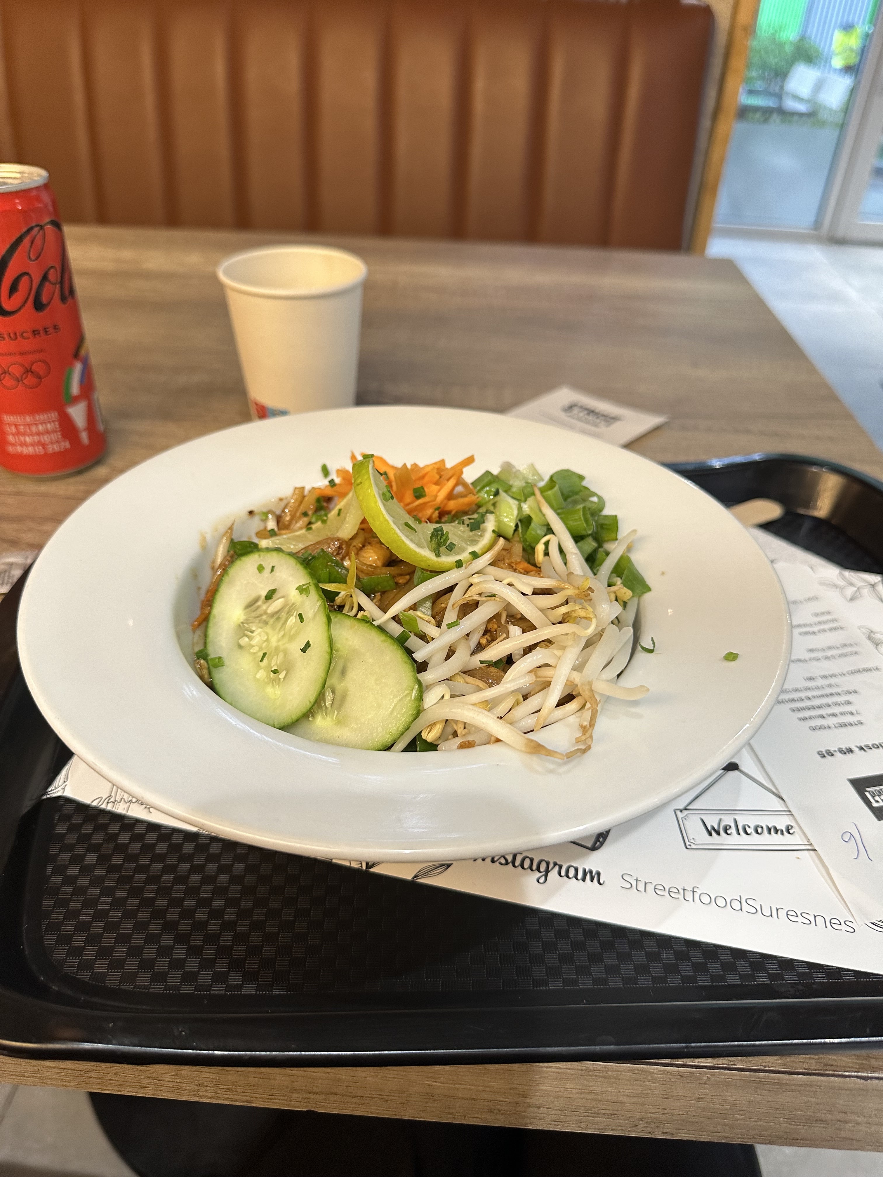 Déception : Sympathique devanture, restaurant propre, carte alléchante et variée pour de la Street Food, mais alors quelle déception !!!! - Un poulet croustillant thaïlandais qui n est qu un poulet pané et gras, rien à voir avec un vrai poulet croustillant Thai!! - Des nouilles sautées trop cuites, noyées dans de la sauce soja . Résultat un gloubiboulga excessivement salé qui n'a pu être consommé. - un naan kebab, pas mauvais en soi, mais qui ne ressemble en rien au goût d' un kebab. Restaurant qui cherche à proposer l'ensemble de la street food existante mais qui n est spécialisé en rien. Résultat rien n est réussi.