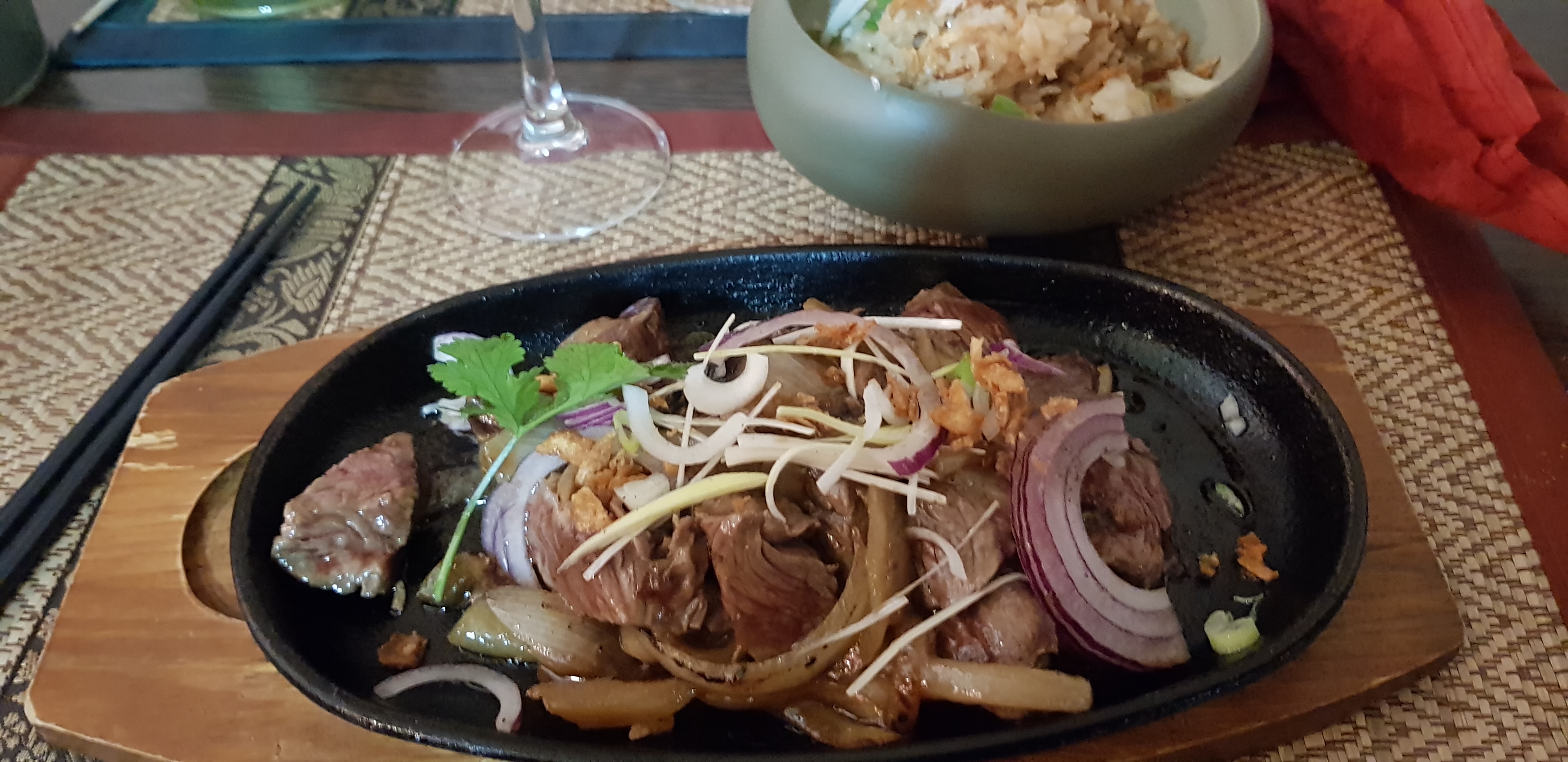 Tout est au top! L'accueil de l'équipe adorable, l'ambiance décontractée et chaleureuse avec une déco super sympa et surtout la cuisine ! Nous avions goûter des travers de porc fabuleux , des nems dans les règles de l'art et un filet de bœuf à tomber par terre ❤️ Tous était succulent ! Et nous sommes plutôt expérimentés en saveurs asiatiques ! Et pour finir ,un petit whisky japonnais toguchi,fameux ! Allez y les yeux fermés , vous allez voyager et vous régaler du début à la fin !