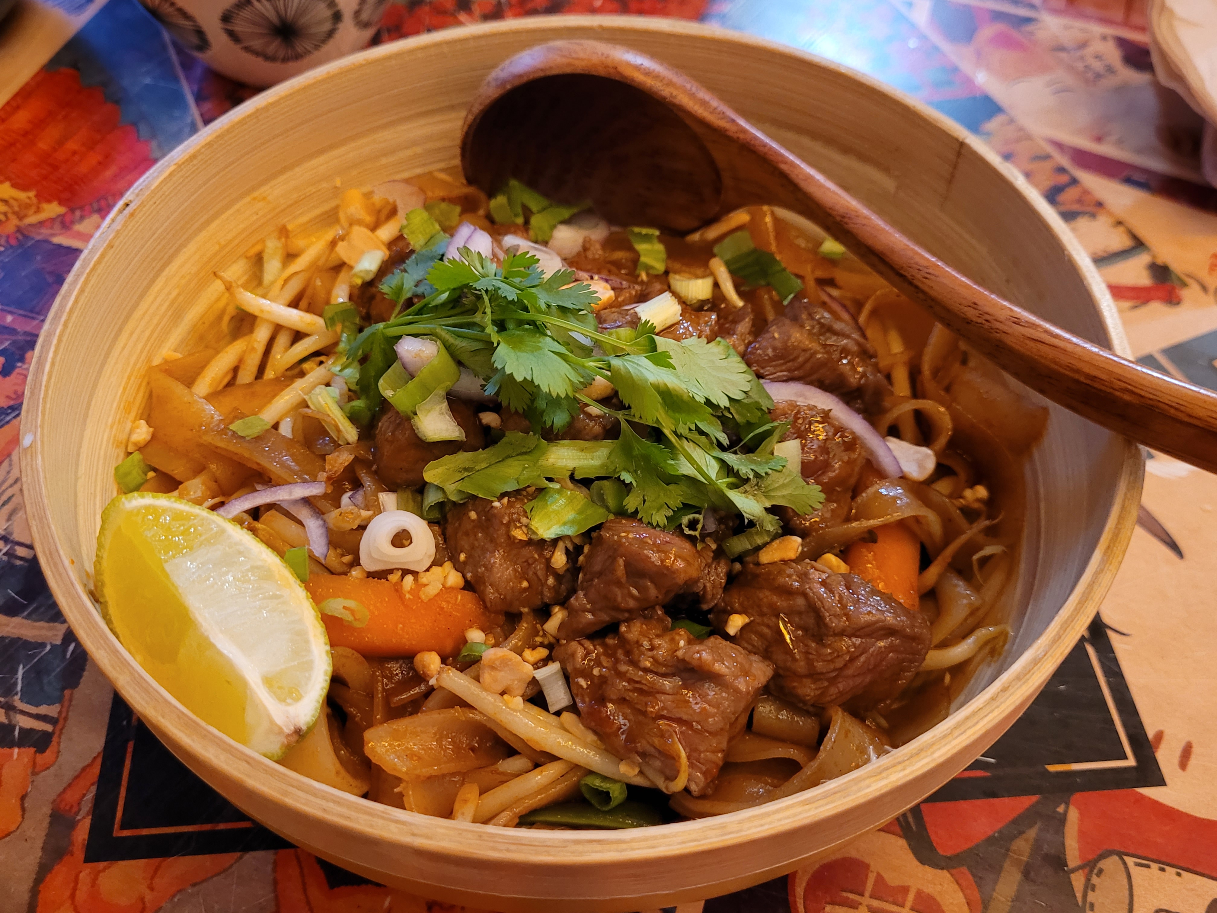 Pad thaï au menu,très bien assaisonné mais pour moi trop copieux.