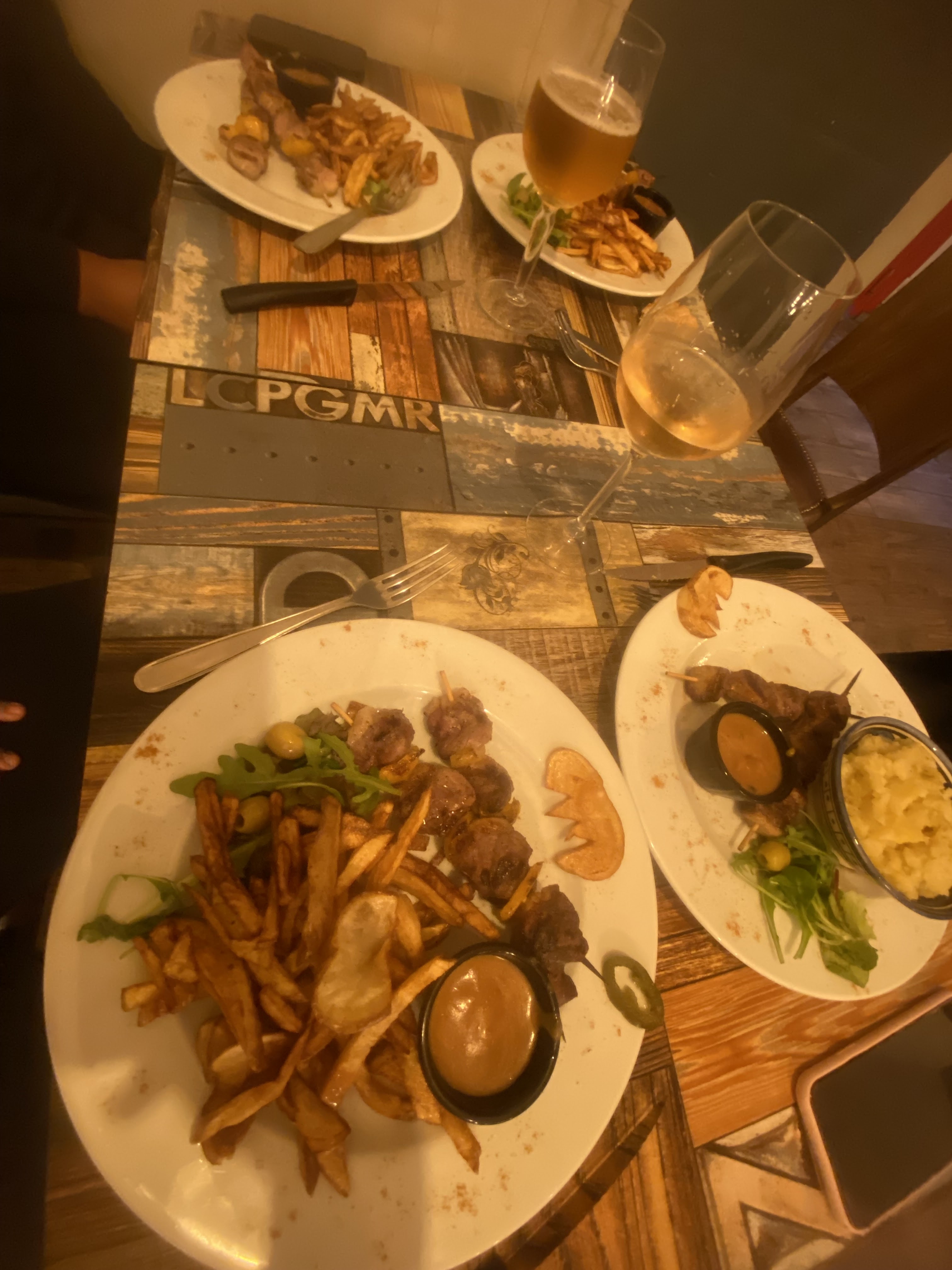 Salade correct, gésiers froid. Brochettes de poulet manque de cuisson, frites maison presque crue pour la plupart. C'est dommage !