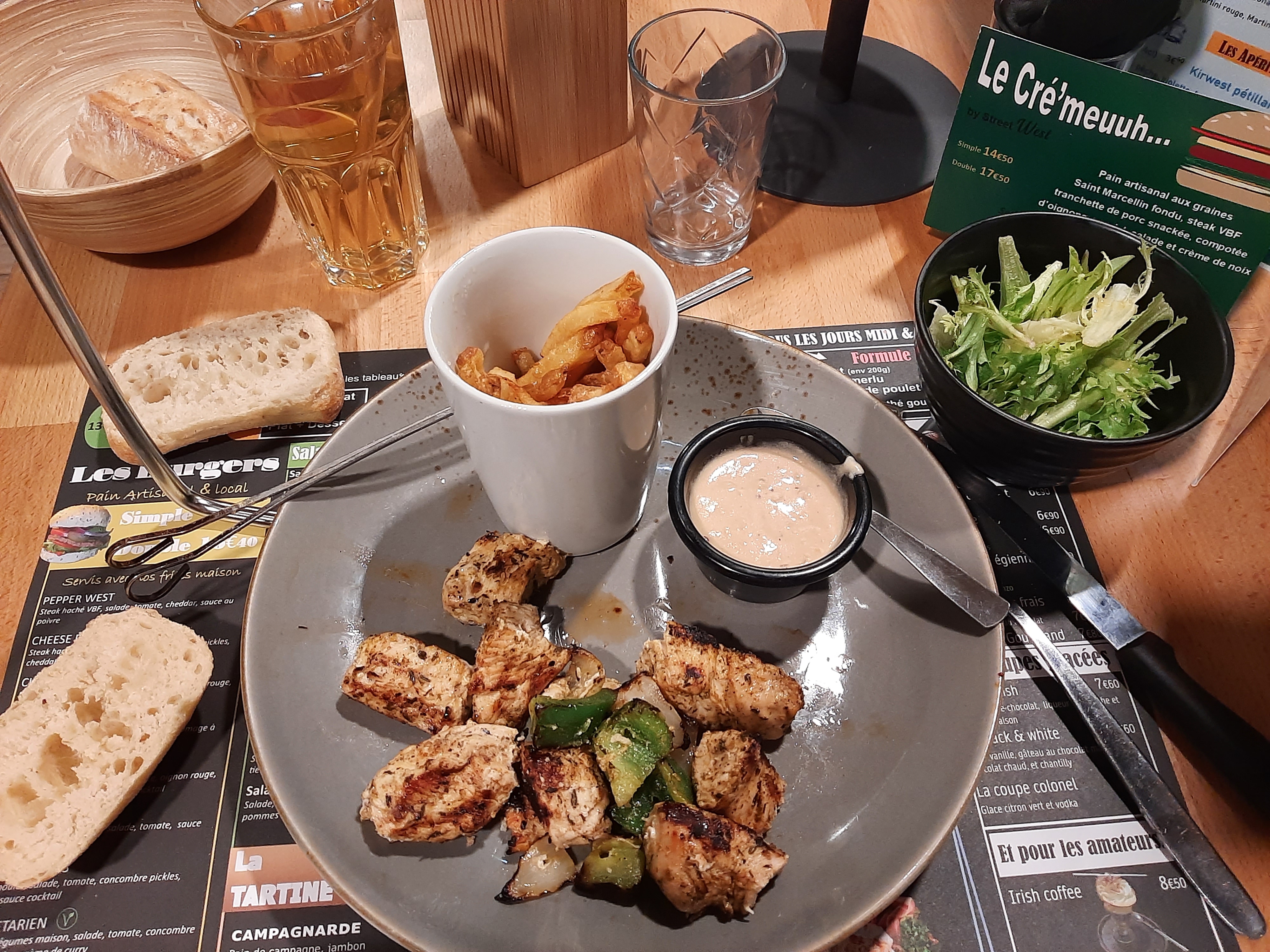 Accueil super génial par le personnel Repas excellent brochette de poulet Restaurant très agréable je recommande vivement