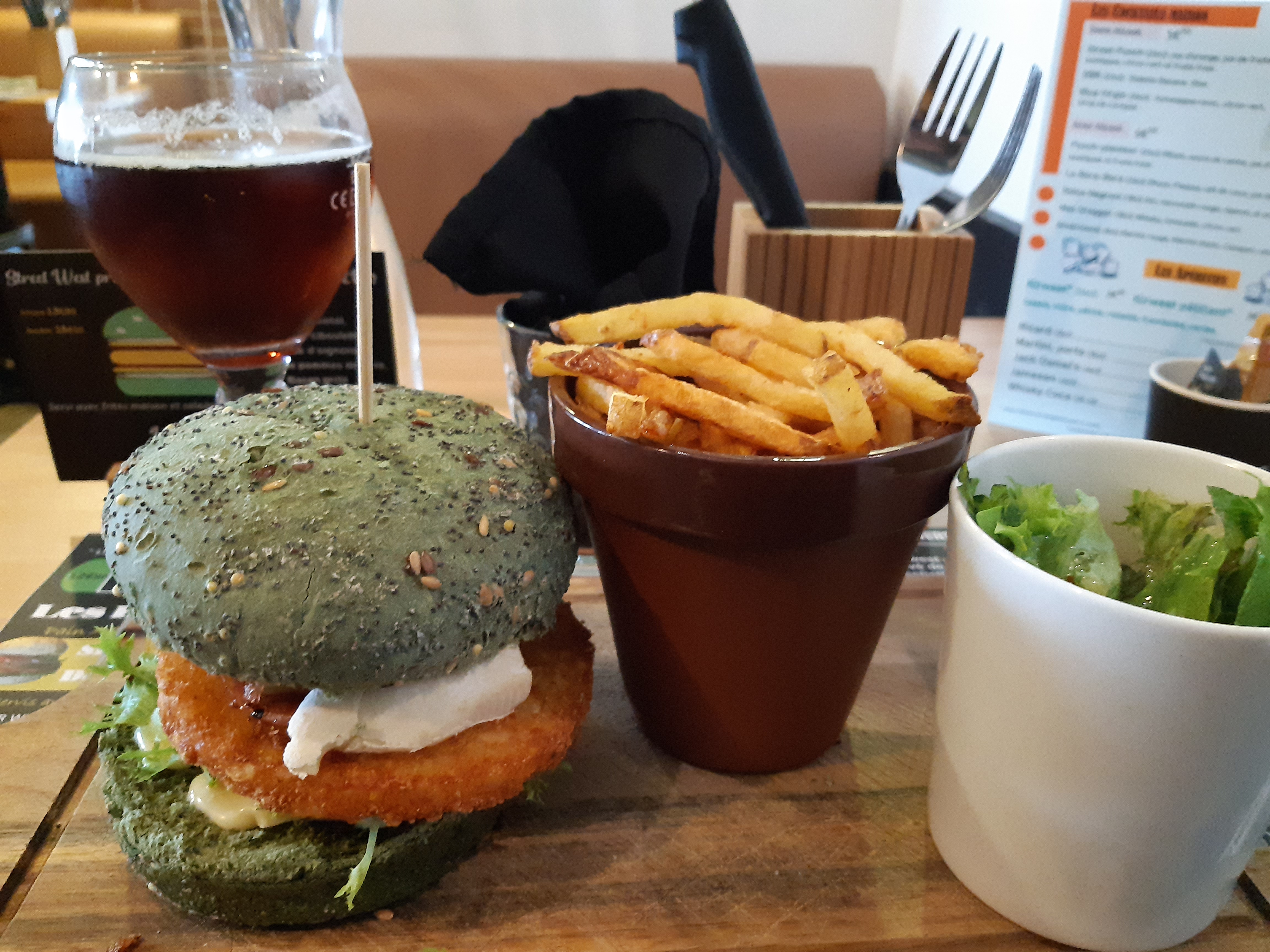 Cadre très agréable et accueil chaleureux. Le burger était très bon (même si pas assez chaud à mon goût) et les frites délicieuses. Nous y avons passé un bon moment, merci.