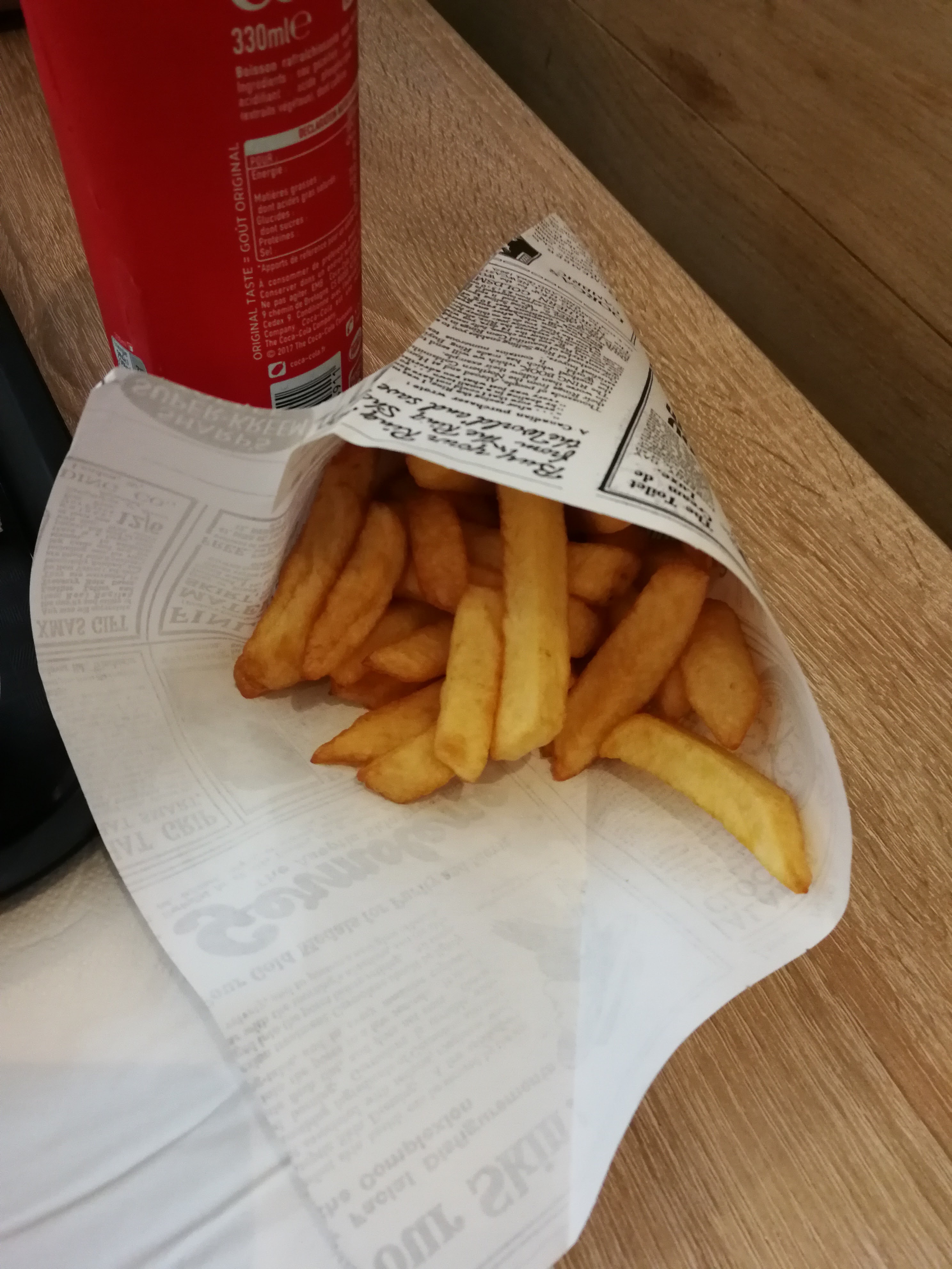 Frites de mauvaise facture, certainement une huile pas changée à temps, propreté du local qui laisse à désirer. Je ne recommande pas plus que cela.