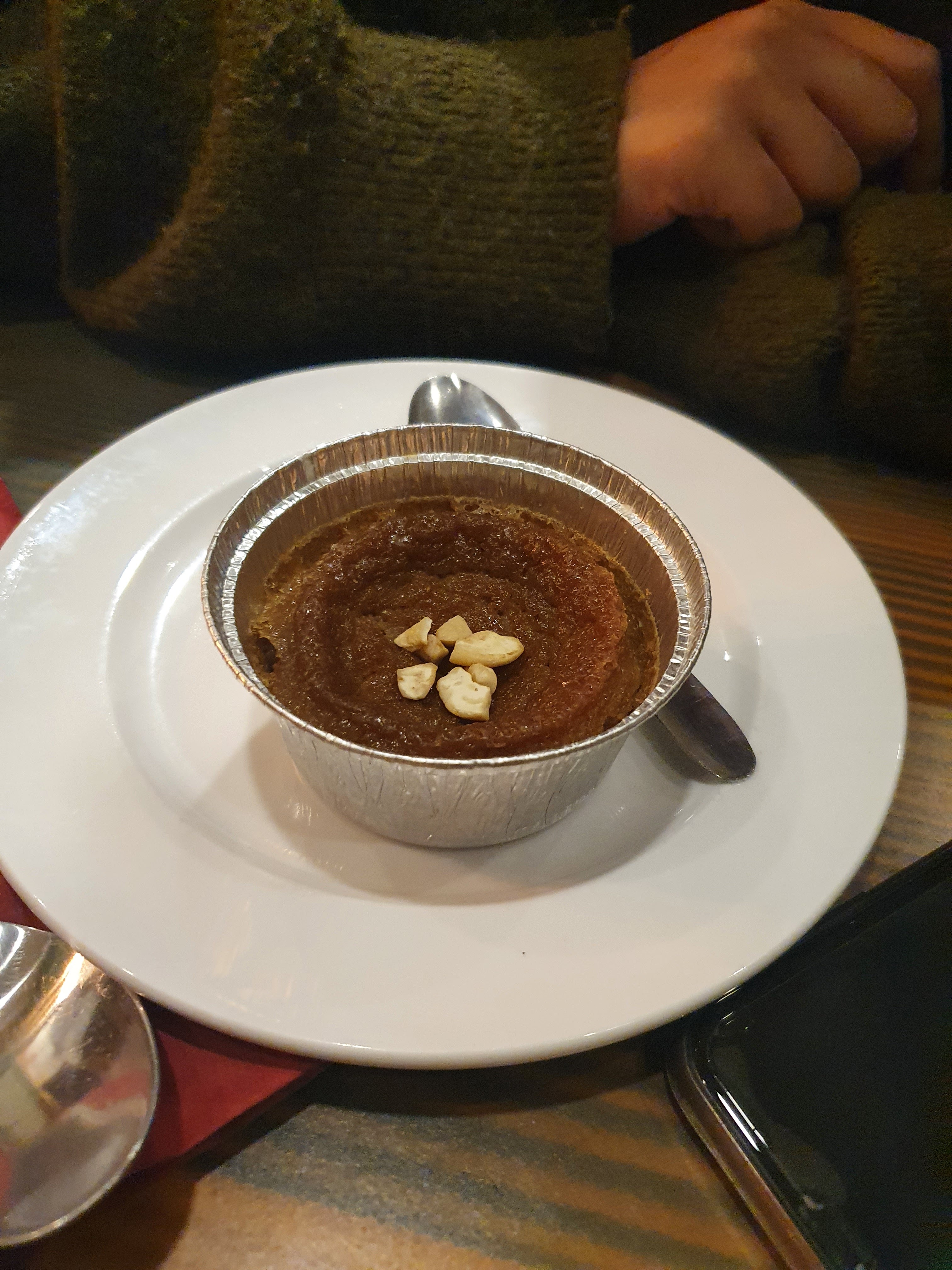 Les samoussas aux légumes sont excellents ! Accompagnés de chutney de menthe, chili et de chutney au tamarin sucré. Accompagnés d'un naan au fromage 🫓 🍽️En plat : poulet tikka massala , j'ai choisi le degré de piment 🌶️ moyen. Le riz basmati est de première qualité. À la vue, le grain est long. ☕Boisson : thé chai ➡️thé noir avec des épices ( clous de girofle, gingembre, cardamome, cannelle) et du lait. Excellent avec ce temps pluvieux. 🍮Dessert: kesari ( gâteau semoule à la façon sri-lankaise) Les gérants sont professionnels. Ces derniers demandent si tout va bien , durant le repas. À mes prochains passages, je testerai le chicken 65, chicken butter, le byriani.. Les prix sont abordables !