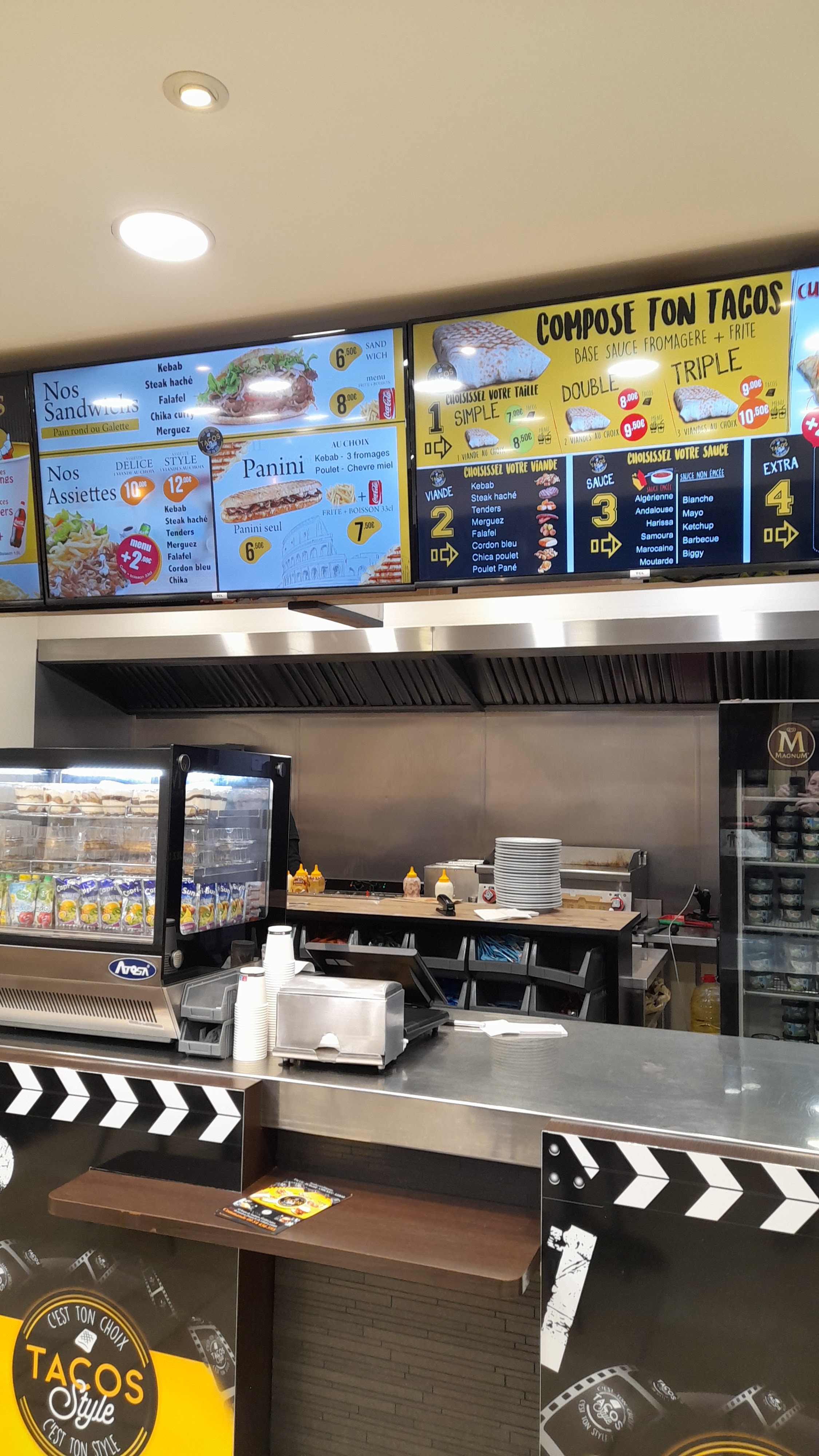 Accueil et service au top, tacos, sandwich, dessert...très copieux et délicieux! Je recommande 😊