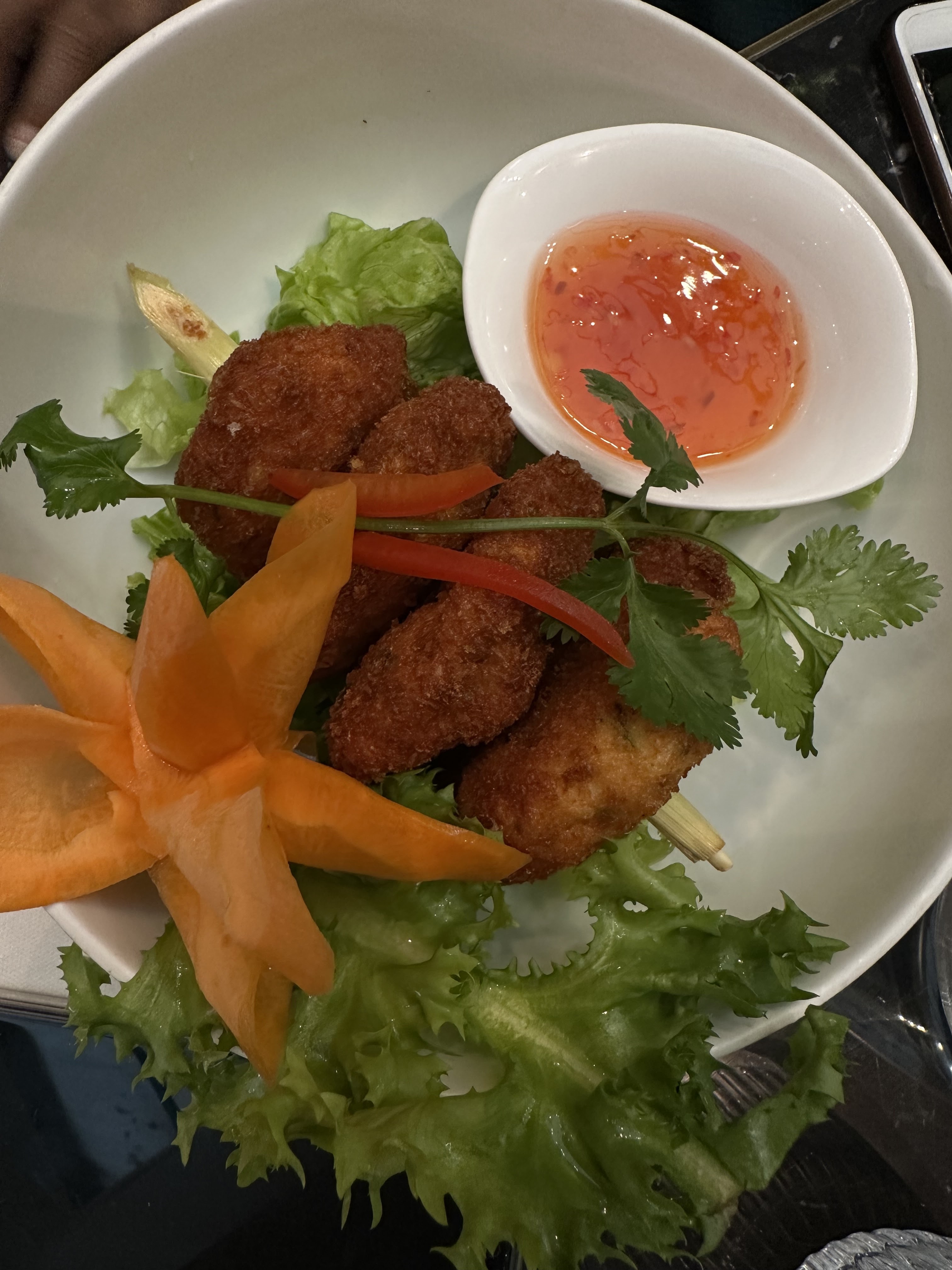 Restaurant beaucoup trop cher pour ce que c est. L' entrée : salade de fleurs de bananes aux crevettes était lourde et écœurante. Le plat un simple poulet au lait de coco était vraiment fade. Je sentais à peine le goût du coco par contre le curry vert était sur dosé. Bref, à déconseiller !
