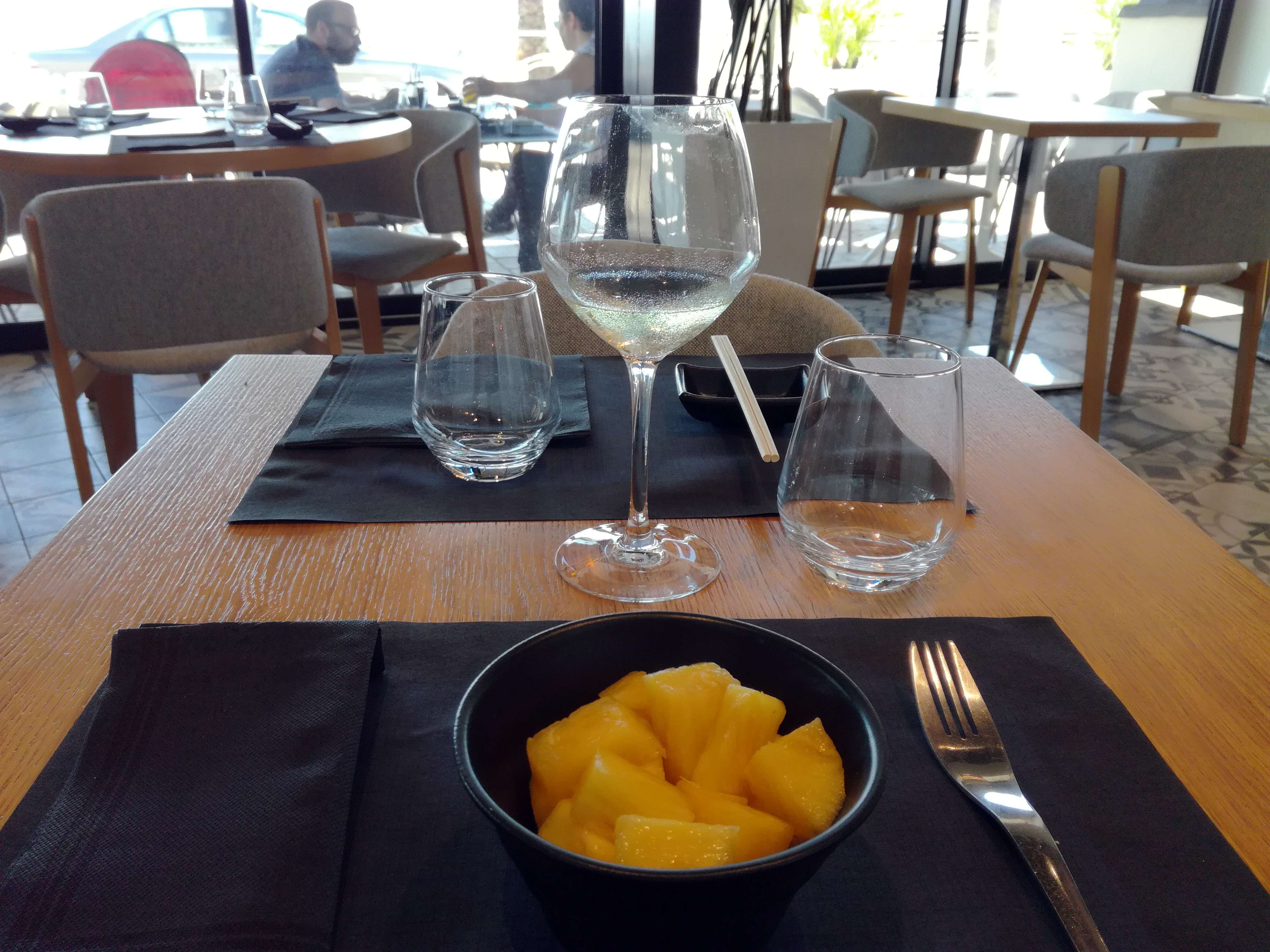 De passage sur Cannes la devanture nous a tentée. Pas de places en extérieur donc intérieur sans clim ... supportable. L'accueil n'était pas à la hauteur, en effet, pas de sourire de la part de la gérante ? Acceuil pas très professionnel d'autant plus qu'on avait hâte de tester ce restaurant. Si vous avez faim préparez vous à attendre plus de 45 min un plateau de sushis classiques... Pas d'excuses pour une si longue attente. Service pas top, peut être que l'équipe est sous staffée ? Le personnel semblait dépassé par la gestion du service, ne connaît pas la table ni les menus pris par les clients. Avec quelques efforts notamment relationnel je pense que ce restaurant pourrait avoir plus d'attribus. Nous n'y retournerons pas.