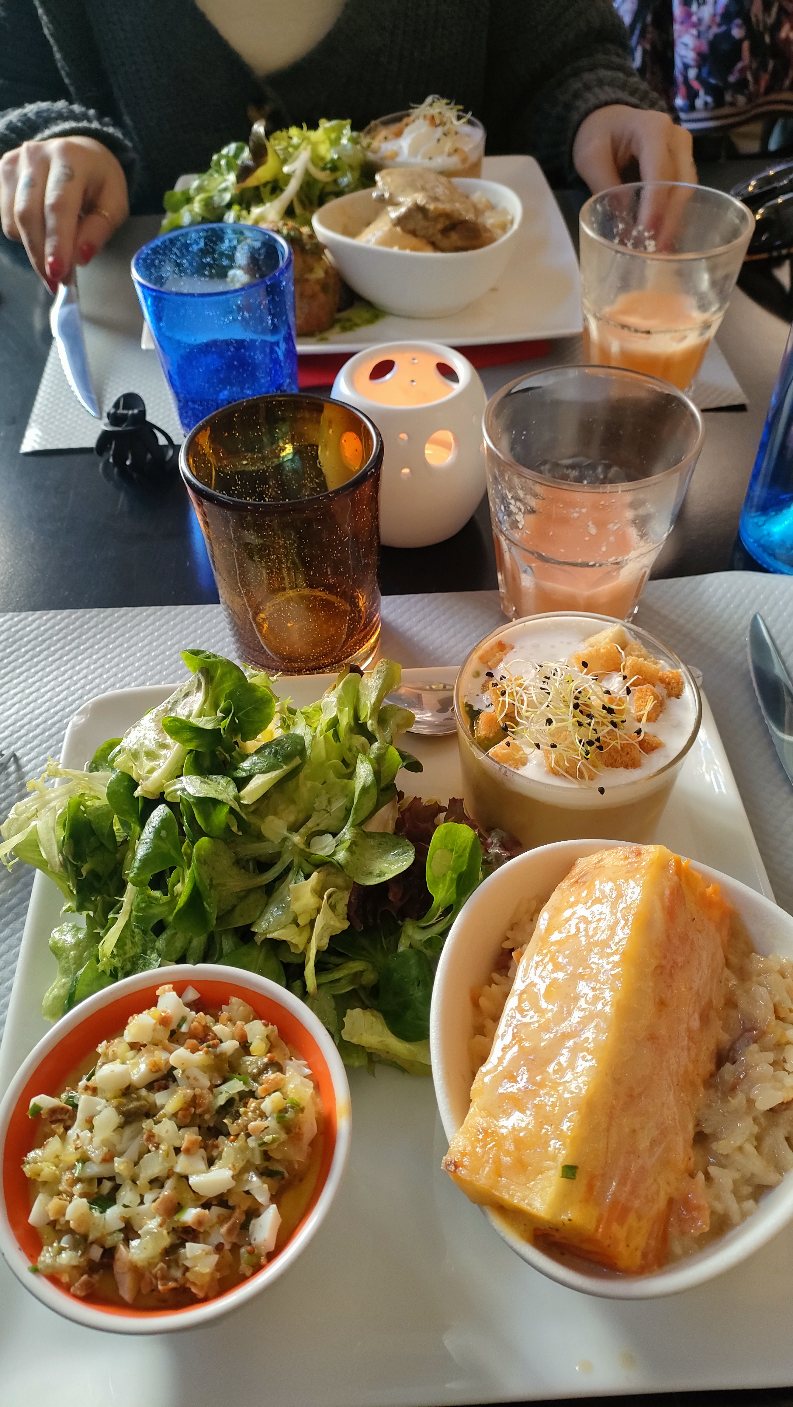 Très belle découverte ! 4 assiettes au choix : terre, mer, végétarien et canard. Très bonne qualité pour le prix et une vraie proposition pour les végétariens ! Excellent merci !