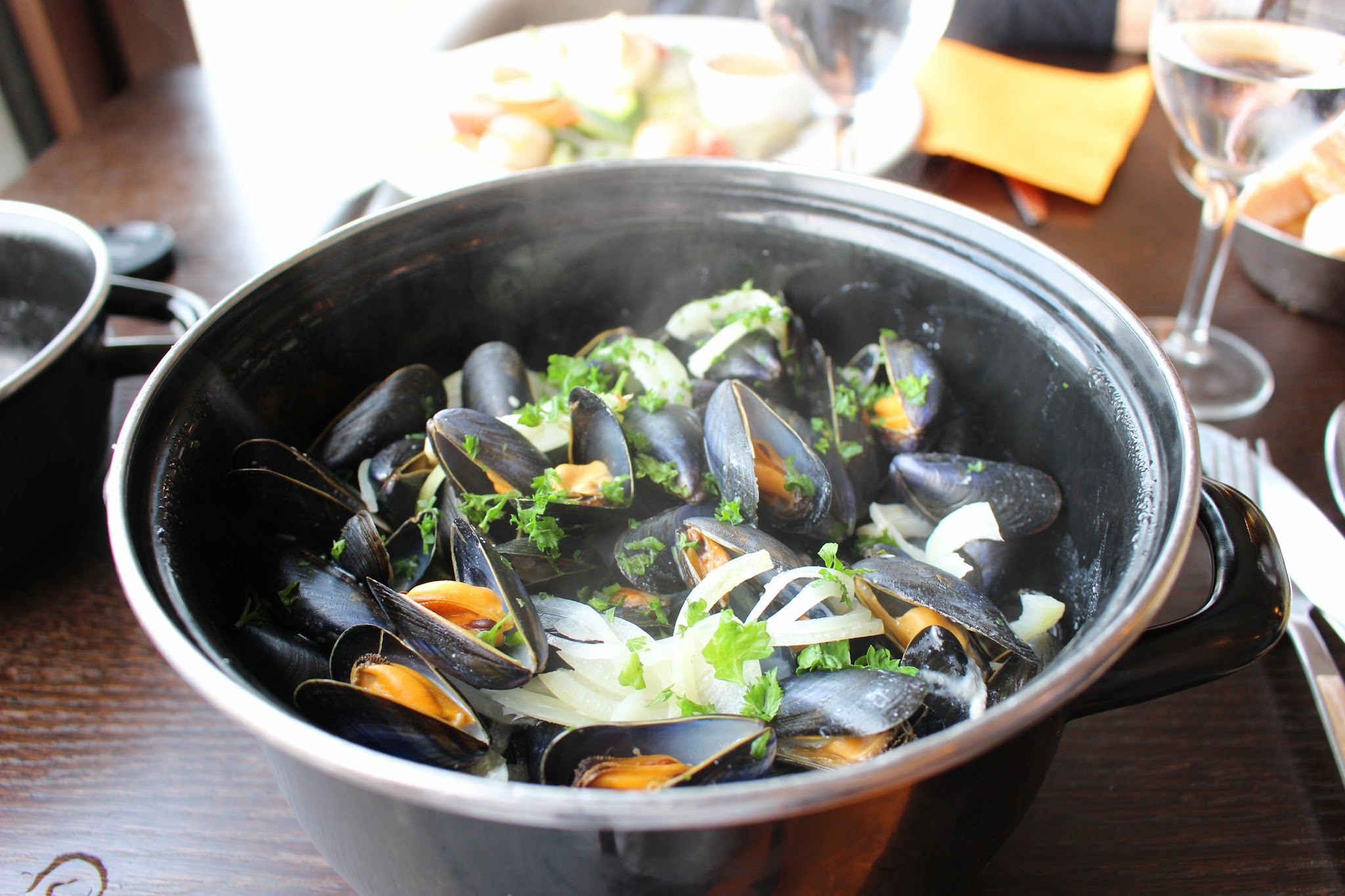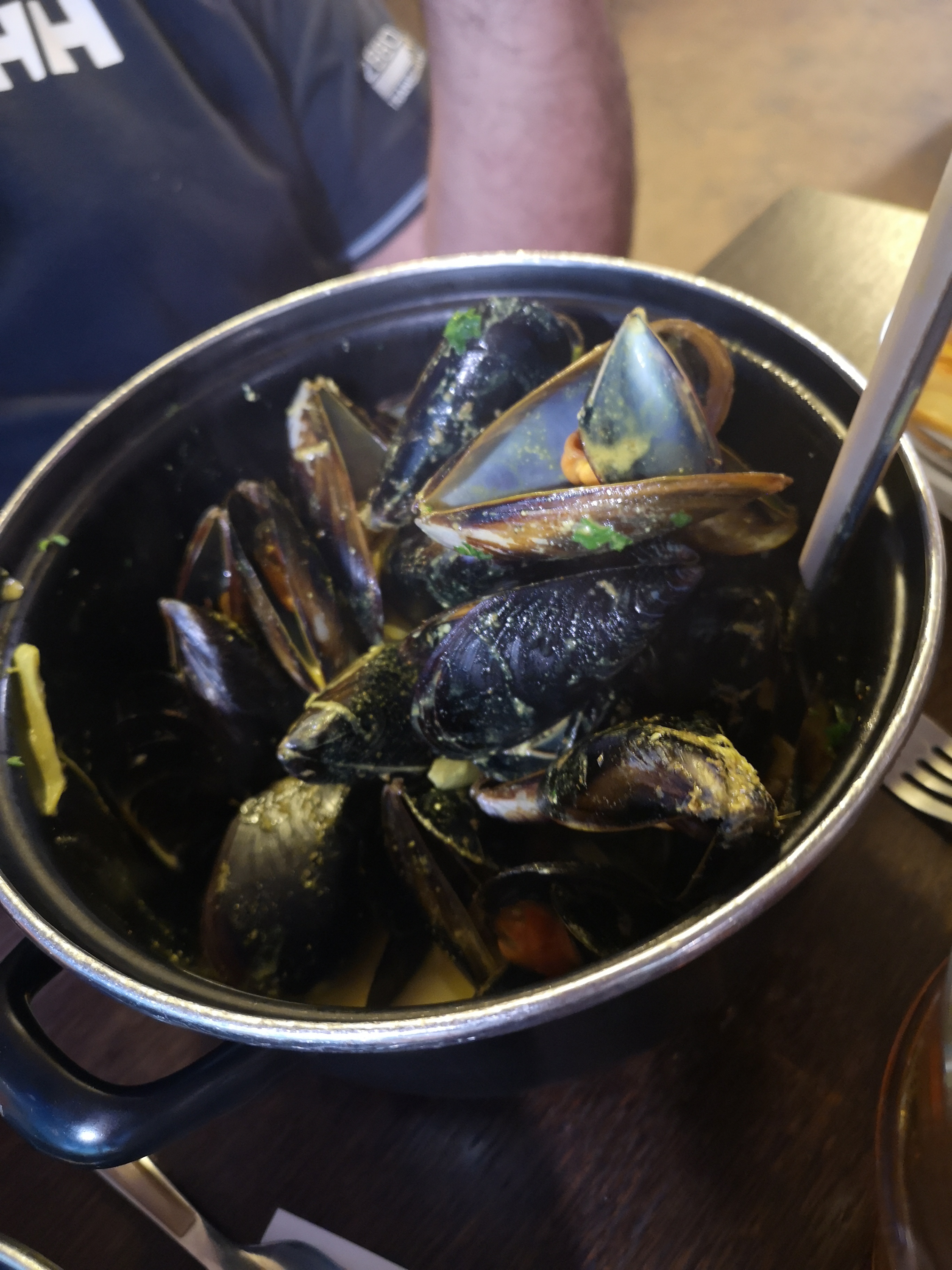 Nous avons pris des moules elles étaient bien trop cuite moules à la crème et moules curry pas savoureuses. Nous avons manger en terrasse avec des mégots au pied de la table. Sinon service et attentes au top