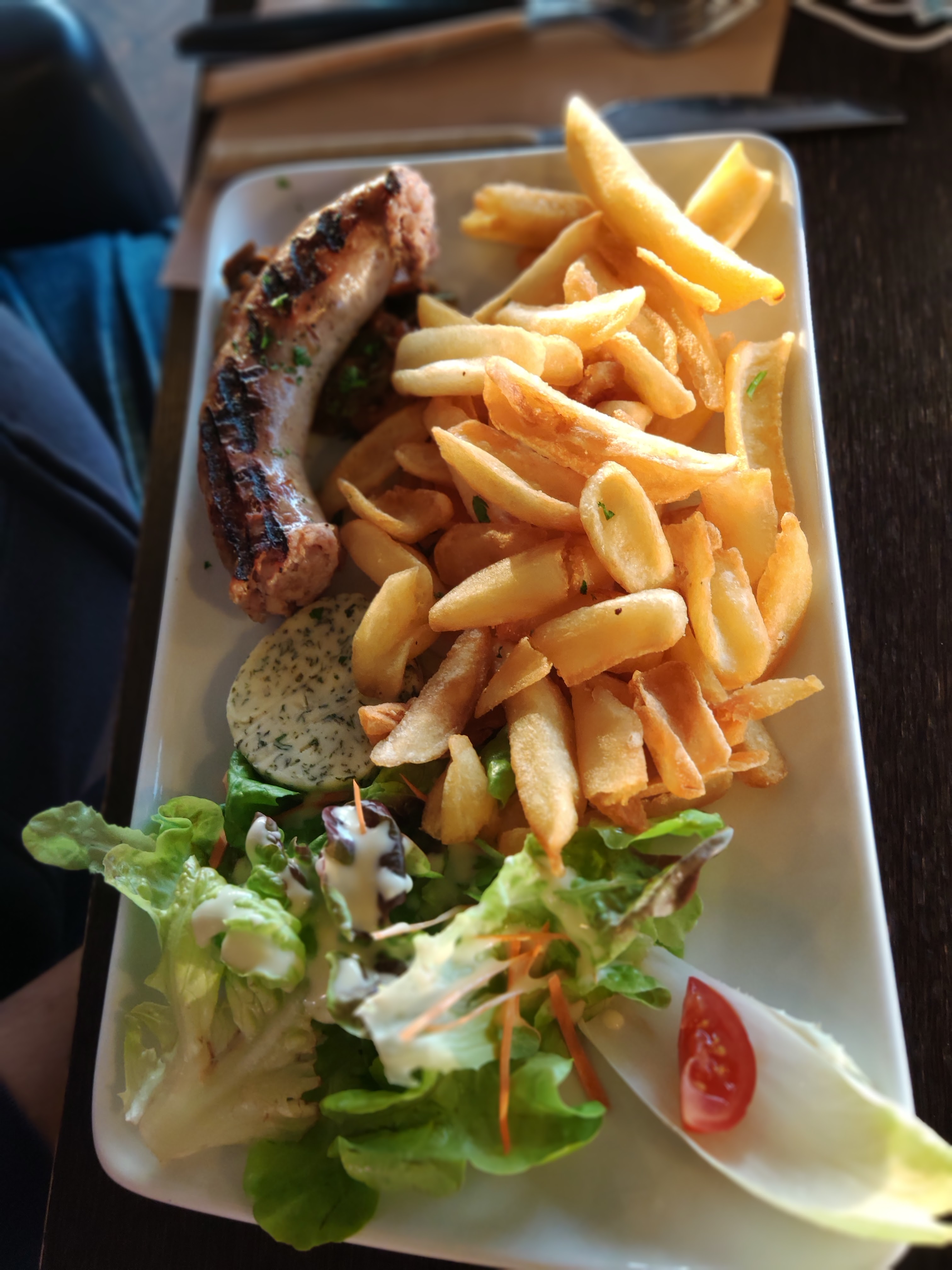Formule crêpe et saucisse pour nous. Satisfaits des repas assez simples, bons, sans chichis, idéal pour un repas imprévu. Le cadre est sympa, à la fois sur la terrasse et en salle. Service agréable. Prix raisonnables. Sans rechercher l'exception, c'est très convenable !