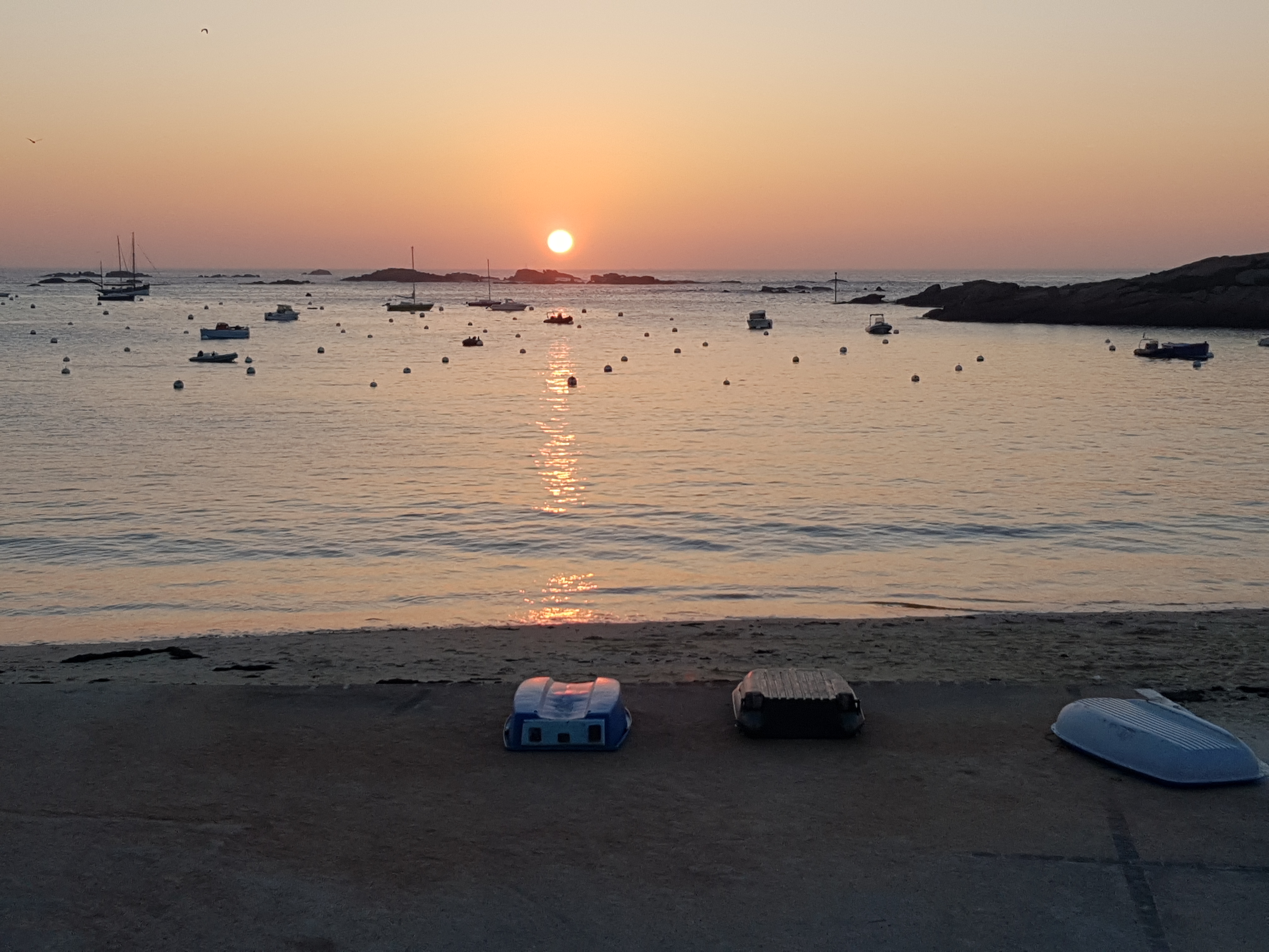 Bonne ambiance. Accueil agréable et aimable. Vue sur mer et chaos de rochers mégalitiques. Parking en plein air gratuit à 100 mètres. Bonnes moules. Bonnes crêpes variées . Prix raisonnables.