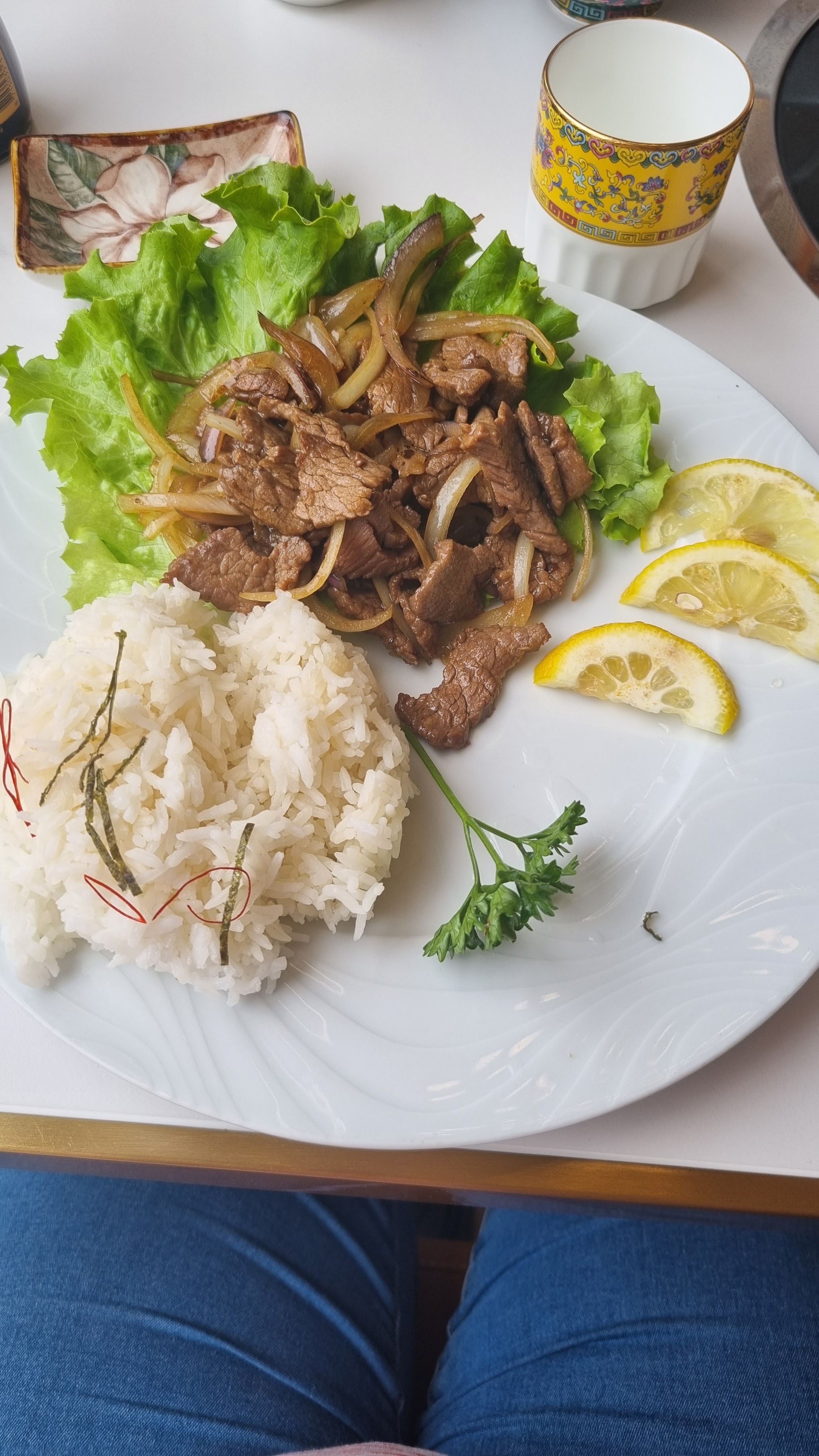 Très décevant, longue attente pour des plats coûteux et pas très garni. Peu de menus proposés pour le midi. 20 min d'écart entre la première personne servie à notre table et les 2 autres. Il a fallu réclamer 2 fois une carafe d'eau. Les serveurs sont inexpérimentés et on les voit errer avec des assiettes en ne sachant plus à quelle table cela doit aller. J'ai commandé un sauté de bœuf dont l'image montrait des poivrons j'ai eu le droit a un pauvre bœuf aux oignons classique. C'est vraiment dommage car la déco est super mais le reste ne vaut pas du tout le coup.