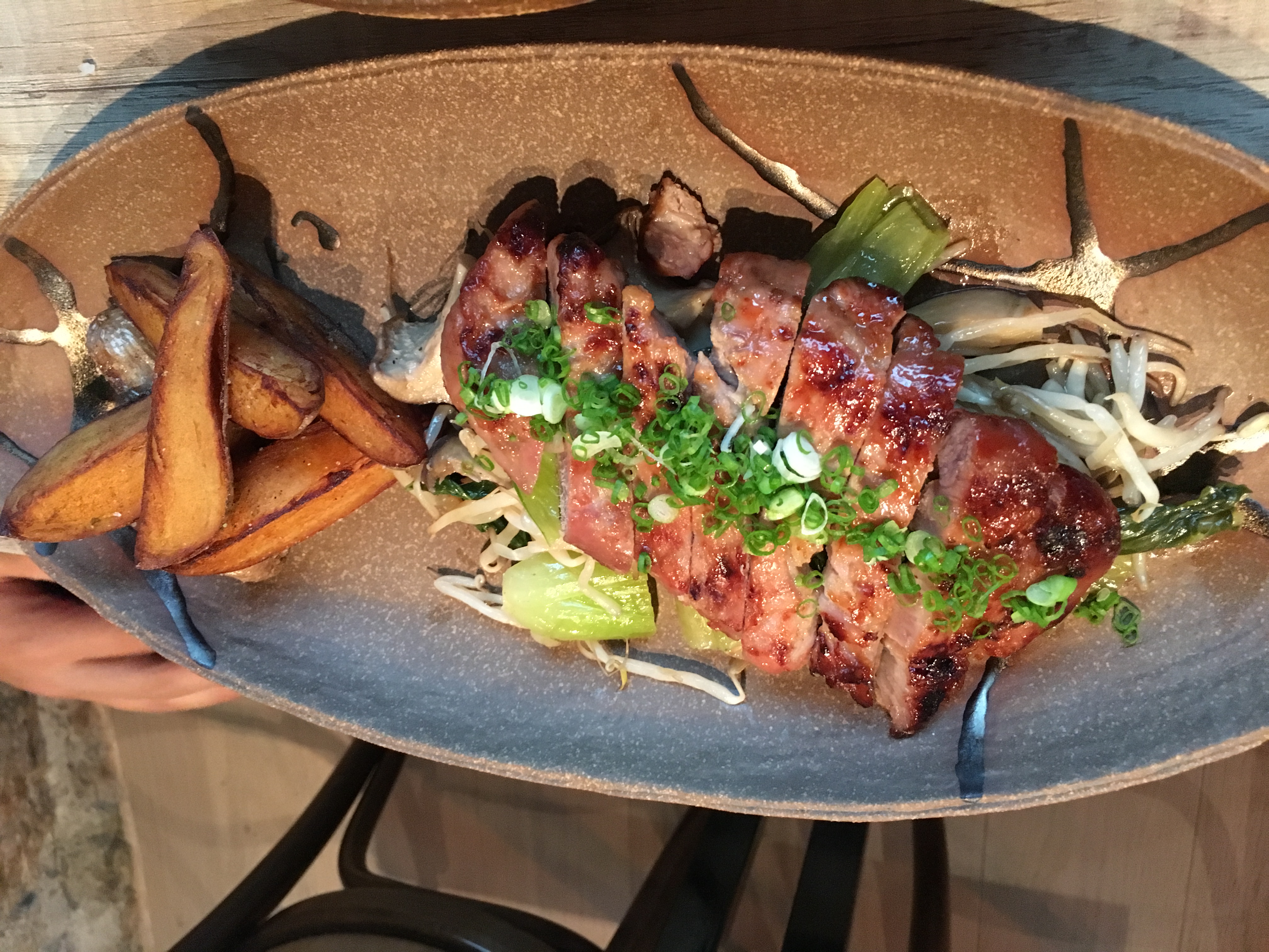 Le restaurant est moderne et la carte originale La spécialité locale est le barbecue au charbon, il servent des viandes marinées, des grillades, du poisson grillé On y trouve aussi, entrées, desserts, sushi et autres carpaccio de très bonne qualité, très fins c'est un régale Côté salle, la cuisine est ouverte sur la salle, le cadre est agréable