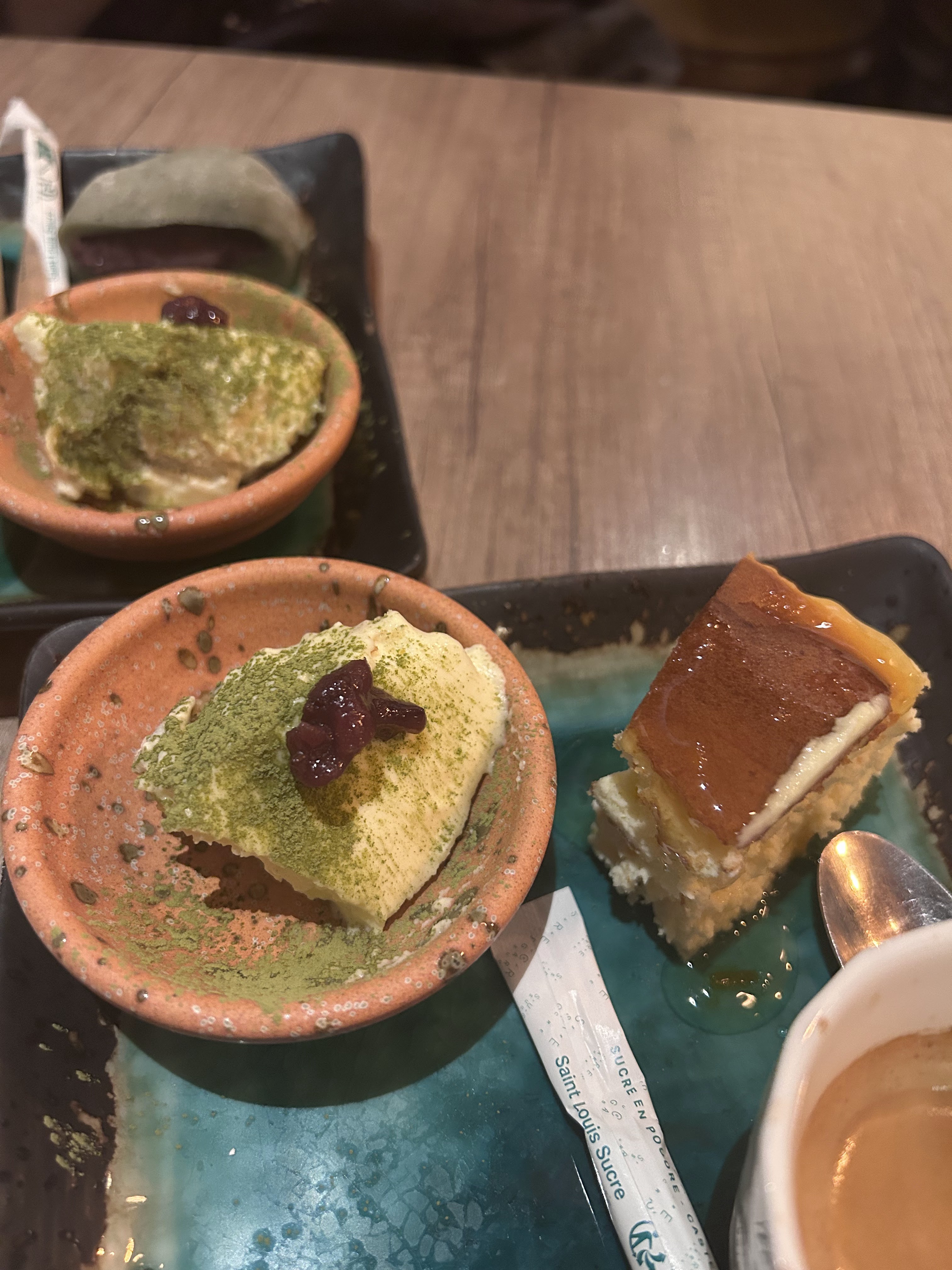 Assez déçue de la qualité de SUMiBi KAZ qui a vraiment baissée ces derniers mois - quand je compare à janvier 2022, la qualité et l’offre du poisson de leurs sashimis (qui est censé être leur plat phare) n’a rien à voir En témoigne mes photos, payer ce plat 40€ c’est maintenant bien trop haut comparé aux autres offres parisiennes. Le poisson gris/marron que vous voyez au deuxième rang est du thon, je vous laisse deviner que son goût n’était pas incroyable.. J’espère que cette baisse de qualité n’est que passagère car c’était vraiment une adresse top l’année dernière. Note positive, le tiramisu matcha n’a pas changé et reste toujours délicieux