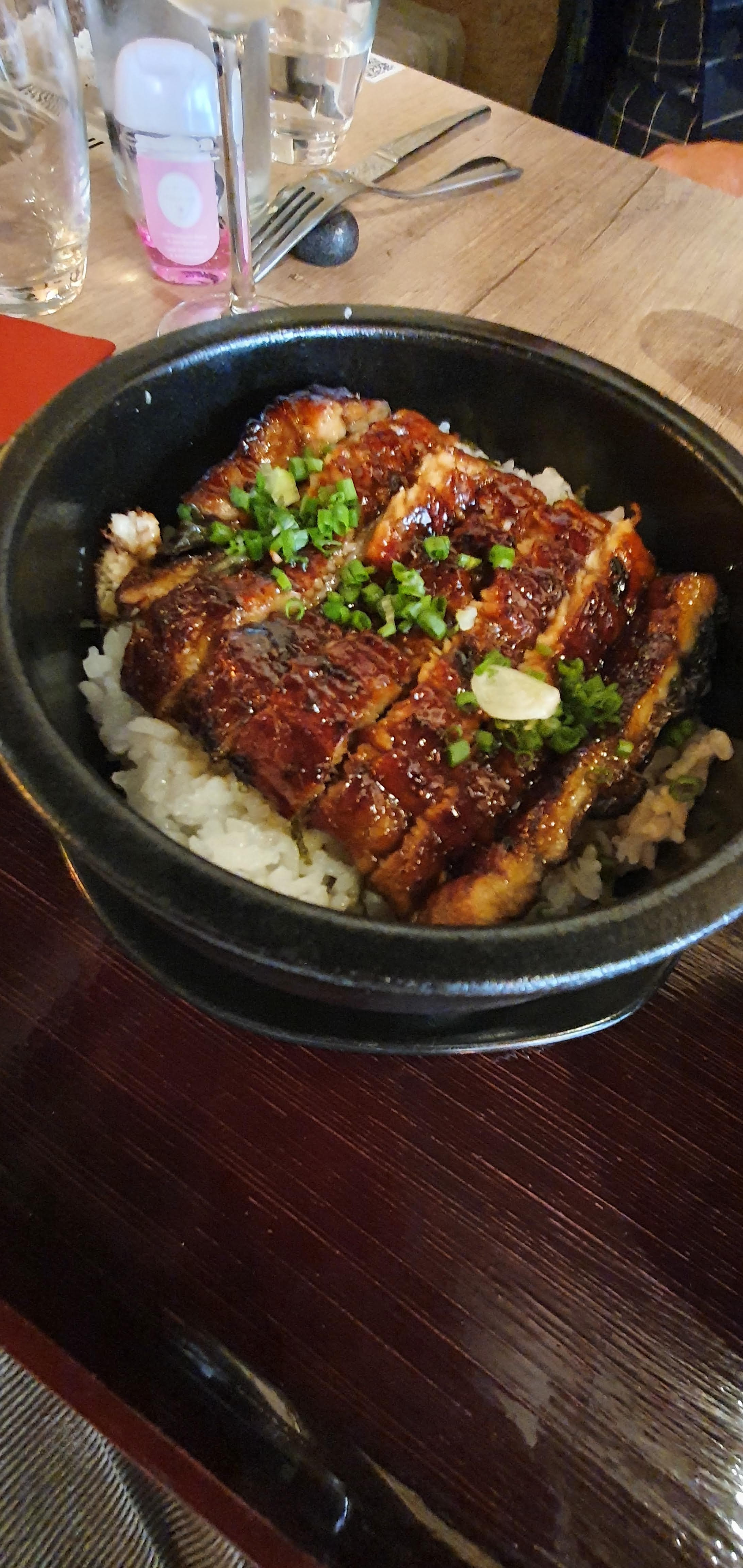 Un restaurant japonais spécialisé en Japanese grilled eel (anguille grillée japonaise) et sashimi (poisson cru), ce restaurant offre une expérience culinaire délicieuse et authentique. Le plat signature de SuMiBi Kaz est l'anguille grillée, préparée selon une recette traditionnelle japonaise qui lui donne un goût unique et succulent. L'anguille est grillée à la perfection, avec une sauce sucrée et salée qui rehausse encore plus sa saveur. Le plat est généralement servi avec du riz, des légumes et une soupe miso qui complètent parfaitement le plat principal. En plus de leur anguille grillée, SuMiBi Kaz propose également une variété de sashimis, coupés à la perfection et servis avec du riz et des légumes frais. Les sashimis sont préparés avec des poissons frais et de qualité, offrant une expérience authentique de la cuisine japonaise. Le décor est simple et élégant, avec des murs en pierre apparente et des tables en bois. L'ambiance est calme et paisible, offrant un endroit agréable pour déguster un repas japonais traditionnel. Présentation très soignée