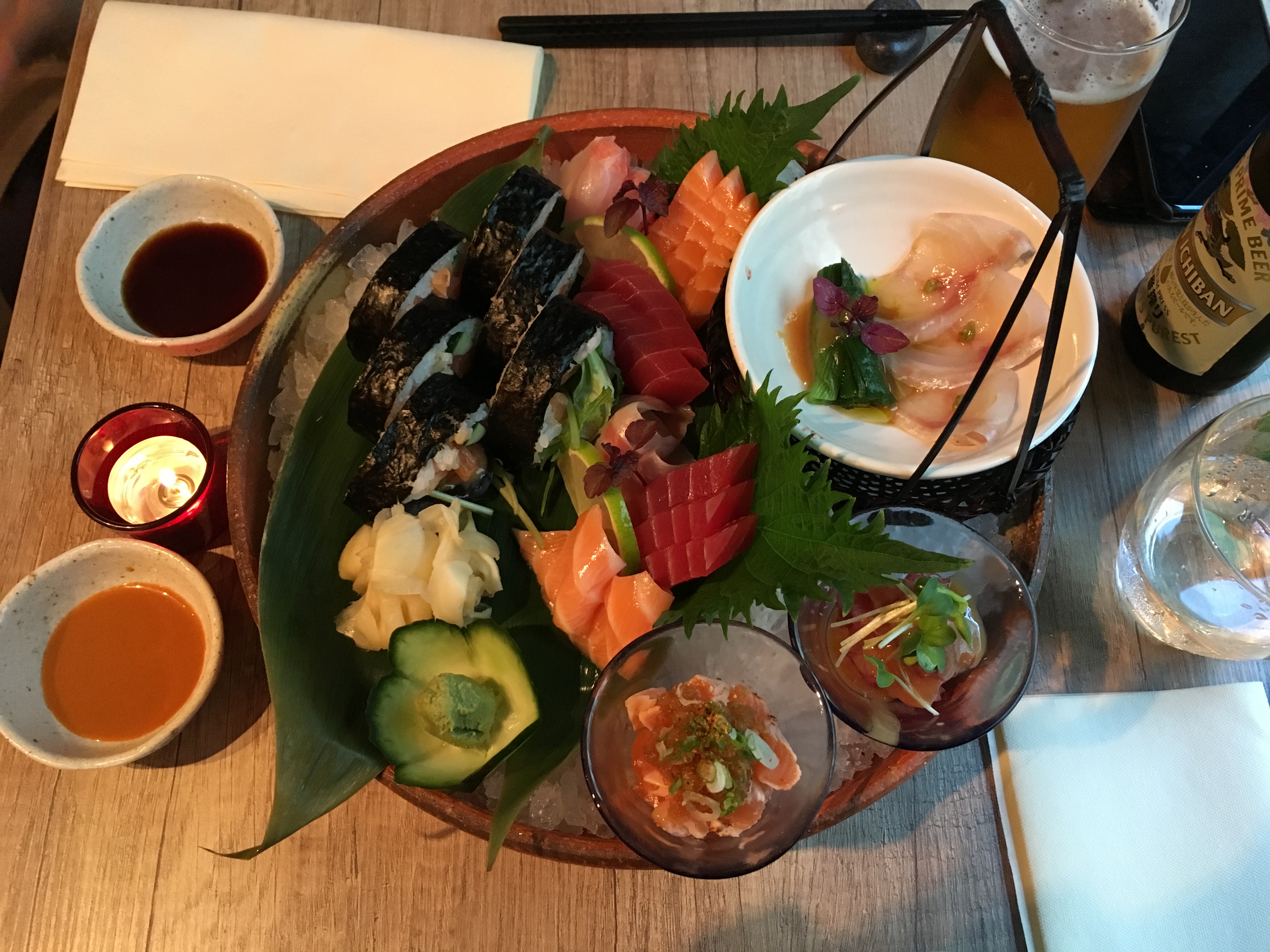 Un très bon restaurant japonais - un vrai je dirai. Pas de menu accompagné d'un chiffre et d'une lettre. Au contraire, on part dans un voyage culinaire autour de produits frais, poissons crus ou cuits au barbecue. C'est une expérience culinaire qui a aussi un prix un peu plus élevé. Mais ça vaut le coup.