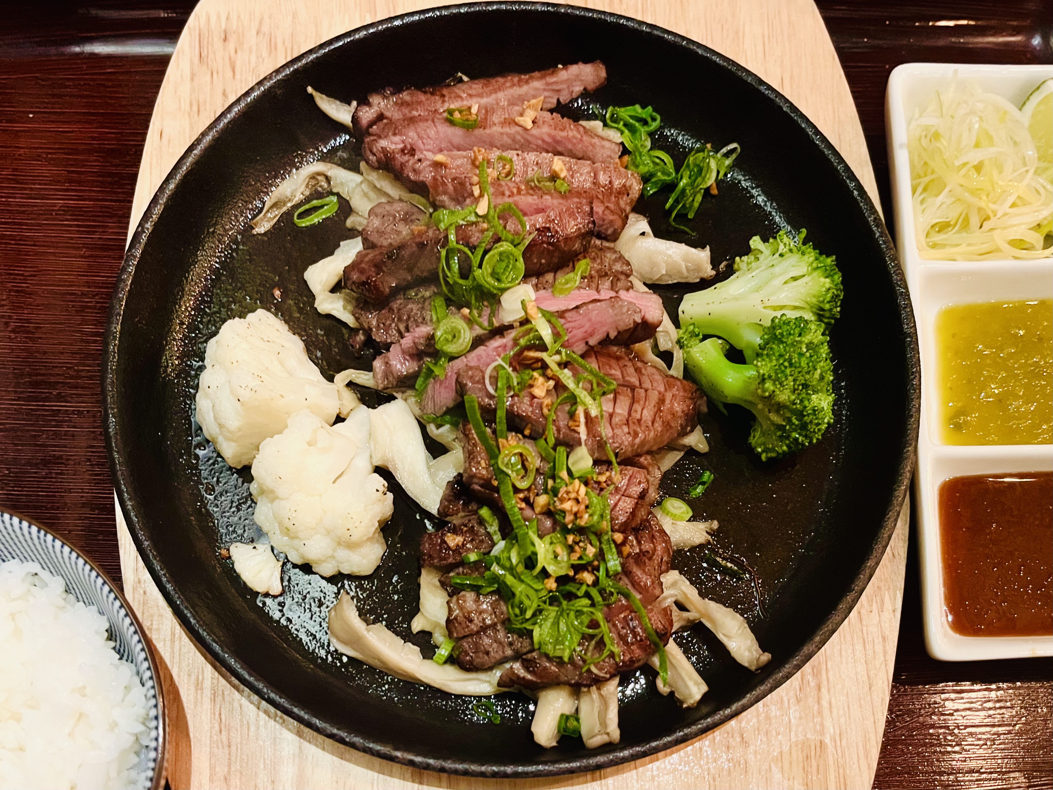 Très bon sashimis, belle présentation et belle coupe. Le bbq japonais est bien goûteux mais j'aimerais un peu moins de sauce et une entrecôte plus moelleuse. Dommage que la carte visible sur internet ne soit pas la même que celle au restaurant. On reviendra pour goûter les autres plats.