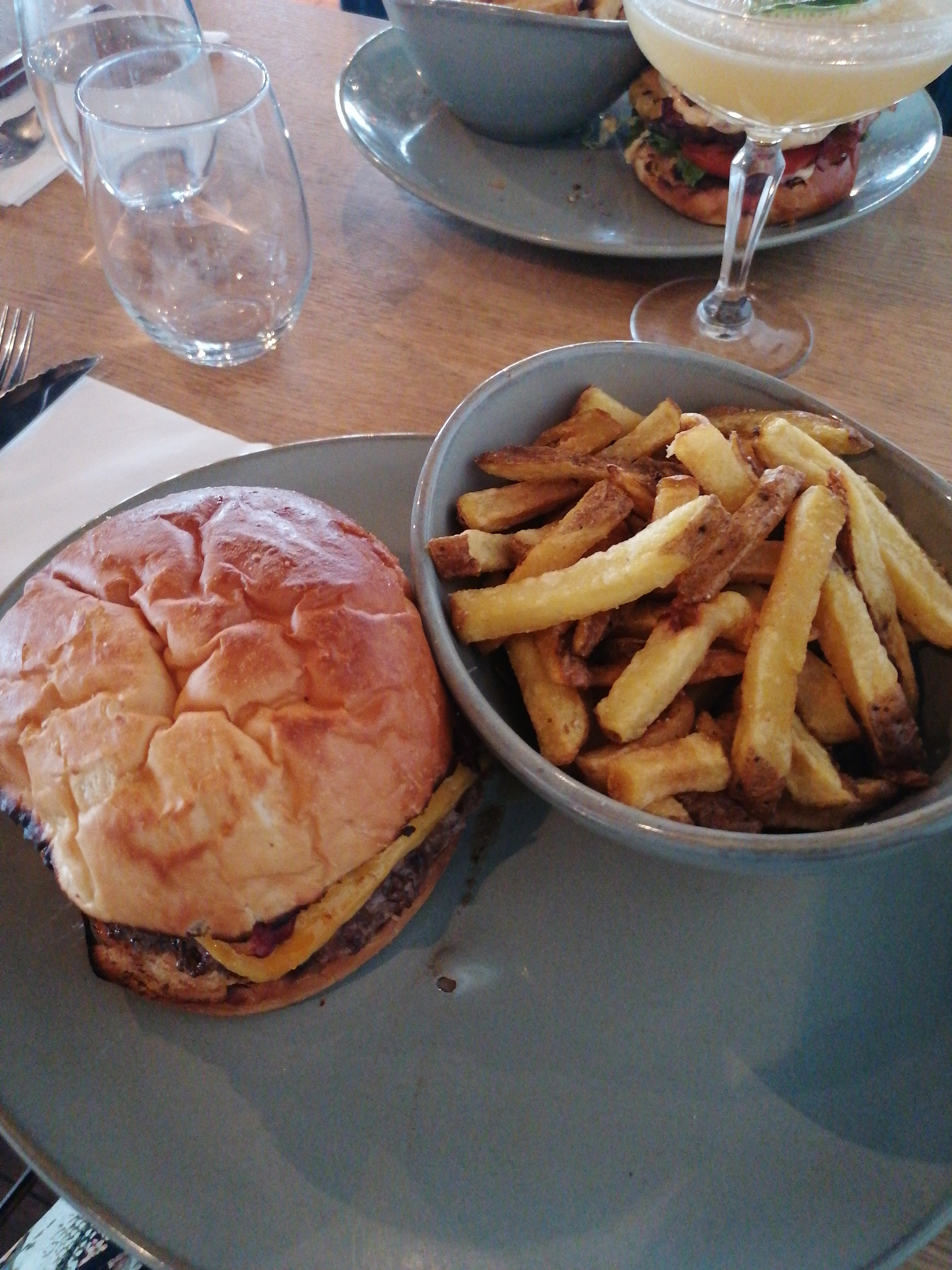 Endroit très sympathique. Une vue sympa. La cuisine à mon goût un peu grasse les légumes et burata. Les frites. Les serveurs sont gentils et l'ambiance sympathique.