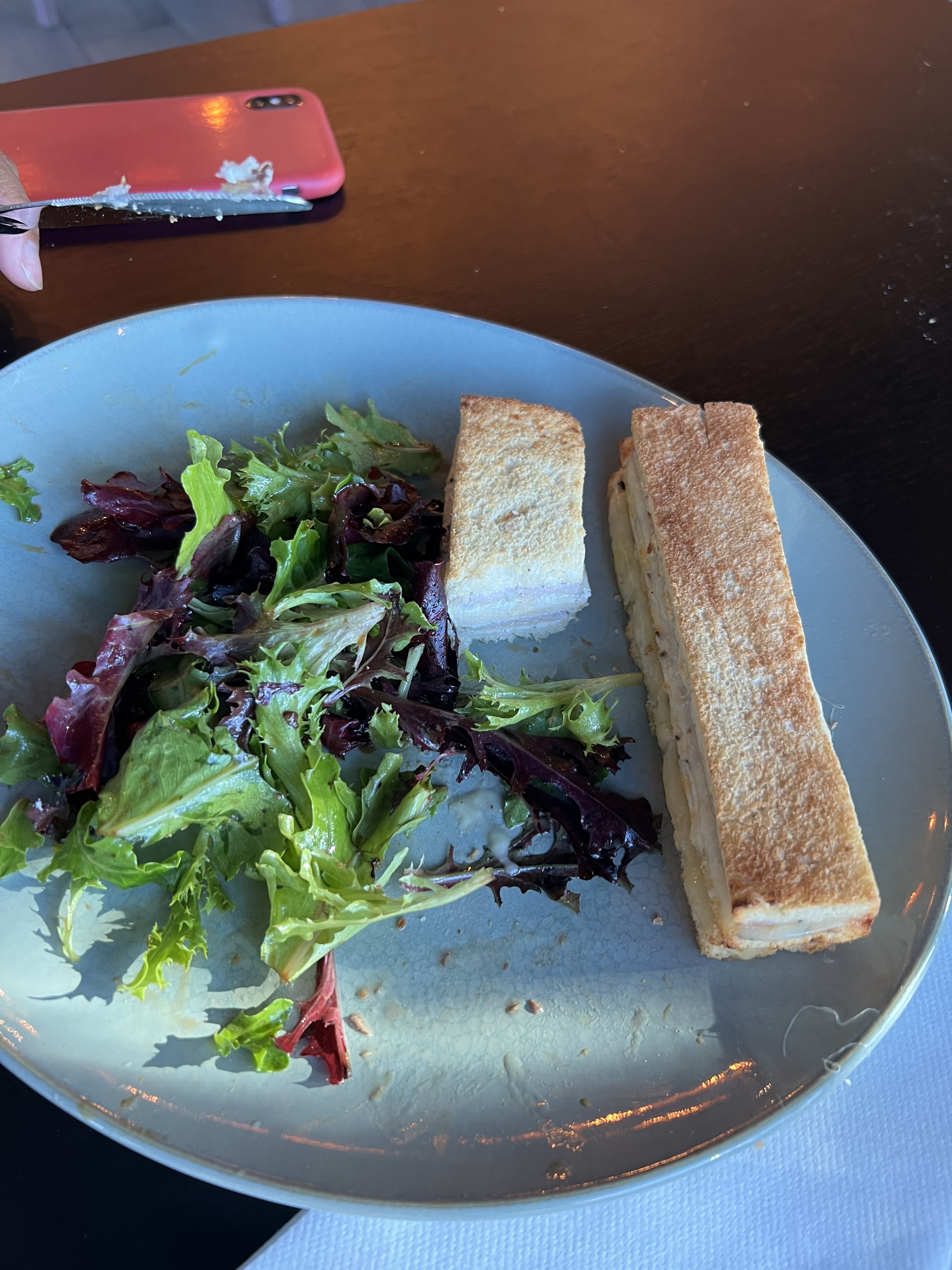 Expérience décevante. Comment un aussi beau restaurant ne puisse être à la hauteur au niveau du service et du repas?! Nous étions 5, 4 plats sur 5 ont été apportés. Nous avons dû signaler x2 qu’il manquait un plat et qui est arrivé 20min après. Nous n’avons donc pas mangé en même temps. Un geste commercial a été demandé à la serveuse (une Blondinette) qui nous a dit que ce n’était pas de la faute du resto que c’est leur appareil qui a bugué 🙄🤔 Aucune présentation pour mon plat: Pavé de saumon (photo ci-joint) et je ne vous parle même pas du goût et de la cuisson… ! Nous avons dû demander l’addition sans même qu’il nous ait été proposé de dessert. Il n’y avait pas forcément beaucoup de monde mais bref…
