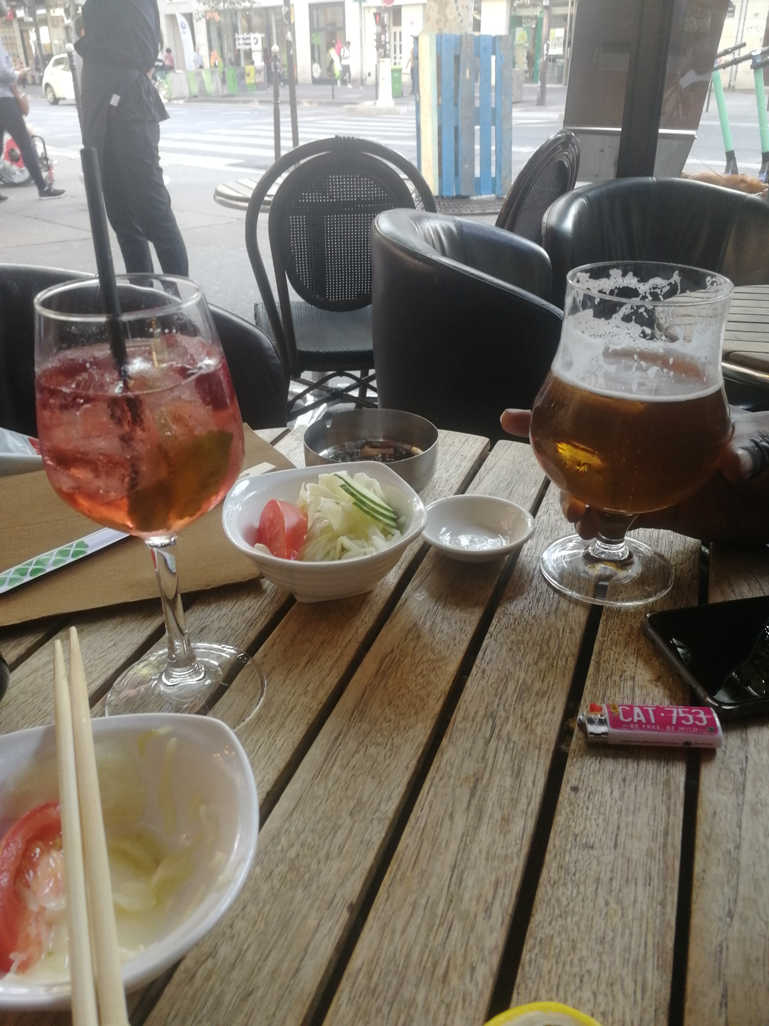 J'y suis allé par recommandation pour boire un verre, au début il n'y avait pas de place dans la terrasse fermée donc on était vraiment dehors sur le trottoir. Au bout de 15 minutes le serveur reviens nous chercher car des places ce sont libérées, vraiment super ! C'est pas le moins cher du coin mais ça reste correct