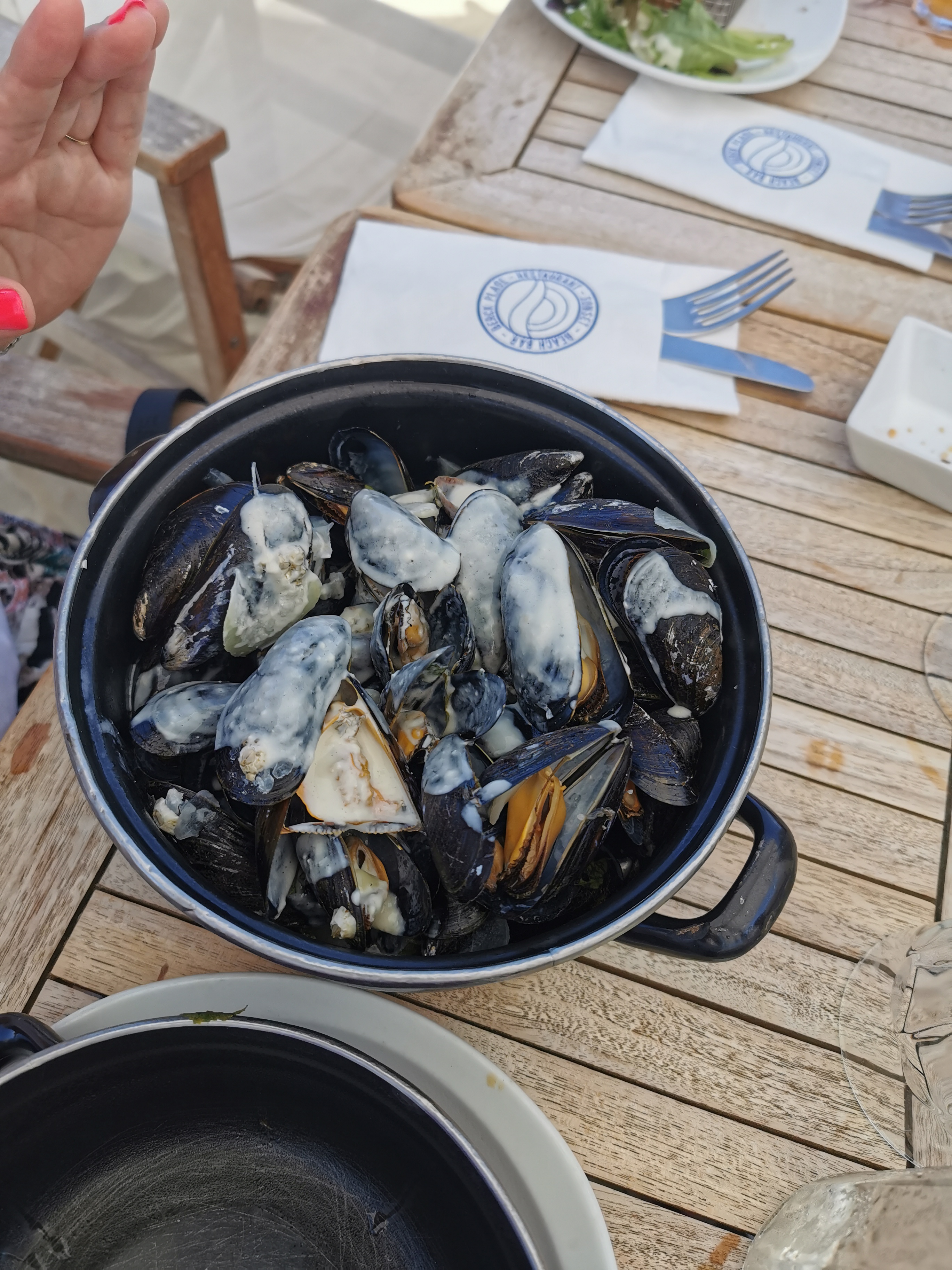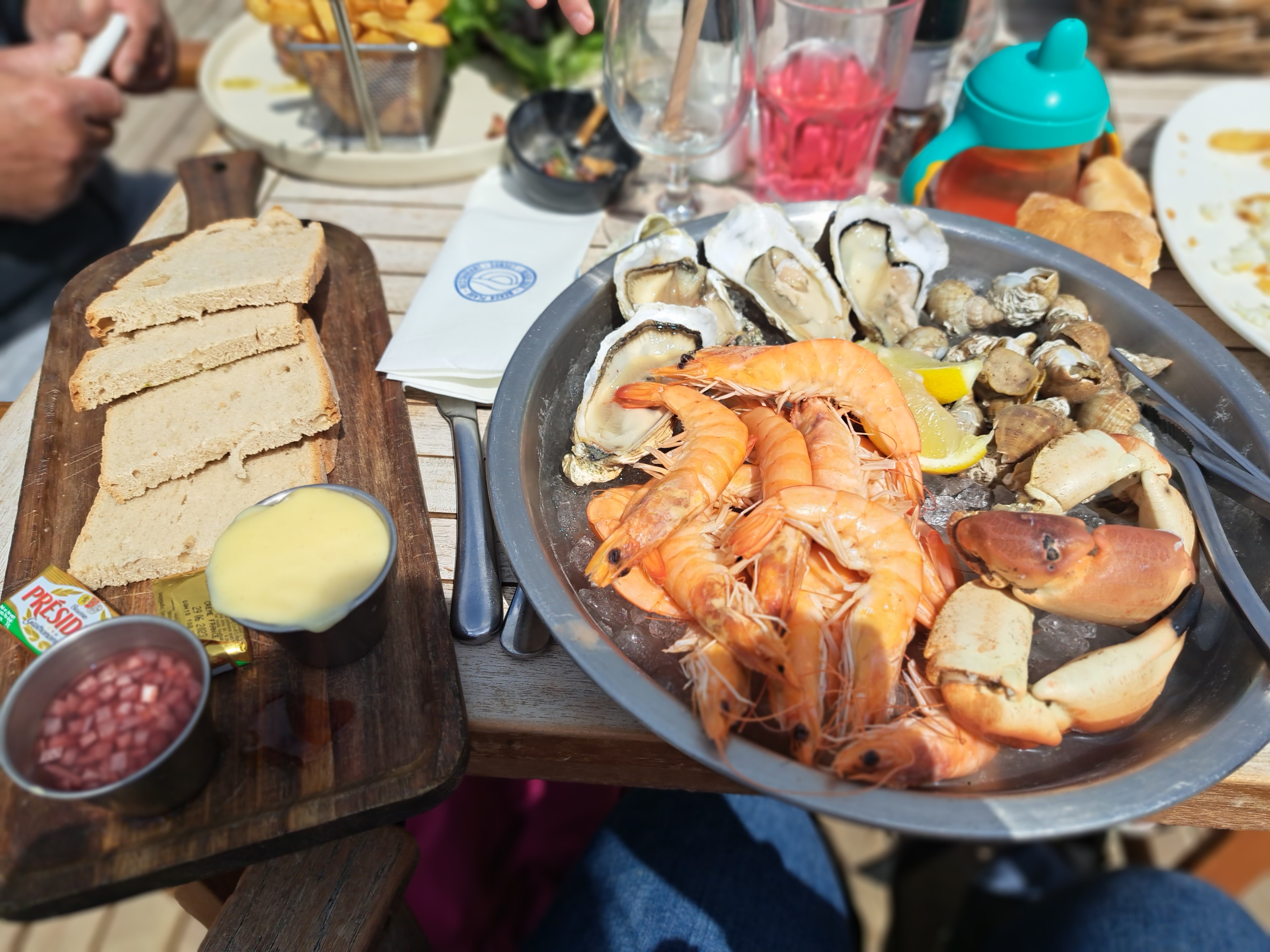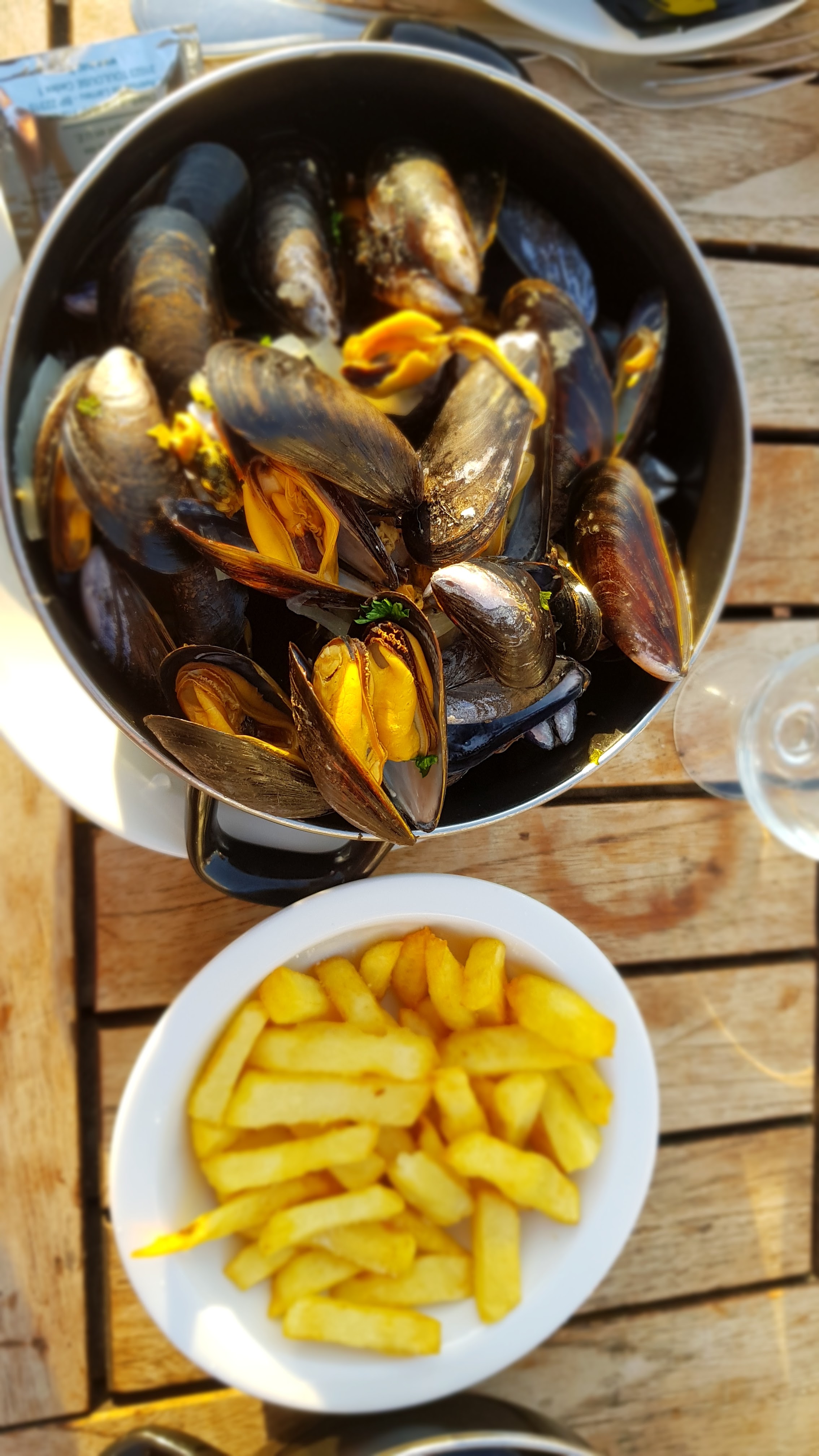 Que du bonheur ! Du beau temps... Des bulots supers frais et des moules au maroille. Attention, vous ne pouvez pas réserver, mais si vous commencez avec l'apero vers 11h30, vous aurez une table dispo pour manger ensuite😉