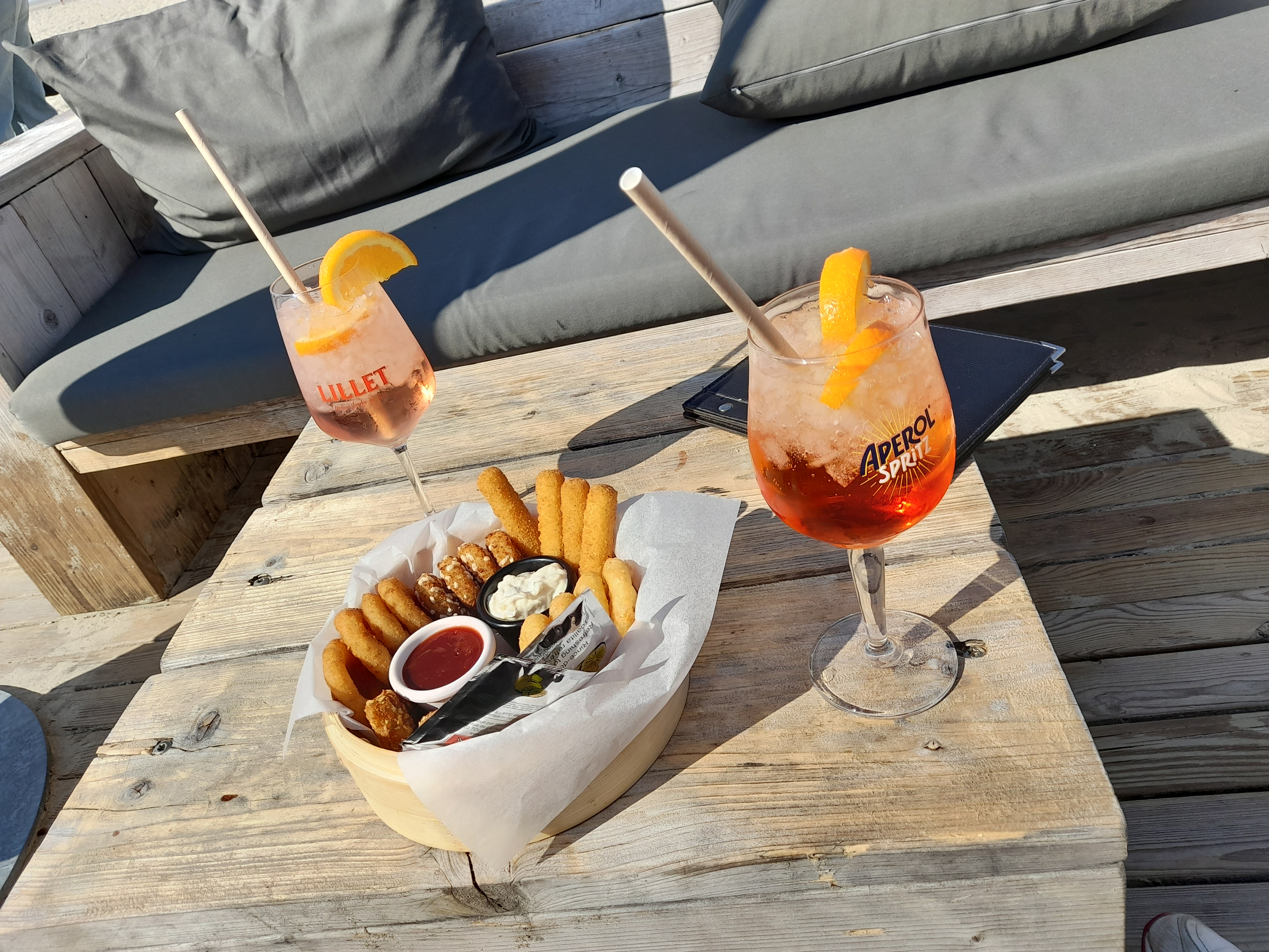 Au top ! Ce soir diner en terrasse au Sunset avec au menu apéritif au Spritz accompagné de calamars frits puis moules au maroilles et pour finir glace. Une ambiance lounge très sympa et des serveurs sympathiques et très professionnels. Il est à noter que le restaurant dispose d'une table à langer très pratique.
